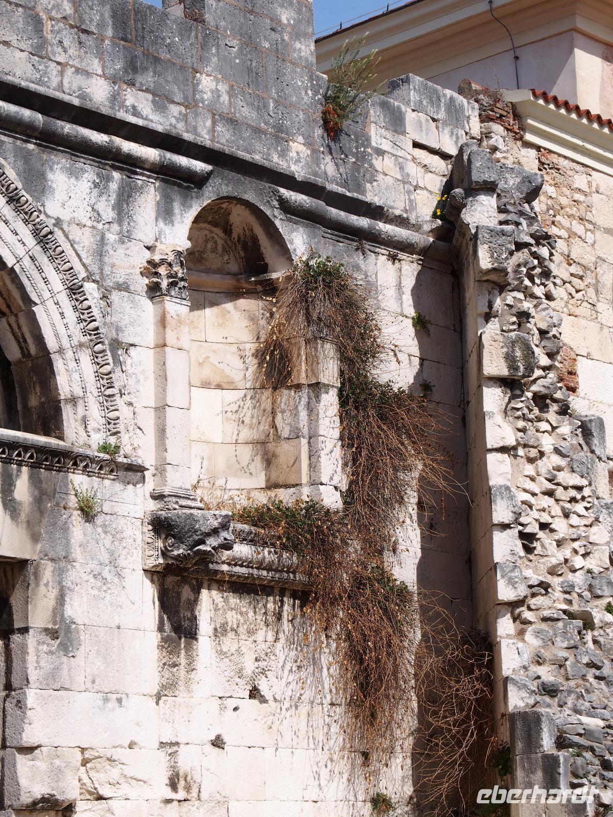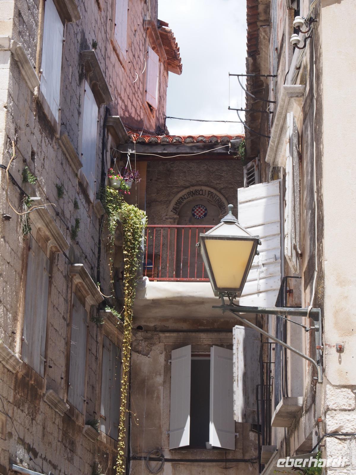 Der letzte Tag beginnt früh, denn bevor es wieder in die Heimat geht, wollen wir uns noch die Hauptstadt Dalmatiens ansehen. Früh werden wir von Fahrer Robert abgeholt, der uns über die Küstenstraße, vorbei am ehemaligen Piratennest Omiš, nach Split bringt. Das Wetter ist auch heute Morgen schon wieder herrlich und wir genießen die Aussicht über die Steilklippen. Am Sonntagmorgen ist die Strecke schnell zurückgelegt und wenig später treffen wir unsere Stadtführerin Vesna wieder, die wir schon aus Trogir kennen. Sie erläutert uns zunächst anhand einer großen Abbildung, wie der berühmte Palast des Diokletians im dritten Jahrhundert einmal ausgesehen hat. Der Palastkomplex bildet heute die Altstadt Splits und ist Teil des UNESCO Weltkulturerbes. Zunächst gehen wir eine Treppe hinunter und sehen uns das Fundament der Ensembles an, das heute noch zu großen Teilen im Original erhalten ist. Weiter geht es zum Diolektiansmausoleum, das heute als Kirche des Heiligen Dominus die älteste Kirche Kroatiens ist. Wir schlendern weiter durch die engen Gassen, zunächst zum sogenannten Goldenen Tor, das allerdings nicht wirklich goldfarben ist, und schließlich zum Narodni Trg-Platz, mit der Loggia, dem alten Rathaus und dem frühromanischen Glockenturm der Marienkirche. Vesna entlässt uns zurück auf der Riva und so bleibt noch eine knappe Stunde Zeit für eigene Erkundungen, bevor wir zum Flughafen aufbrechen.