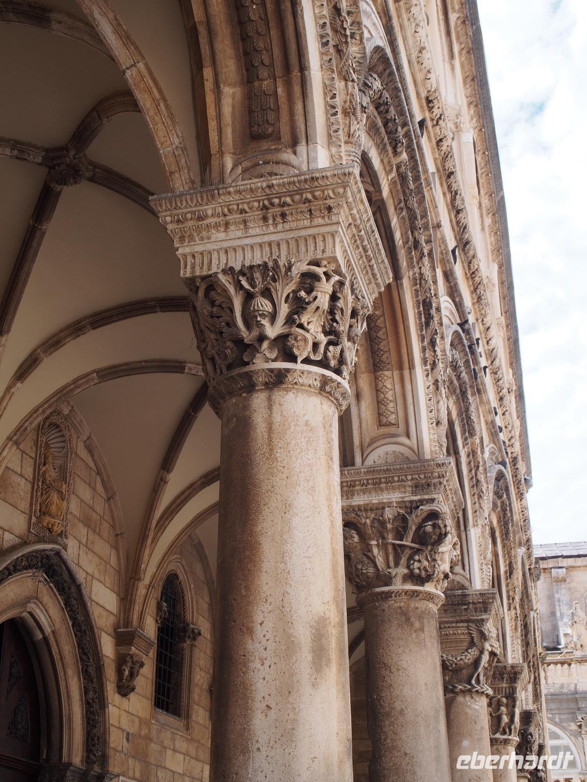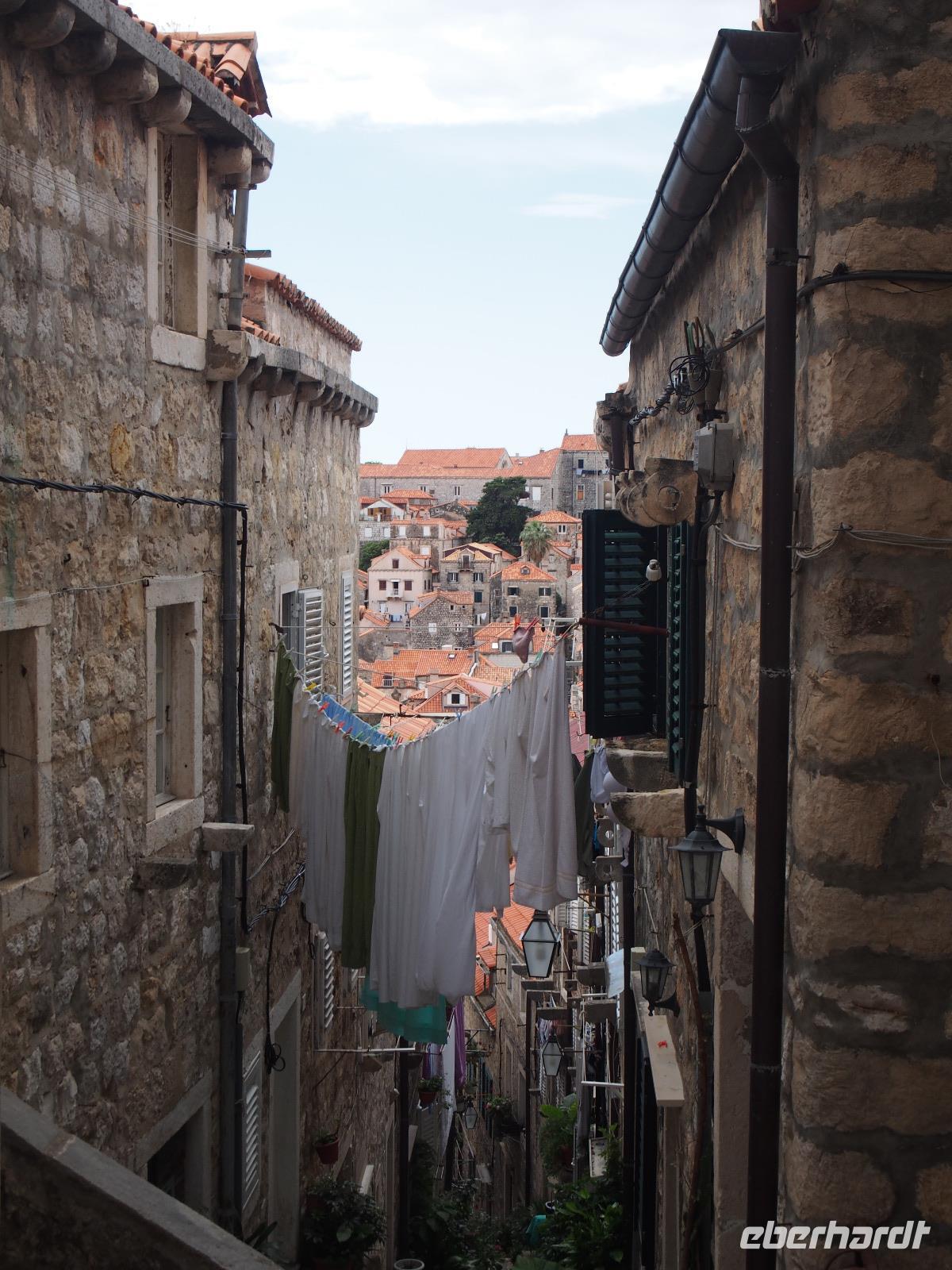 Bevor wir die Altstadt Dubrovniks erkunden, steht heute erst einmal die sogenannte kleine Schwester auf dem Programm: Korcula auf der gleichnamigen Insel. An der Küste entlang geht es zurück bis zur Halbinsel mit dem unaussprechlichen Namen Pelješac, die heute vor allem für ihre Weinanbaugebiete bekannt ist. Zunächst machen wir Halt im Örtchen Ston, das zu Zeiten der Republik Ragusa als Kriegshafen und aufgrund seiner Salinen eine große Bedeutung hatte. Um die Salzfelder vor den Osmanen zu schützen, ließ man im 16. Jahrhundert eine Wehranlage mit einer 5,5 Kilometer langen Mauer errichten - heute noch die zweitlängste Mauer der Welt, nach der Großen Mauer in China. Unser Weg führt uns weiter über die 60 Kilometer lange Halbinsel bis zum Ort Orebic, von wo aus wir mit der Fähre nach Korcula übersetzen. Schon von weitem bereitet das Städtchen mit seiner Altstadt einen postkartenreifen Anblick. Am Hafen empfängt uns Stadtführerin Neda und führt uns gleich durch das Stadttor, hinein in die engen Gassen. Mit großartigem Humor bringt sie uns die Eigenheiten ihrer Heimatstadt näher und nimmt uns zum krönenden Abschluss mit auf einen - im Gegensatz zu Dubrovnik - kostenlosen Rundgang über die Stadtmauer. Diese wurde nämlich Ende des 19. Jahrhunderts, aufgrund von Baufälligkeit und mangelnder Bedrohung von außen, auf die Hälfte abgebrochen und ist somit heute eine wunderbare Promenade mit zahlreichen Cafés und Restaurants. Nach der Mittagspause fahren wir am Nachmittag zurück nach Orebic und von dort aus zu einem Aussichtspunkt weit oben am Berg, von wo aus wir noch einmal einen schönen Blick auf Korcula, und gleichzeitig auch die Gelegenheit den lokalen Wein zu probieren und kaufen zu können, haben. Dann geht es zurück über die Halbinsel und weiter auf der Küstenstraße nach Dubrovnik. Nun sind alle schon mehr als gespannt auf den nächsten Morgen und darauf „Die Perle der Adria" kennenzulernen.
