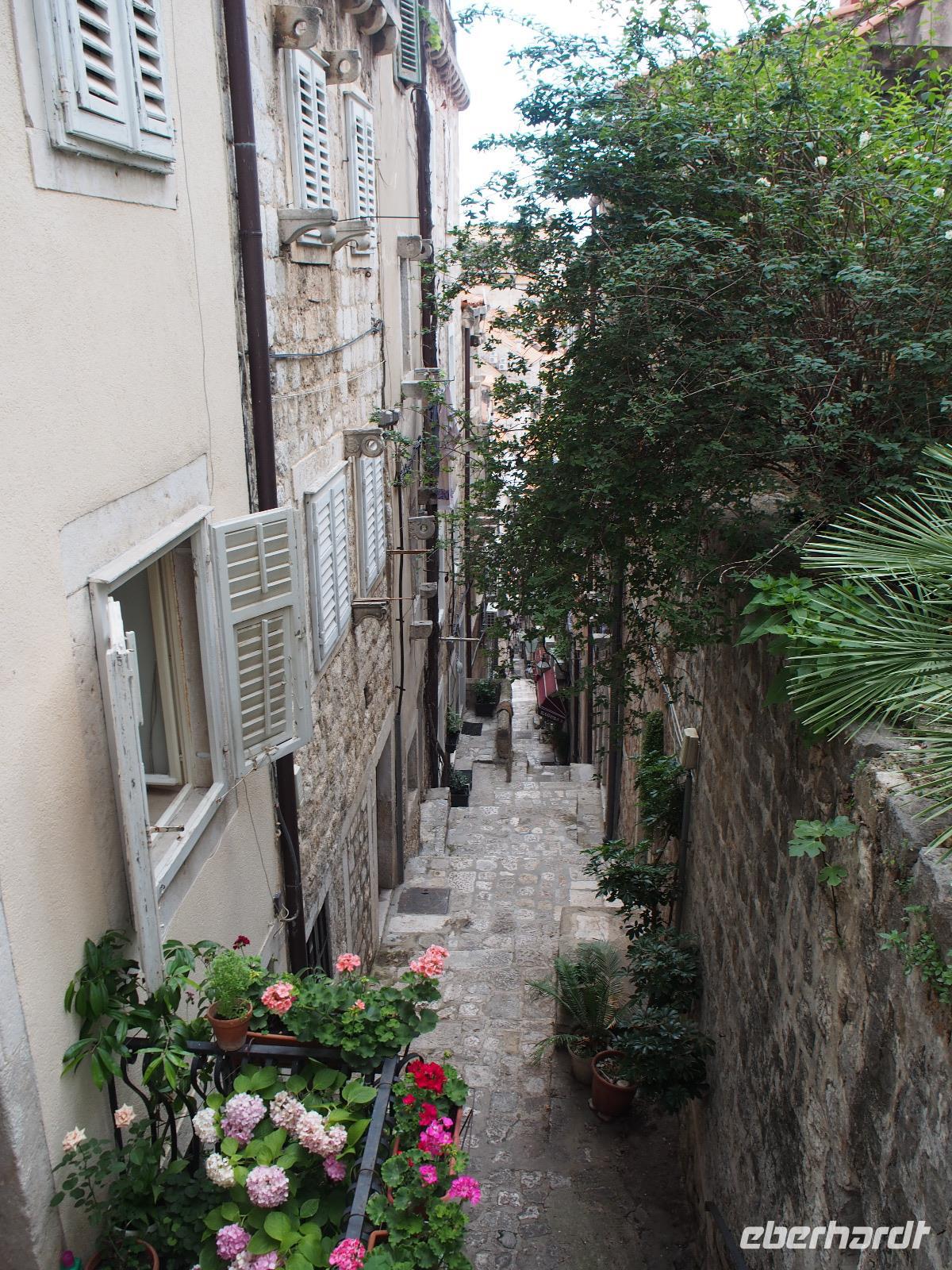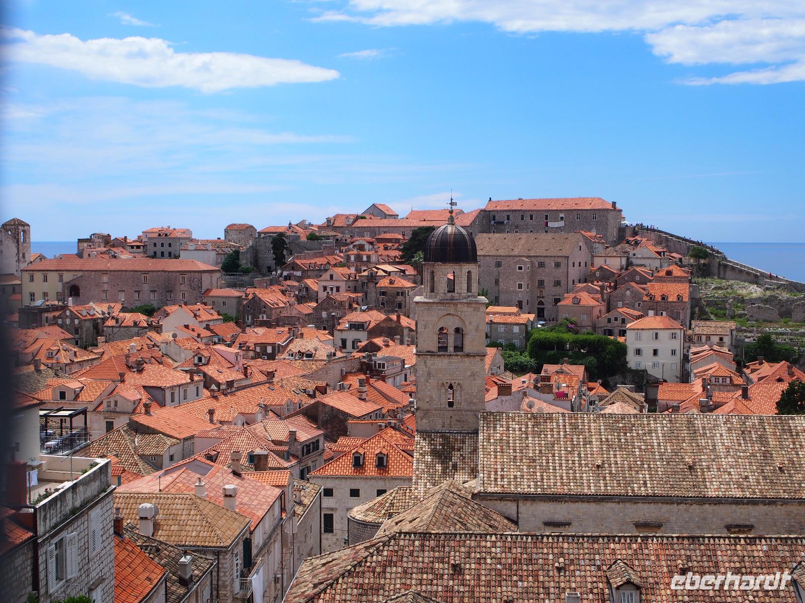 Unser Weg ist am heutigen Morgen nicht weit, mit unserem Bus fährt uns Boris vom Hotel zum Pile-Tor, eines der beiden Stadttore der Altstadt Dubrovniks. Dort treffen wir auf Stadtführerin Kristina, die uns hinein in das alte Ragusa führt. Leider sind wir nicht allein - am heutigen Tag machen vier große Kreuzfahrtschiffe am Hafen fest, das bedeutet, dass sich über 7000 Menschen innerhalb der Stadtmauern befinden. Trotz des mehr oder weniger großen Andrangs gibt sich Kristina große Mühe, dass sie bei allen Gehör findet und dass keiner auf dem Weg durch die engen Gassen verloren geht. Wir lernen einiges über Dubrovnik und nebenbei erzählt uns unsere Stadtführerin, die ihre Kindheit und Jugend in Deutschland verbracht hat, vieles über Land und Leute, sowie den letzten Krieg, dessen Auswirkungen und die Ansichten der Kroaten heute. Nach der Stadtführung bietet sich nun die Gelegenheit eigene Erkundungen zu machen: die Wanderung über die Stadtmauer ist natürlich ein Muss, aber auch die Seilbahn hinauf auf den Hausberg Srd verspricht einen wunderbaren Ausblick an einem so schönen Tag.