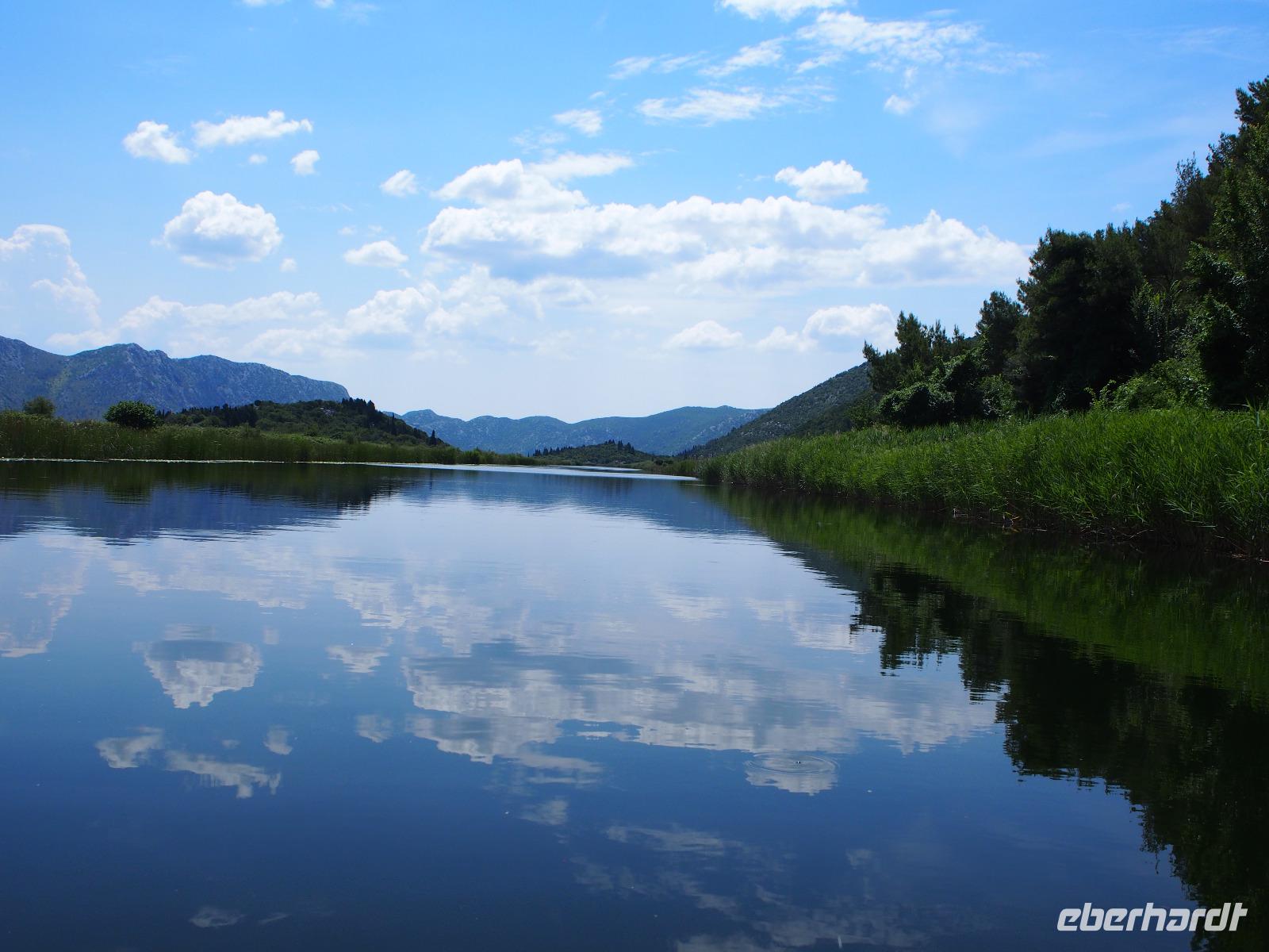Der nächste Morgen begrüßt uns wieder mit strahlendem Sonnenschein, sodass wir nun zumindest das Frühstück draußen zu uns nehmen können. Später geht es durch das Gebirge wieder zurück Richtung Kroatien. An der Grenze müssen wir leider wieder ein wenig warten, doch dafür sollen wir noch entschädigt werden. Von Ploce, der alten Hauptstadt des Piratenvolks der Neretvaner, geht es weiter durch das Flussdelta, bis Boris in eine Parkbucht neben der Straße einbiegt, wo ein traditionell gekleideter Herr mit Akkordeon steht und scheinbar nur auf uns gewartet hat. Begleitet von kroatischer Musik werden wir zu unserem Boot geleitet. Es folgt eine Fahrt durch die Kanäle des Flussdeltas, deren Ufer dicht bewachsen von blühenden Seerosen sind. Wir machen schließlich am Restaurant Neretva House fest, wo wir herzlich begrüßt werden und uns ein zünftiges Mittagessen serviert wird. Auch hier darf die Musik nicht fehlen und es herrscht beste Laune.