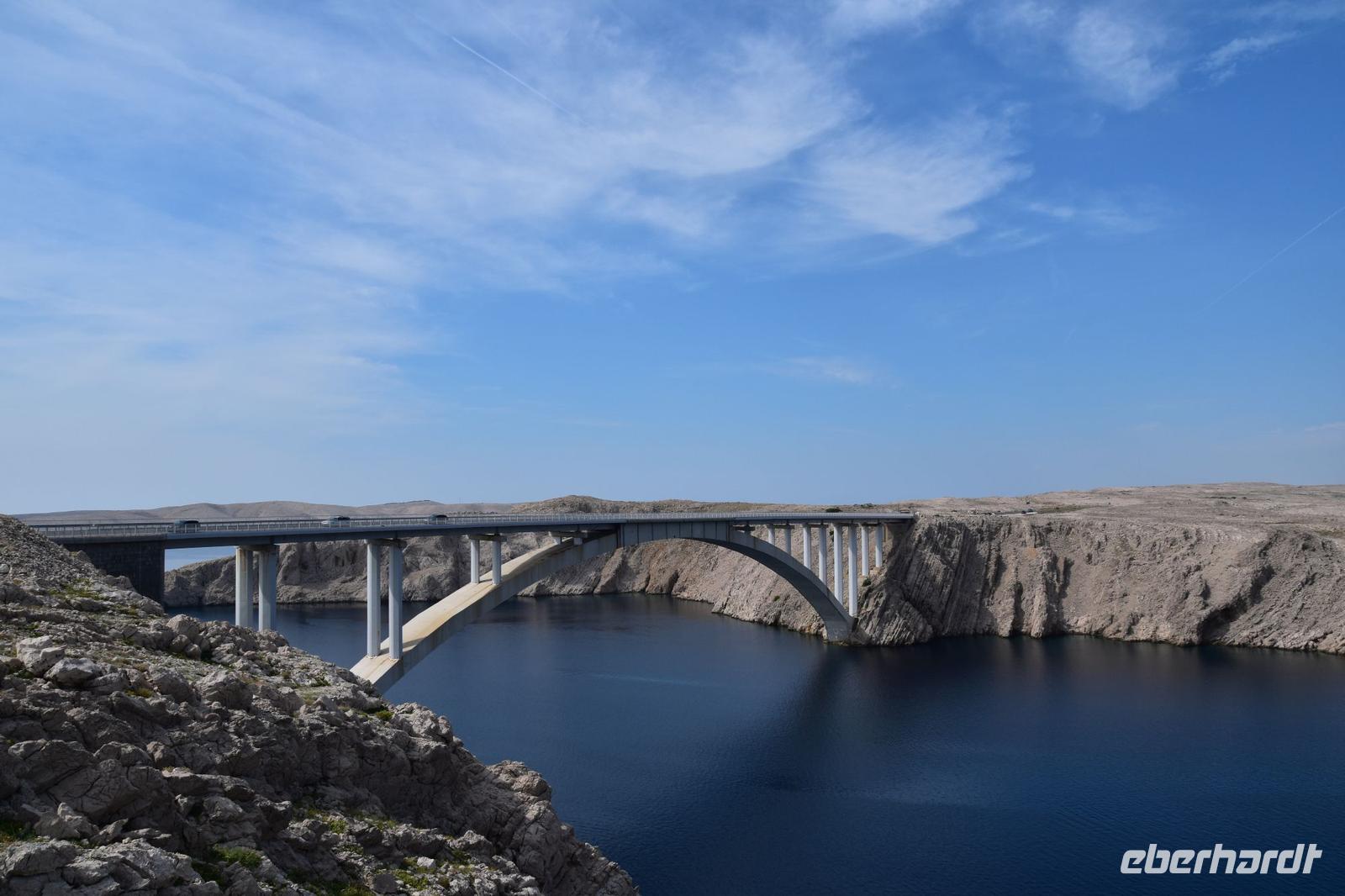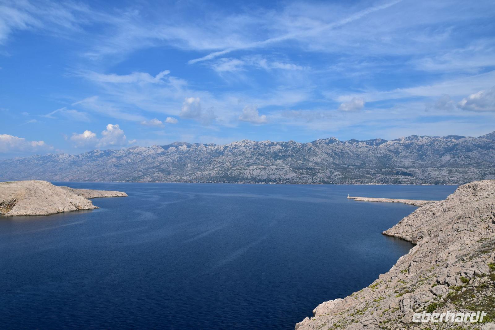 Anschließend ist Freizeit für weitere Erkundungen, für ein leckeres Eis oder einen kleinen Mittagssnack, bevor wir zur Insel Pag weiterfahren. Eine schöne Fahrt, bei guter Sicht zum Velebit-Gebirge, wo ein paar dicke Wolken auf dem Gebirgskamm hängen. Beim Fotostopp an der Brücke zur Insel, bietet sich ein besonders schöner Blick auf das Insel- und Gebirgspanorama