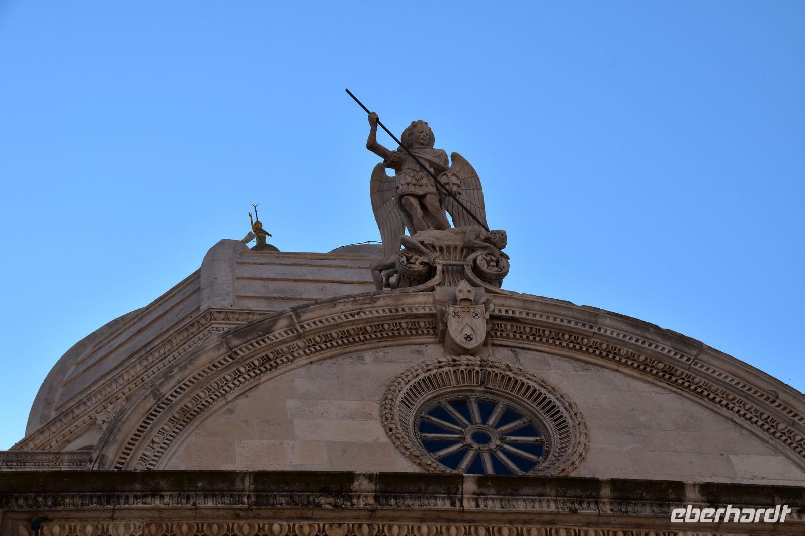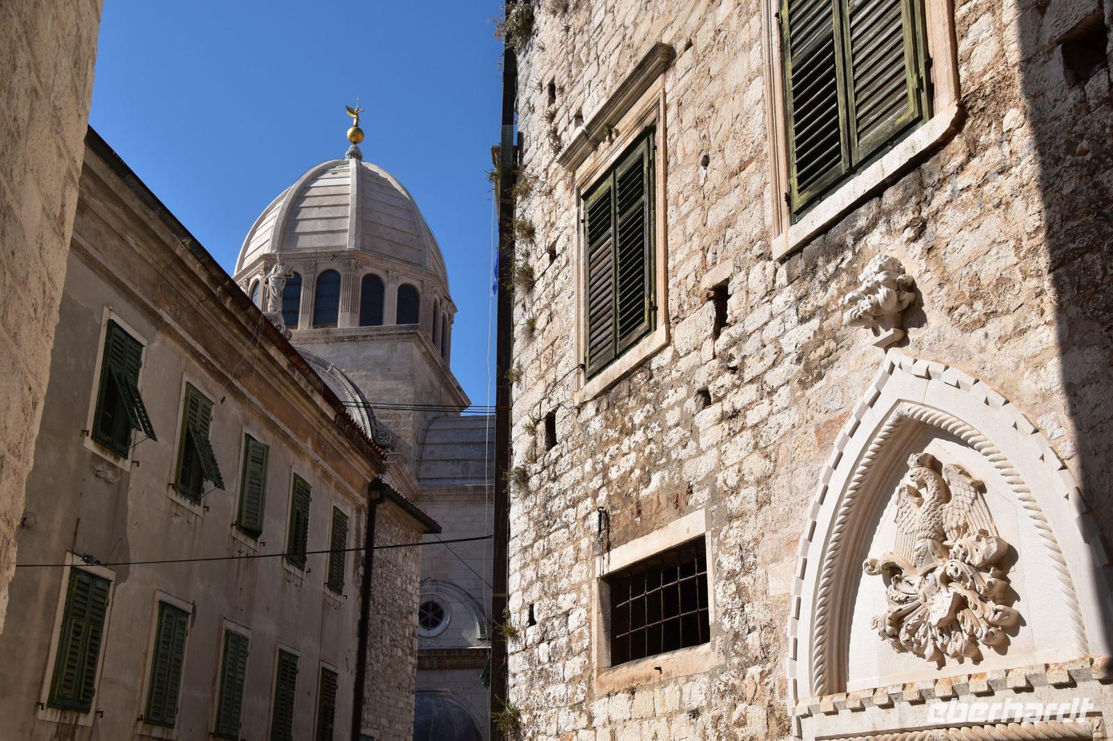 Am Busbahnhof erwartet uns Marina, unsere Stadtführerin, mit der wir eine lustige und interessante Tour durch Šibenik mit seiner phantastischen Kathedrale des dalmatinischen Bildhauers und Baumeisters Jirj Dalmatinac unternehmen. Ein Höhepunkt der Sehenswürdigkeiten dieser Reise, denn die Stadt hat mit ihrer Substanz an historischen Bauwerken und deren Besonderheiten, wie zum Beispiel den Ecksäulen und den Familienwappen darüber, echt viel zu bieten und ist touristisch noch nicht so überlaufen.