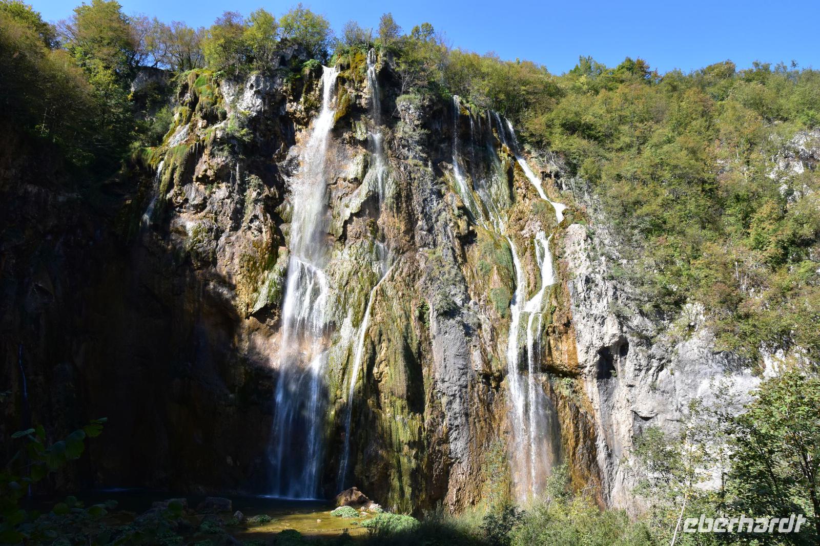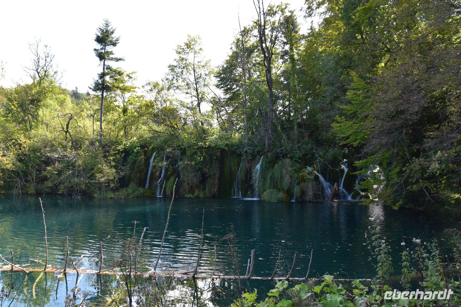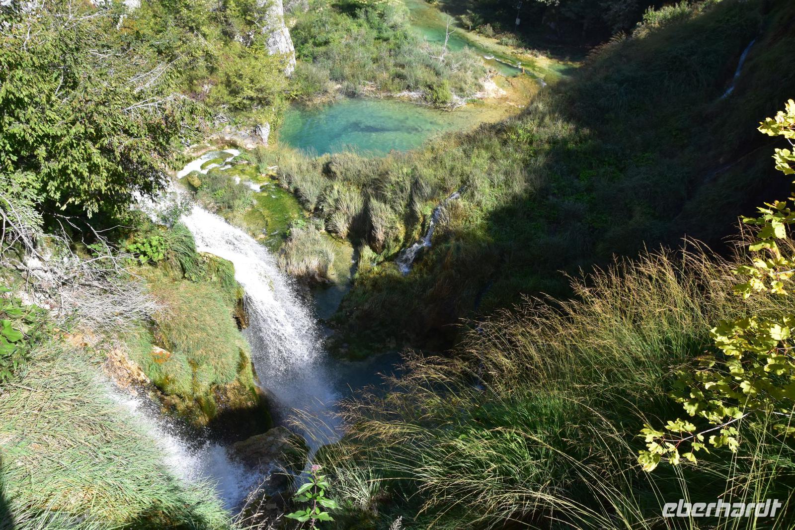 Wir gehen zuerst zur oberen Aussicht über die tiefe Schlucht dem „Silbersee" und dem 76 m hohen Wasserfall des Plitvicbaches. Dann steigen wir ins Tal ab, gehen über den ersten Travertindamm hinüber zu den großen Wasserfällen, bevor wir an den Seen entlang durch die Schlucht hinauf bis zum Großen See gelangen. Hier können wir uns etwas ausruhen und uns im Restaurant stärken. Dem folgt die lange Überfahrt über den großen See zum oberen Bereich des Nationalparks, den wir nun mit seinen idyllischen Seen und malerisch imposanten Wasserfällen besichtigen.
