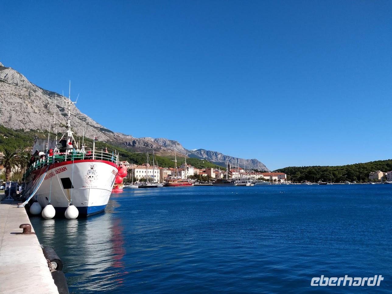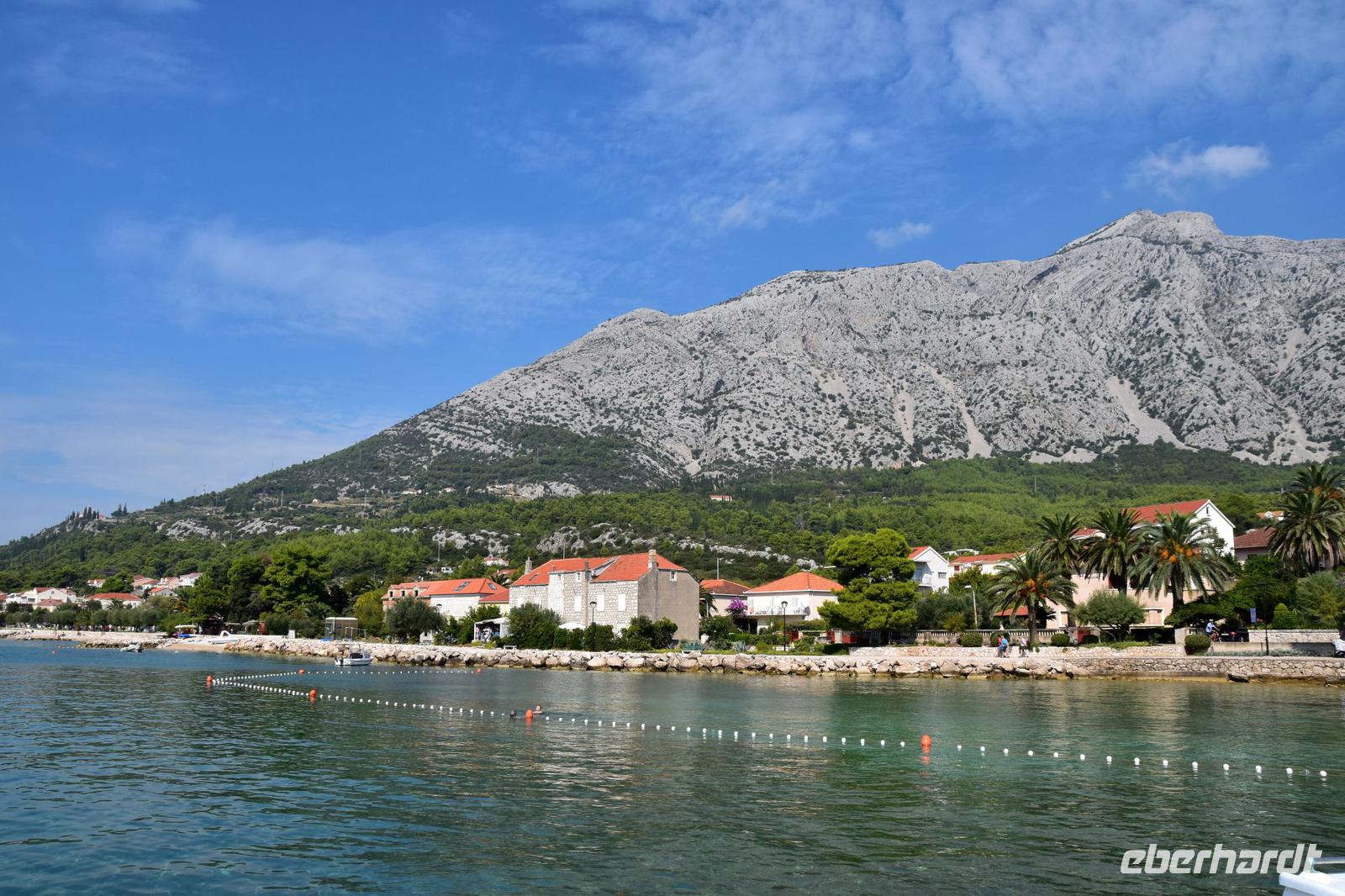 Mit Abflauen des Sturmes stehen uns nun wunderschöne, erholsame Tage zur individuellen Nutzung zur Verfügung. Es herrscht wieder zunehmend gutes Badewetter und die Luft ist klar und bietet eine herrliche Aussicht auf das umgebende Biokovogebirge und die Adria mit den Inseln.