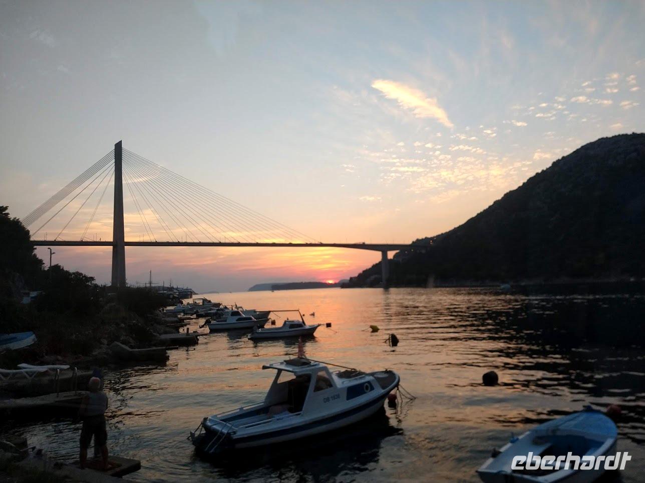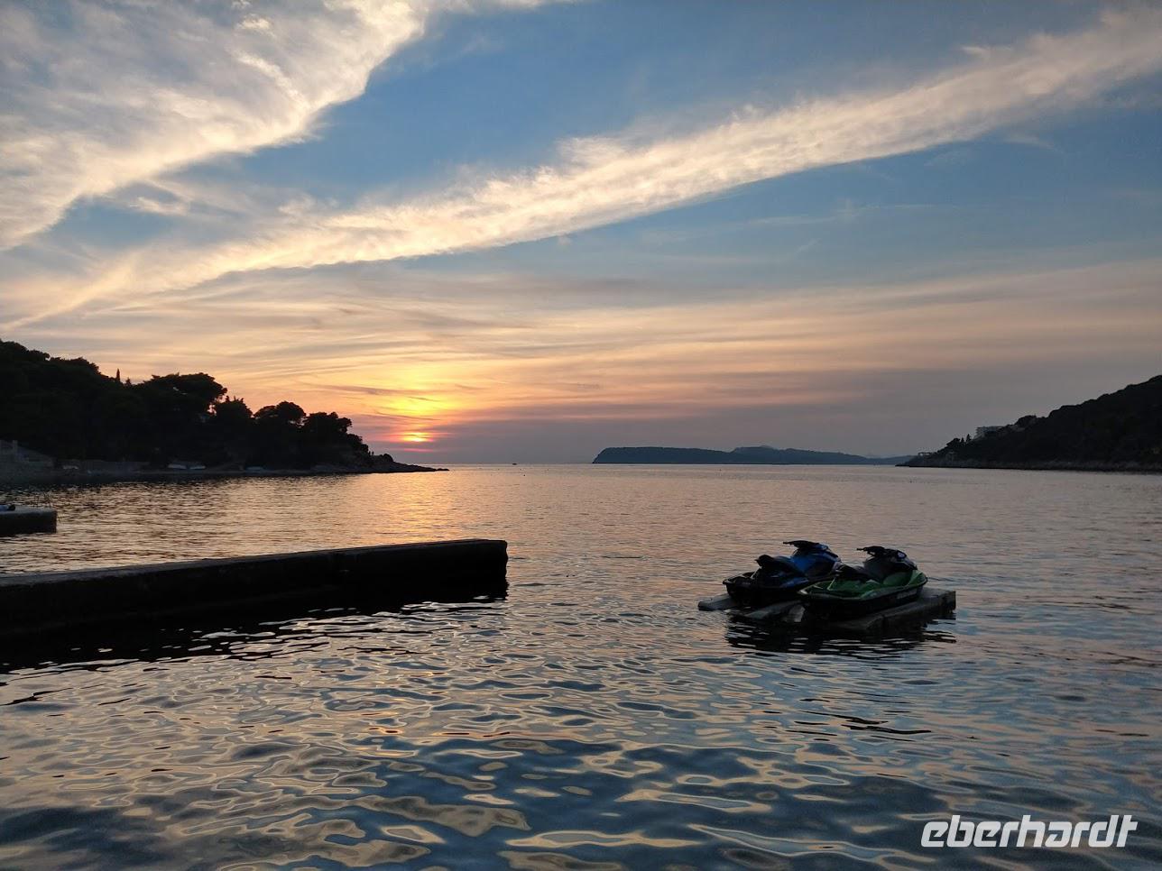 Boris holt uns in Orebic wieder ab und bringt uns hinauf in den Weinort Potomje, wo wir direkt am Weingut „Matusco" halten. Bei einer Weinprobe wird uns hier die Tradition des Weinbaus der Familie Violic-Matusko erklärt und wir erfahren auch die Besonderheiten des Weinbaus auf der Halbinsel Pelješac. Ein wunderschönes und genussvolles Erlebnis, bei dem wir auch den berühmten Dingac verkosten. So manche gute Flasche Wein reist an diesem Abend mit uns zurück zum Hotel und dem traumhaft schönen Sonnenuntergang an dieser Küste.