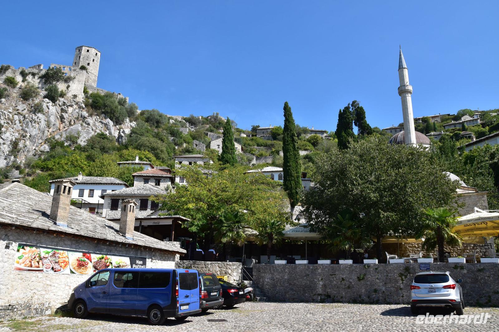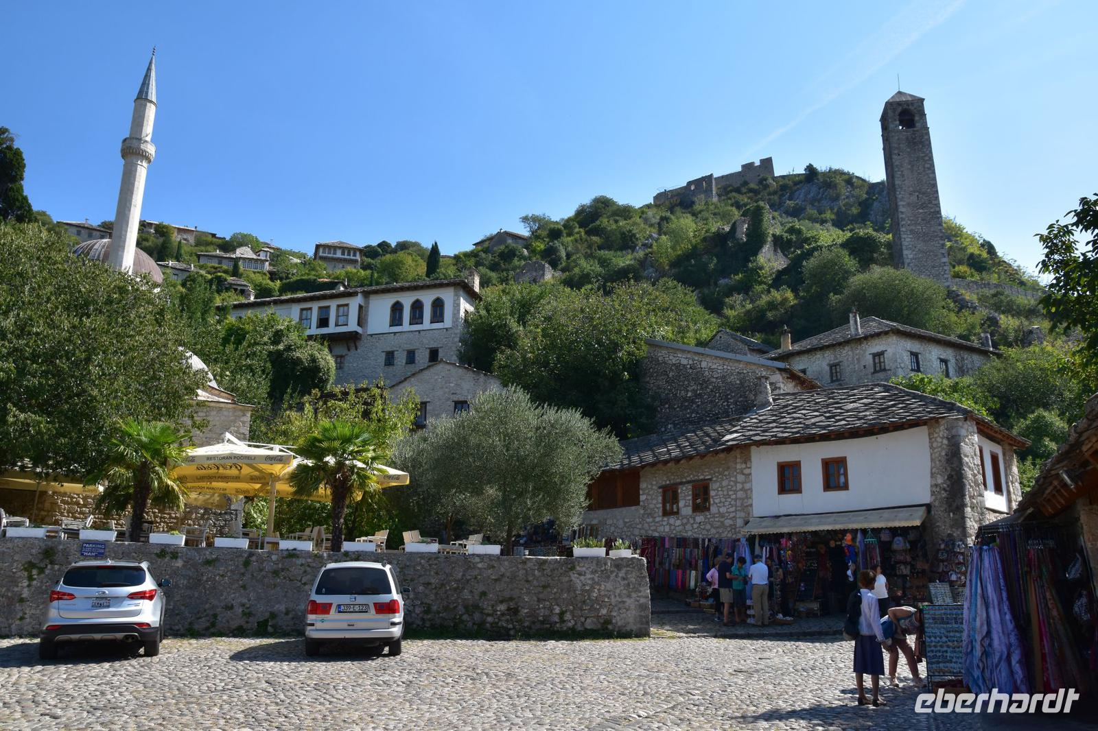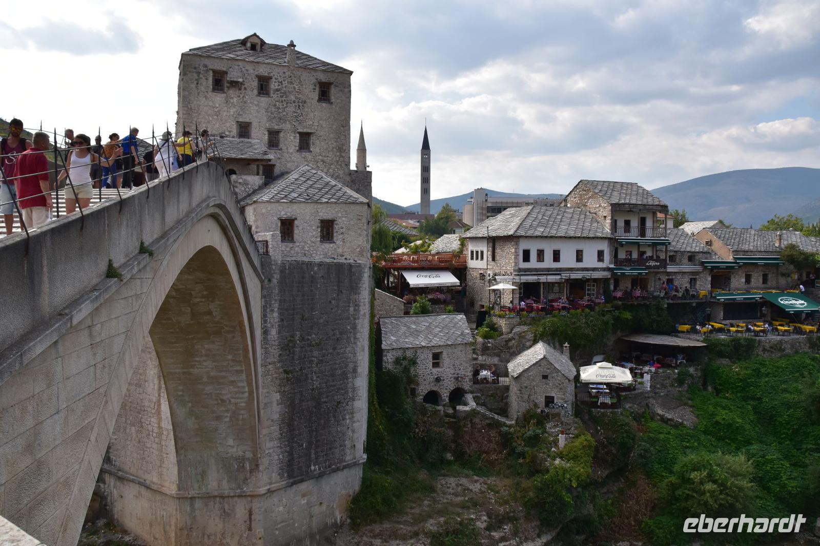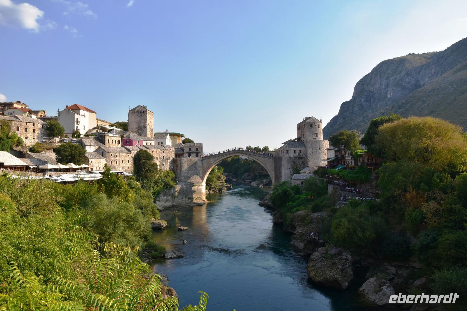 Den Grenzübergang Nova Sela passieren wir reibungslos und so haben wir Zeit einen kleinen Spaziergang durch das morgenländische Pocitelj, mit seiner Festung, den muslimischen Wohnhäusern, der alten Karawanserei, dem Hamam und der Moschee zu machen. Pünktlich zur vereinbarten Zeit erreichen wir den Busparkplatz in Mostar und treffen hier unsere örtliche Stadtführerin Almira. Mit ihr unternehmen wir nach einer kleinen Stärkung einen hochinteressanten Stadtrundgang durch das wieder multikulturelle Mostar. Wir spazieren über die Alte Stadtbrücke, besuchen mit Almira ein türkisches Haus, wo wir viel über das Leben der islamischen Familien erfahren, und die historische Mehmed Pascha Moschee. Von ihrer Terrasse haben wir abschließend einen wunderschönen Blick auf das Flusstal und die Stadt mit ihrer berühmten Brücke.