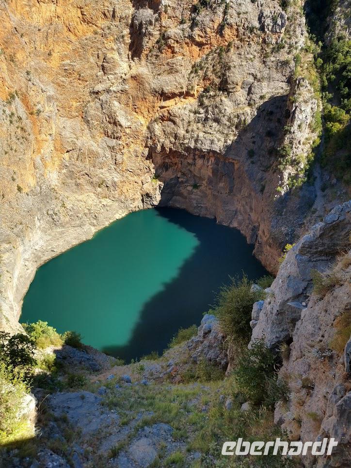 Gemeinsam wollen wir an am ersten Tag nach Imotski - zum Grünen, Roten und Blauen See und zum Peka-Essen ins Mühlenrestaurant. Das tun wir mit Dragan, dem Vater von Boris und seinem Reisebus. Alle sind begeistert von diesem schönen Ausflug, bei dem wir auch die Schlucht der Cetina mit ihrem zweistufigen Wasserfall besichtigen.