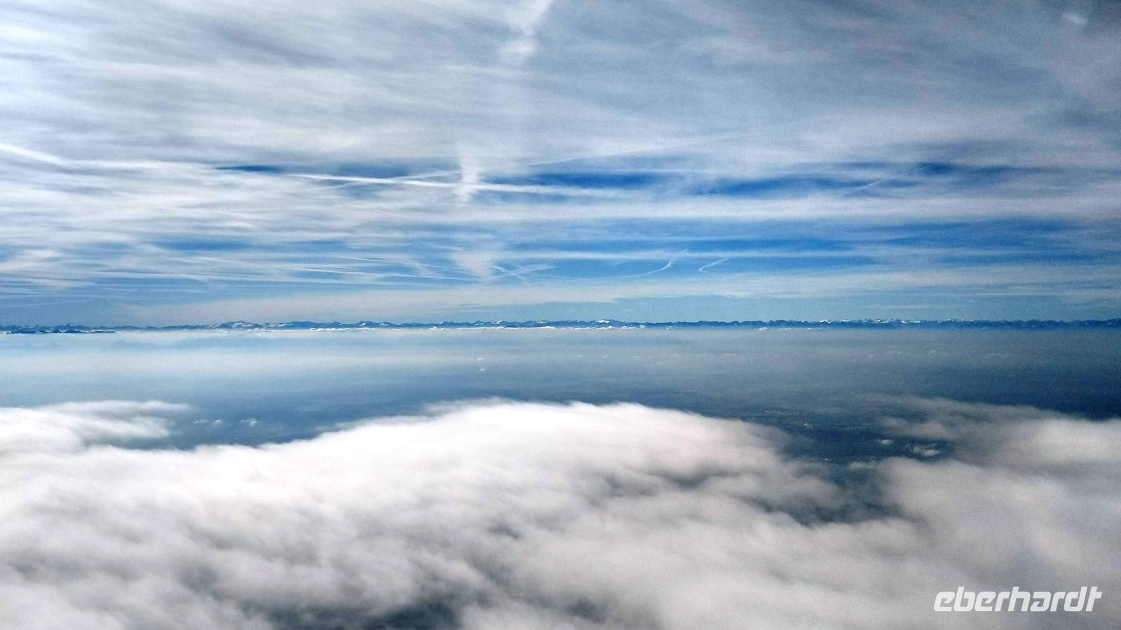 Alle kommen problemlos durch die Sicherheitskontrolle und dann ist noch ausreichend Zeit und Aufenthalt vor dem Check Inn am Gate 5. Die Maschine landet pünktlich und kurz darauf können wir an Bord. Schon erfolgt der Start und wir schweben über den Wolken nach München. Hier treffen wir am Abfluggate auch die Reisegäste die den ersten Abschnitt von Leipzig, Hamburg, Berlin und Frankfurt aus absolviert haben.