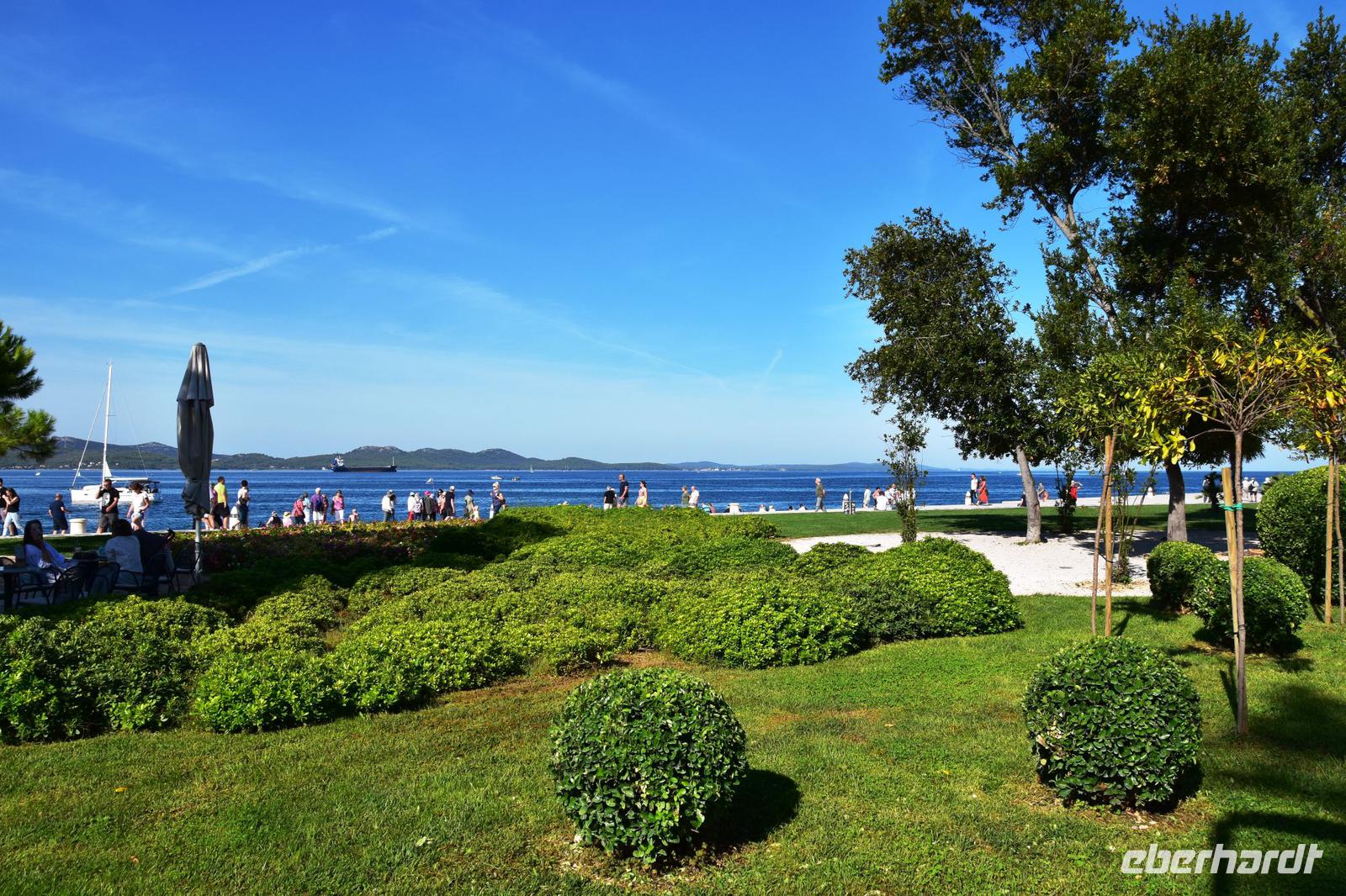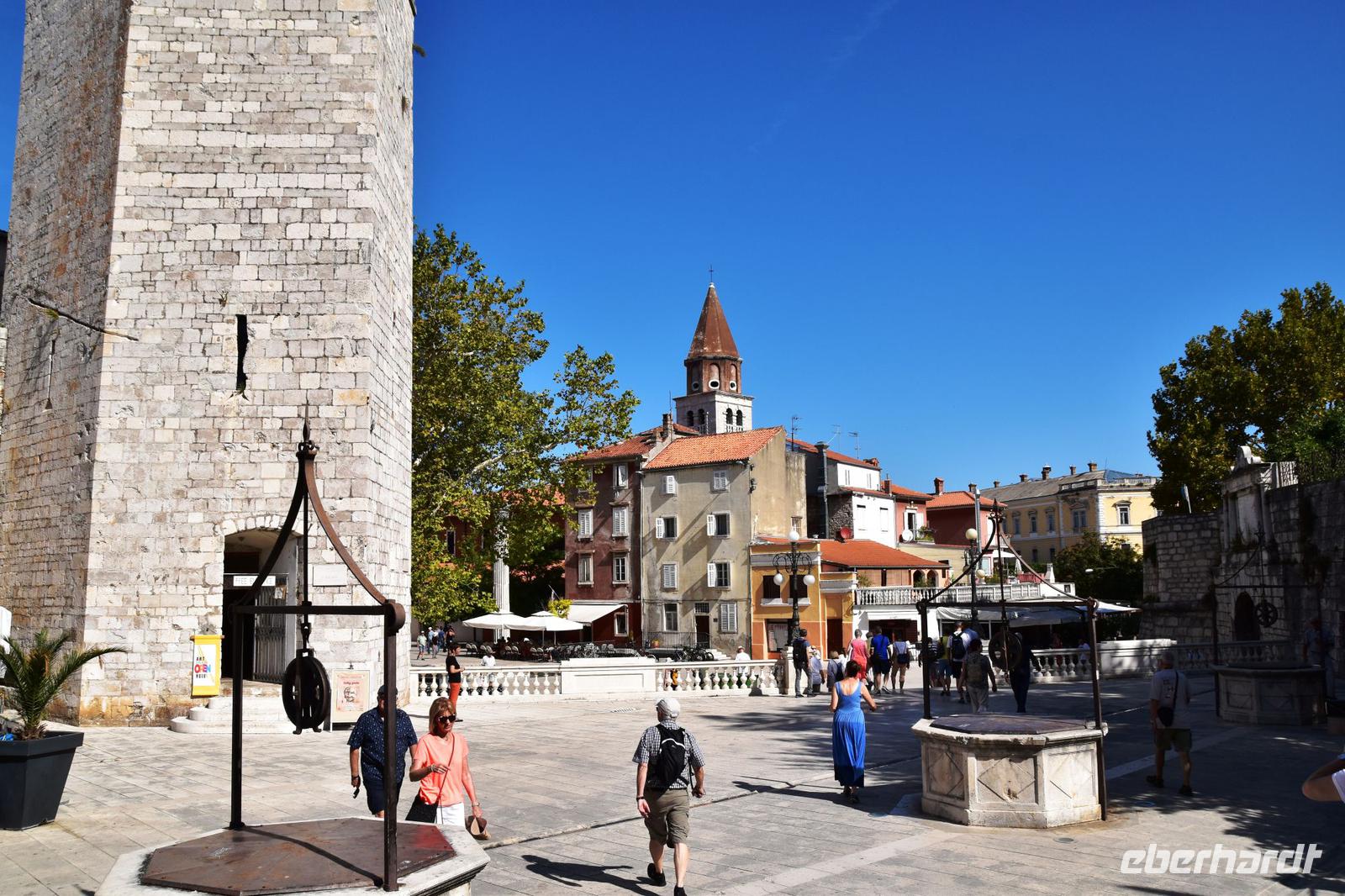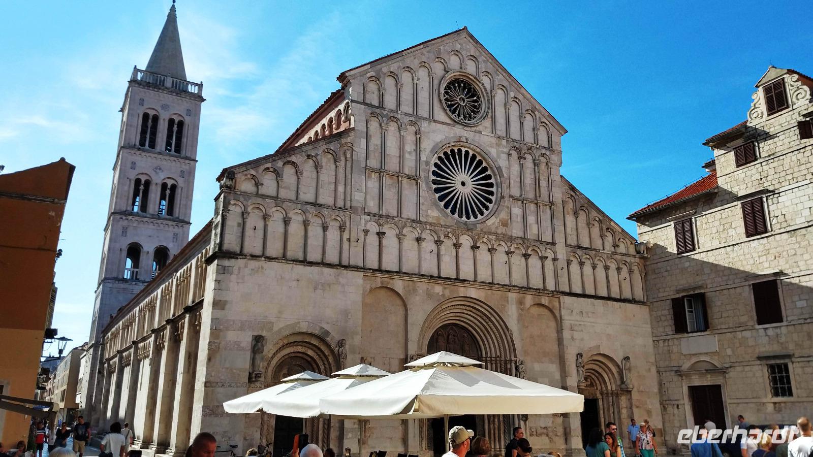 9:00 Uhr starten wir nach Zadar, über Küstenstraße geht es zur Altstadt und dem an der alten Stadtmauer gelegenen Busparkplatz. Meri, die örtliche Reiseleiterin empfängt uns und die Stadtführung beginnt. Sie erläutert uns die Geschichte der Stadt zeigt uns die Sehenswürdigkeiten wie das Planetensystem, die Meeresorgel, das römische Forum, die Kirche des heiligen Donat, die Kathedrale der Heiligen Barbara und den Marktplatz mit Rathaus, Wache und Stadtloggia. In der anschließenden Freizeit machen wir Mittag, essen leckeres Eis und genießen das Flair der Stadt.
