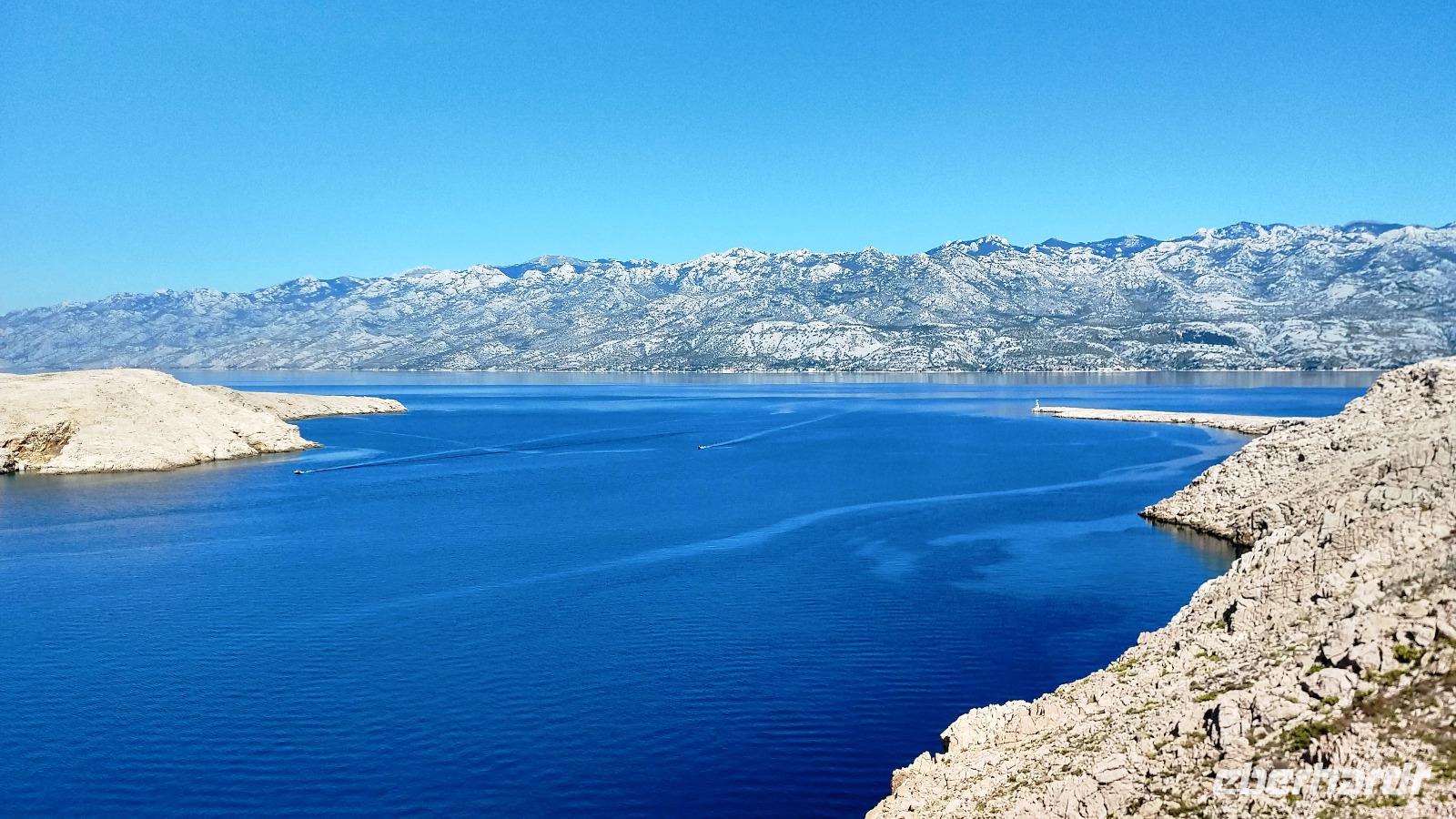 Danach beginnt unsere Fahrt zur Insel Pag, bei ausgezeichneter Sicht zum Velebit-Gebirge.