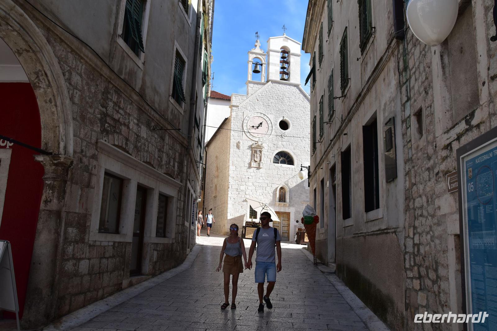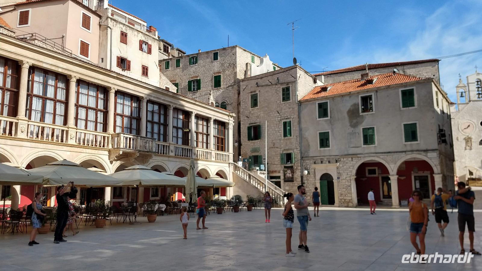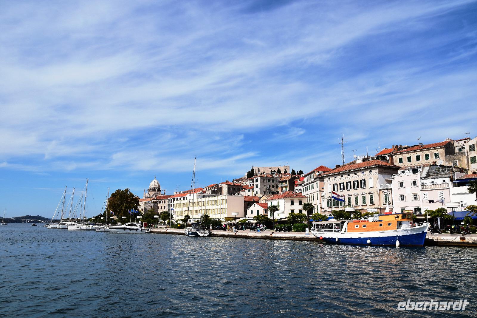 Am Busparkplatz begrüßt uns Marina, unsere Stadtführerin. Sie zeigt uns, bei einer sehr interessanten und sehr guten Führung durch seine Stadt, die schönsten Sehenswürdigkeiten, bis hin zur berühmten Kathedrale. Dem Meisterwerk von Juraj Dalmatinac. Ganz ohne Mörtel gebaut, nur durch den direkten Verbund der Steine hält diese beeindruckende Konstruktion.