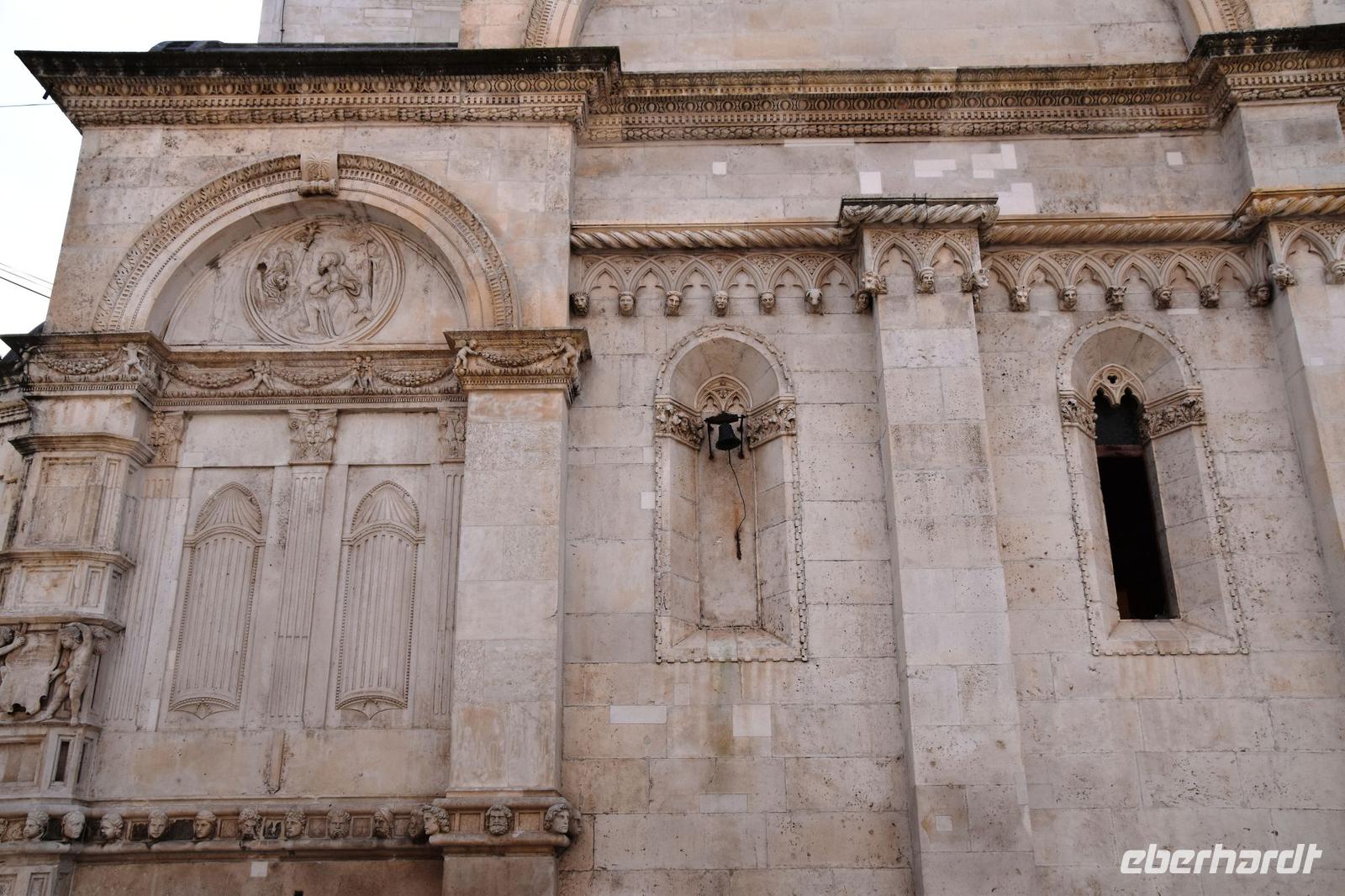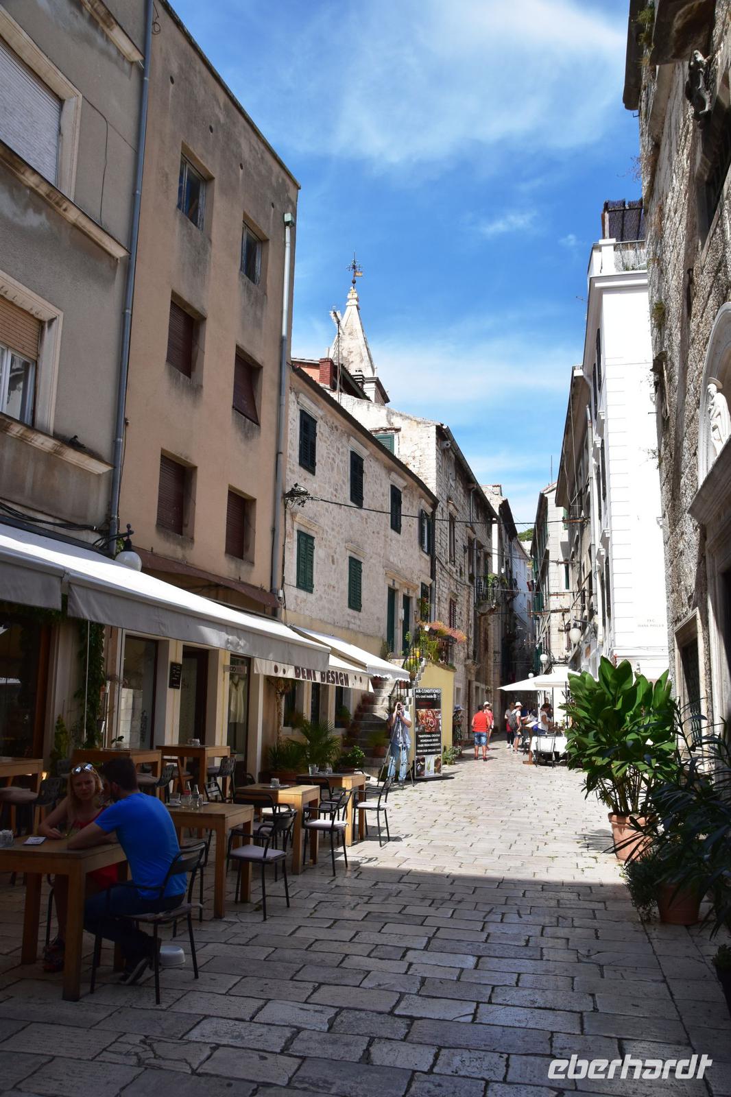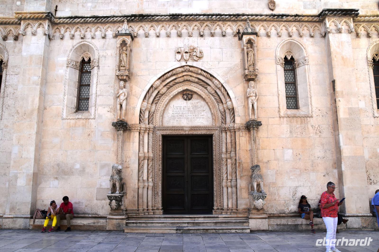 Am Busparkplatz begrüßt uns Marina, unsere Stadtführerin. Sie zeigt uns, bei einer sehr interessanten und sehr guten Führung durch seine Stadt, die schönsten Sehenswürdigkeiten, bis hin zur berühmten Kathedrale. Dem Meisterwerk von Juraj Dalmatinac. Ganz ohne Mörtel gebaut, nur durch den direkten Verbund der Steine hält diese beeindruckende Konstruktion.