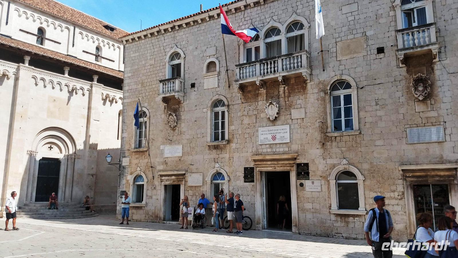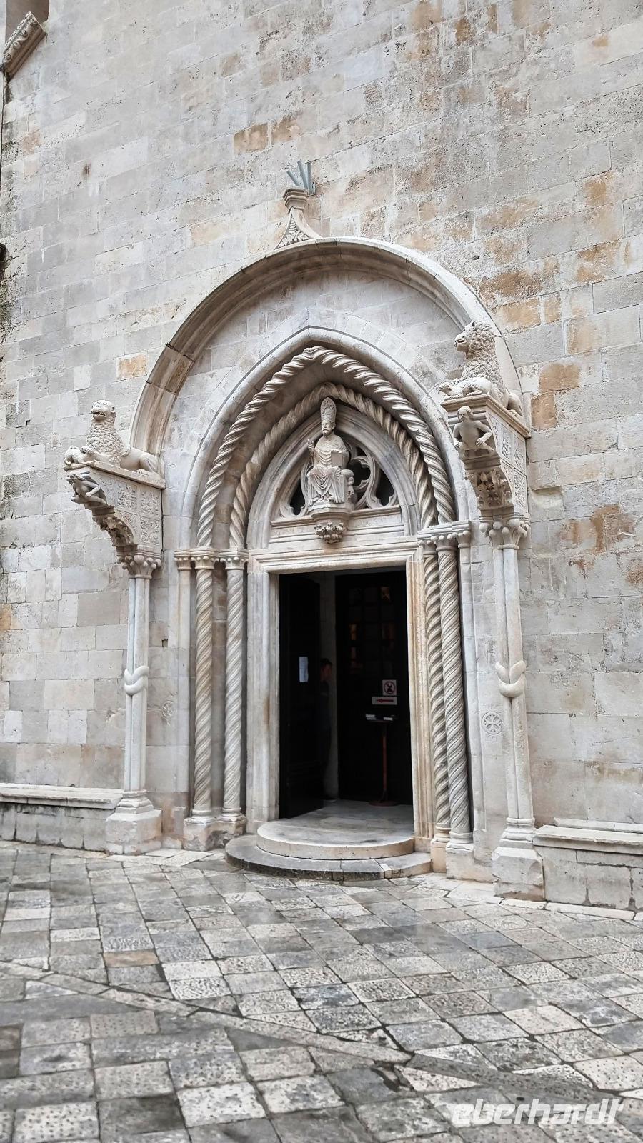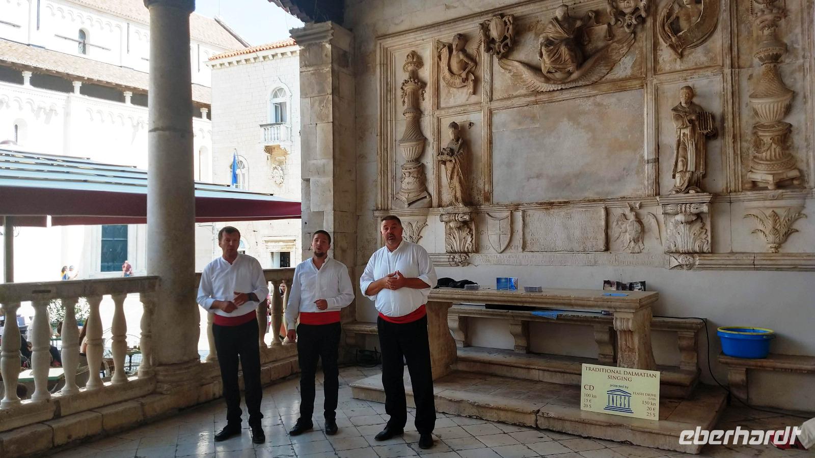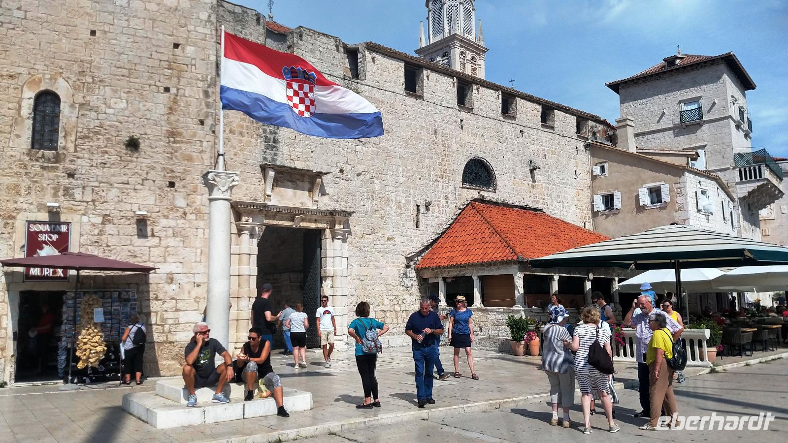 Vesna, unsere Gästeführerin erwarte uns und mit ihr betreten wir die Altstadt von Trogir durch das Landtor. Ein schöner und interessanter Rundweg durch die engen Gassen bringt uns die Sehenswürdigkeiten und den Reiz dieses Städtchens näher. Die schöne Kathedrale mit dem Portal des Meisters Radovan sei als eine Besonderheit erwähnt.