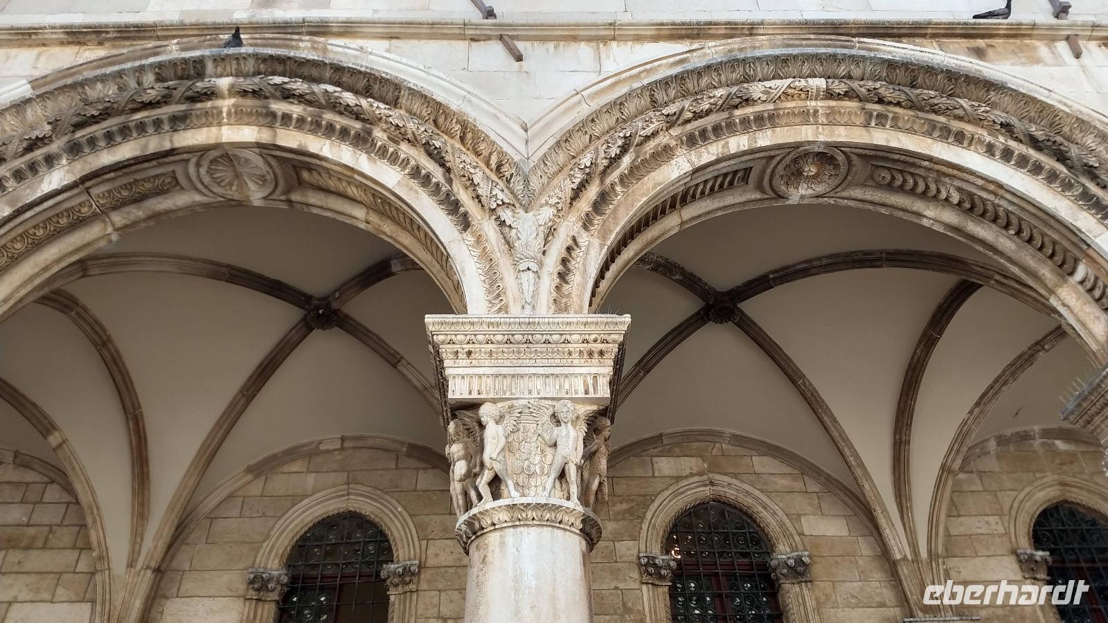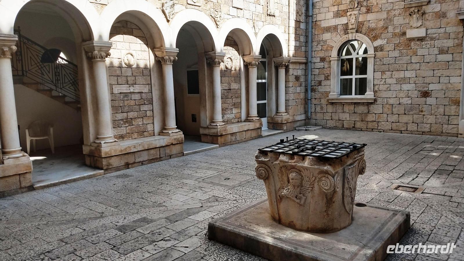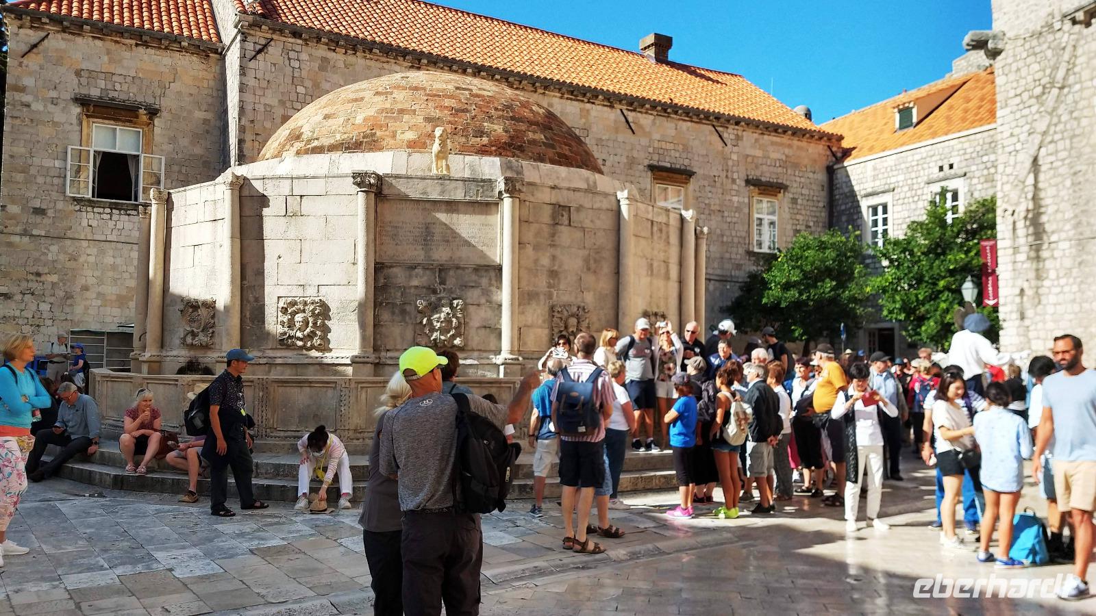 Bei Sonnenschein starten wir heute zur Besichtigung von Dubrovnik. Dazu fahren wir mit dem Stadtbus direkt vom Hotel zum Pile-Tor, wo die Begrüßung mit der örtlichen Stadtführerin Kristina stattfindet. Dann verlassen wir schnellstmöglich den Trubel an diesem Platz und betreten die schöne Altstadt.