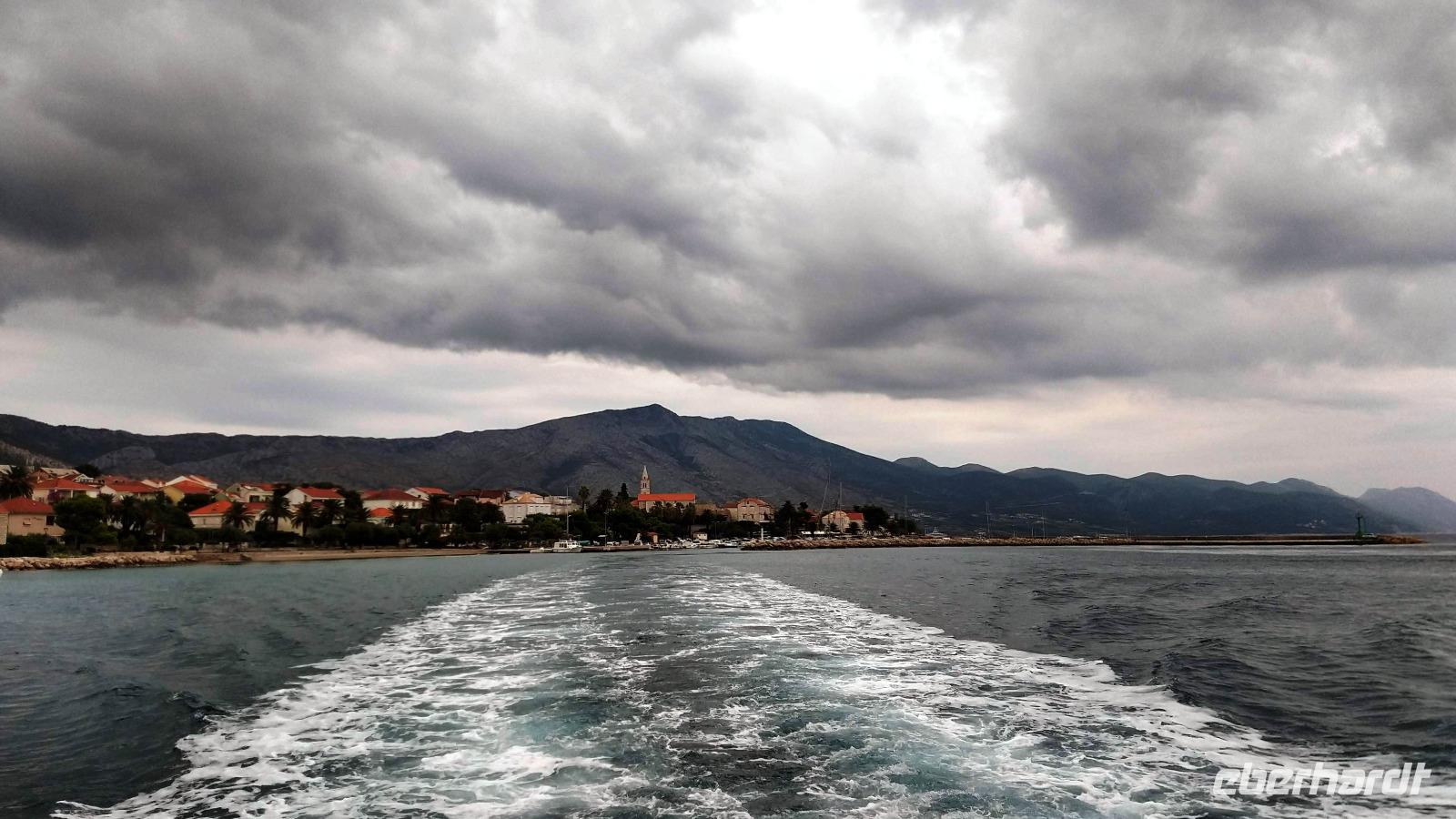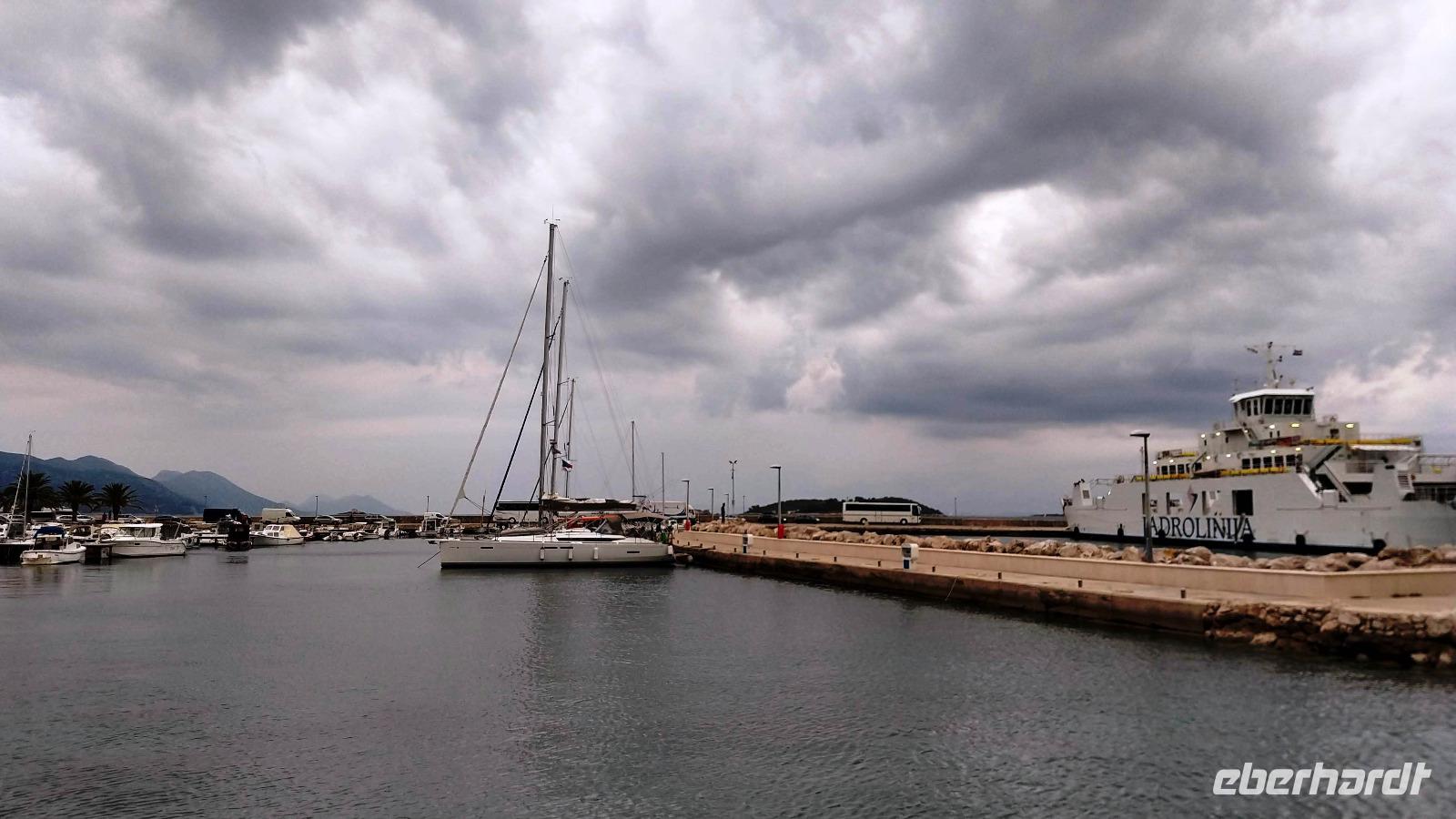 Als wir Orebic erreichen, nahen gewittriger Schauer, aber das trübt unsere Laune