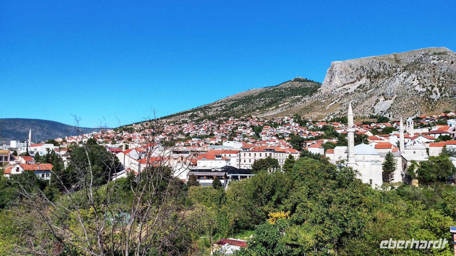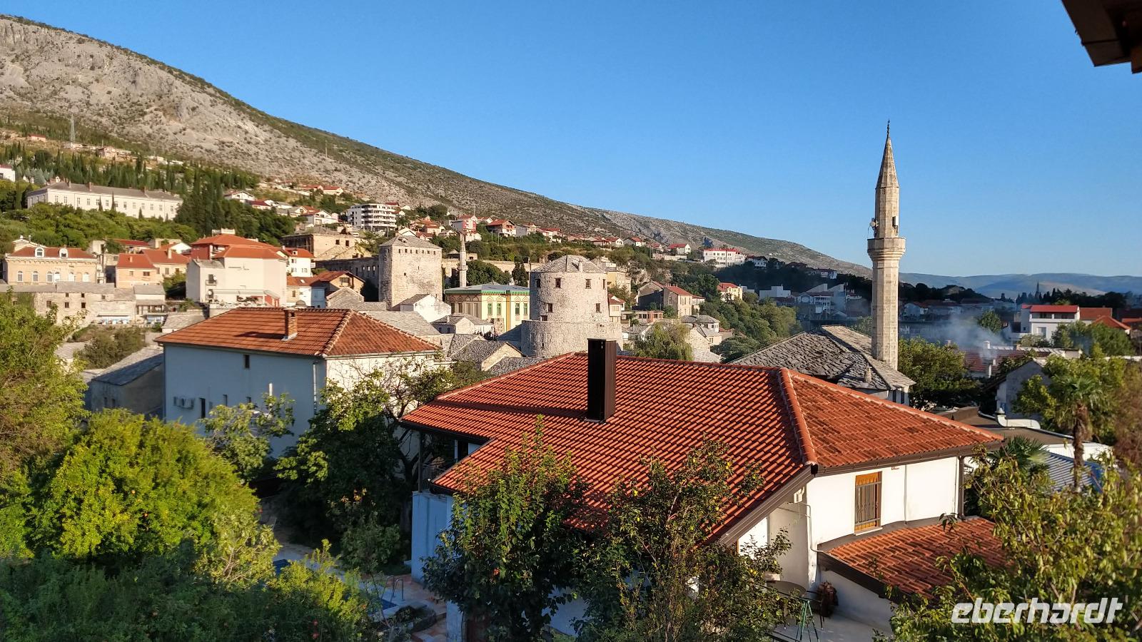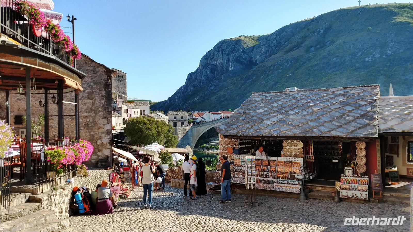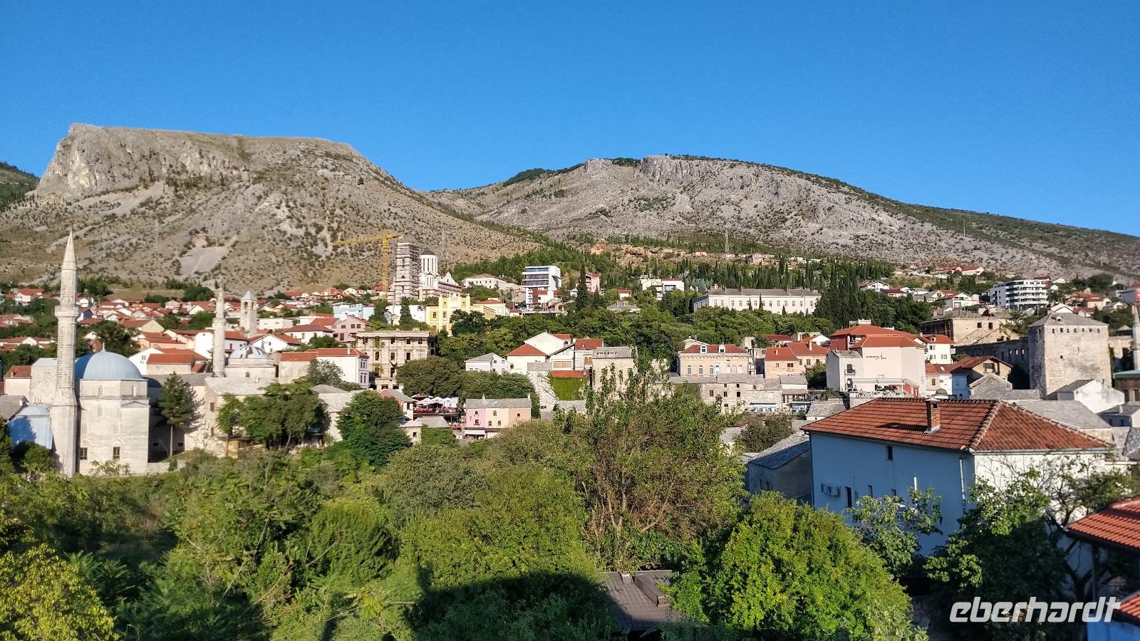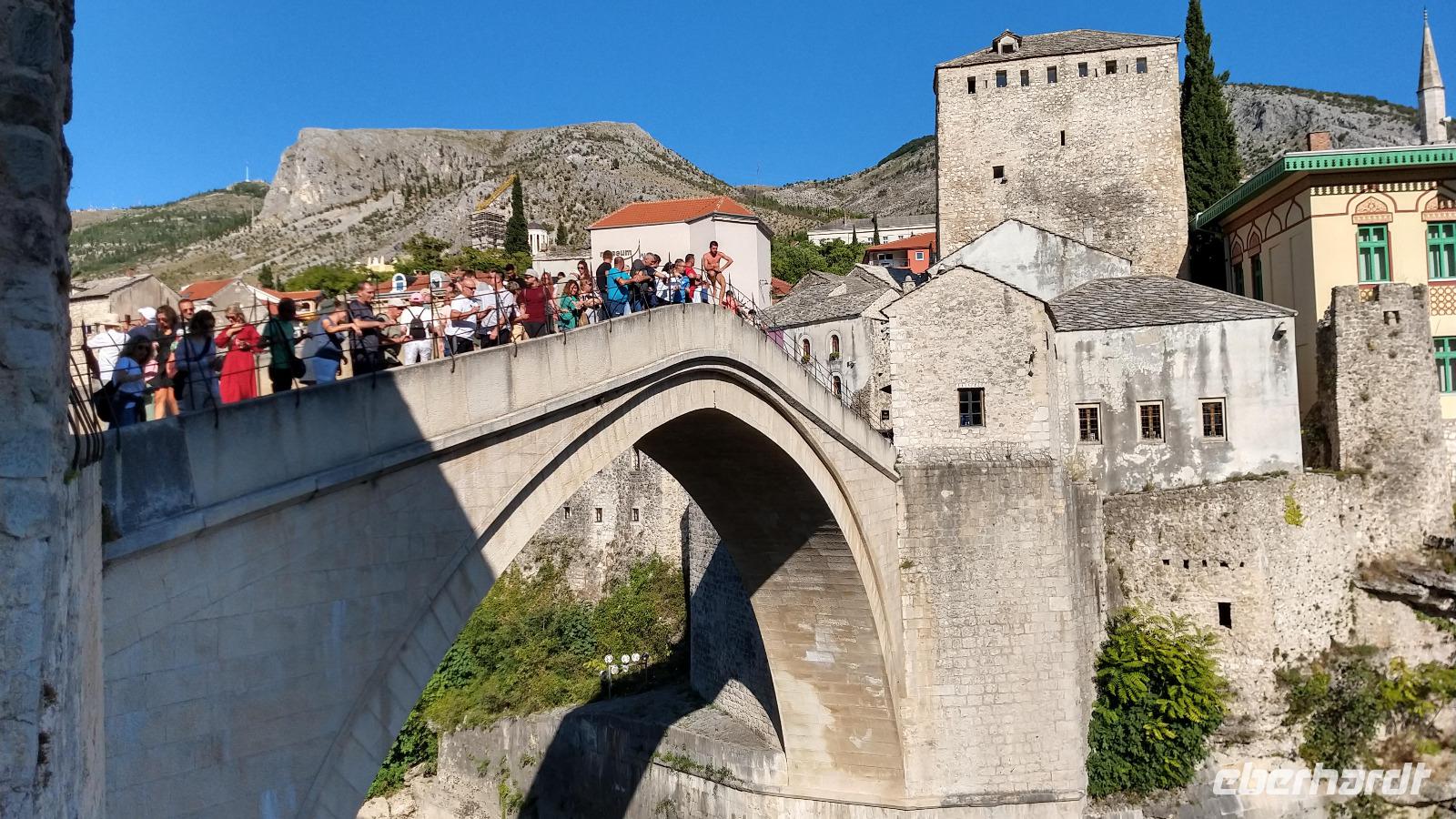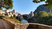 Nach kurzem Stopp in Neum, geht es ein Stück durch die Berge zum Grenzübergang, schließlich zurück ins Tal, und an der Neretva stromaufwärts, vorbei am historischen Festungsort Pocitelj. Durch die Grenzkontrolle erreichen wir leider nicht so pünktlich die im Bergtal gelegene Stadt mit der berühmten Alten Brücke.