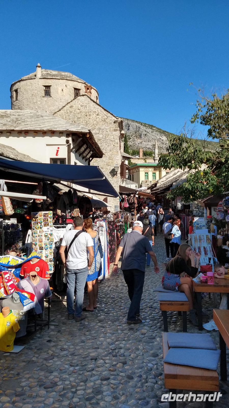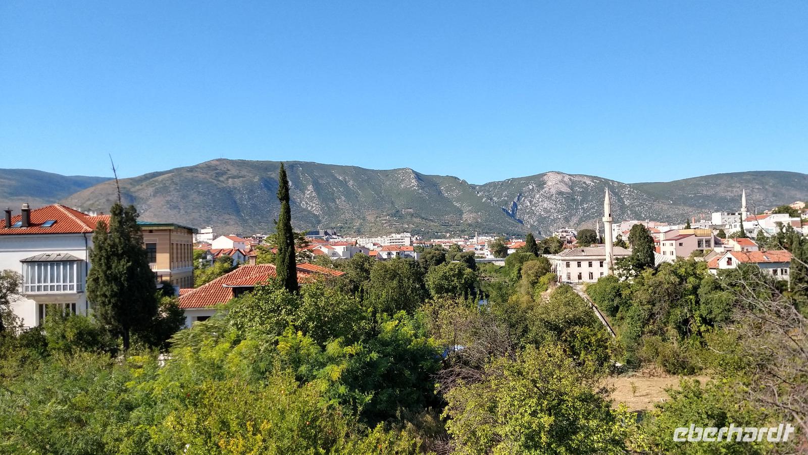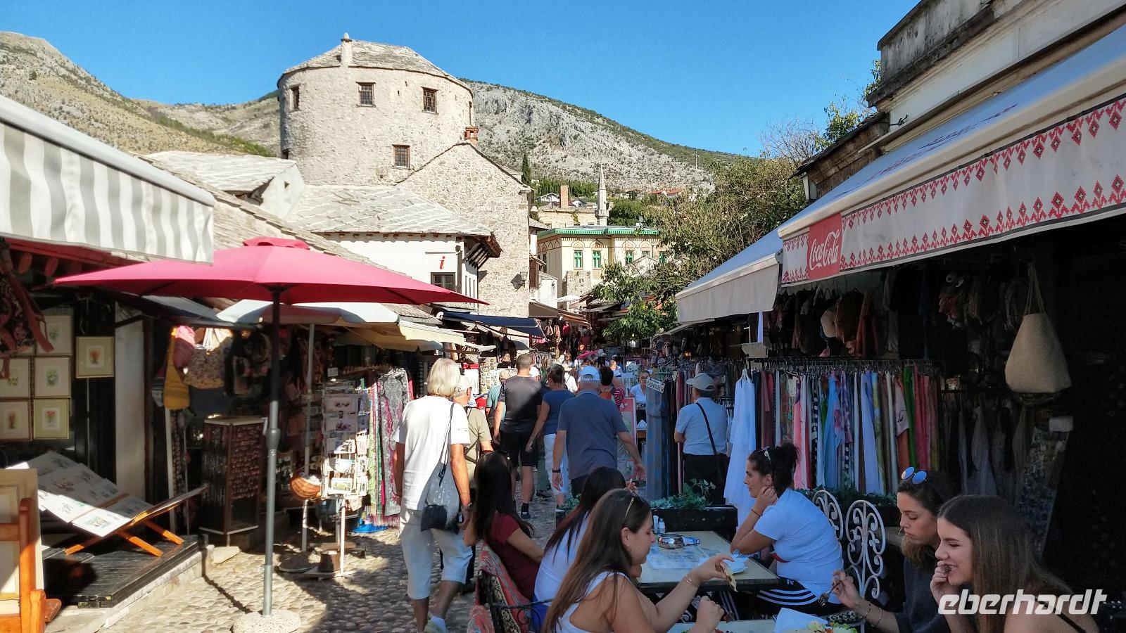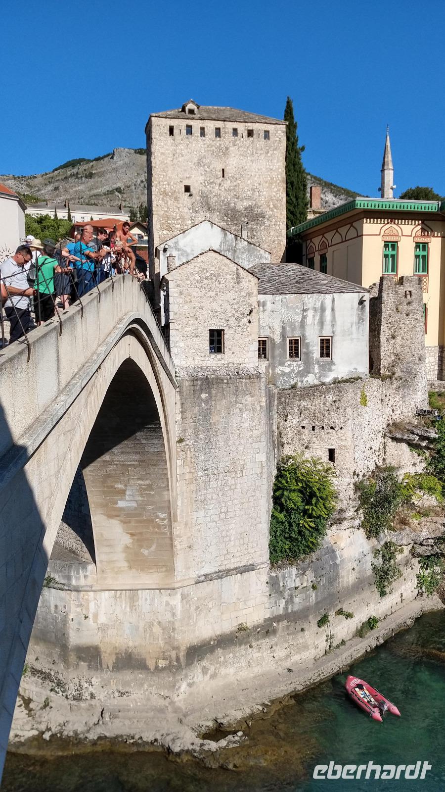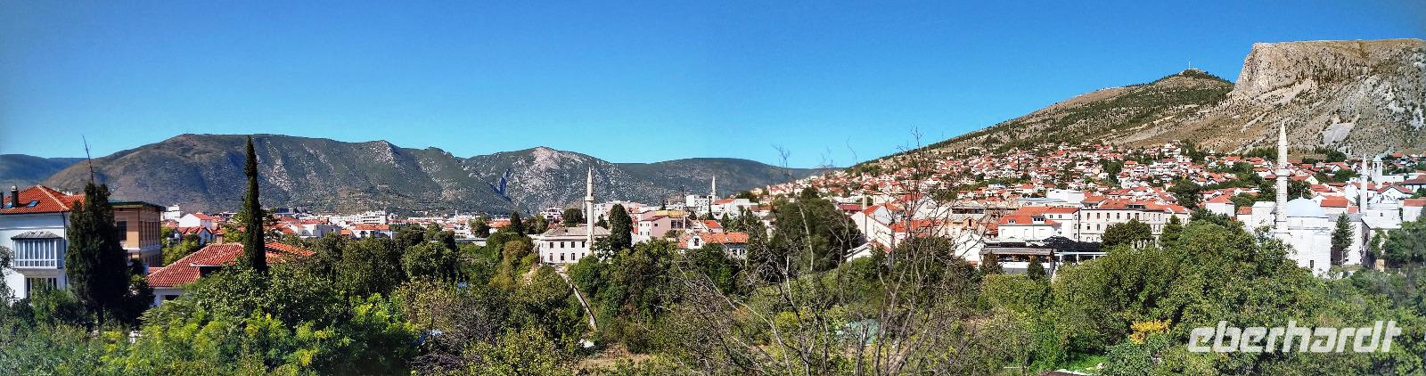 Nach kurzem Stopp in Neum, geht es ein Stück durch die Berge zum Grenzübergang, schließlich zurück ins Tal, und an der Neretva stromaufwärts, vorbei am historischen Festungsort Pocitelj. Durch die Grenzkontrolle erreichen wir leider nicht so pünktlich die im Bergtal gelegene Stadt mit der berühmten Alten Brücke.
