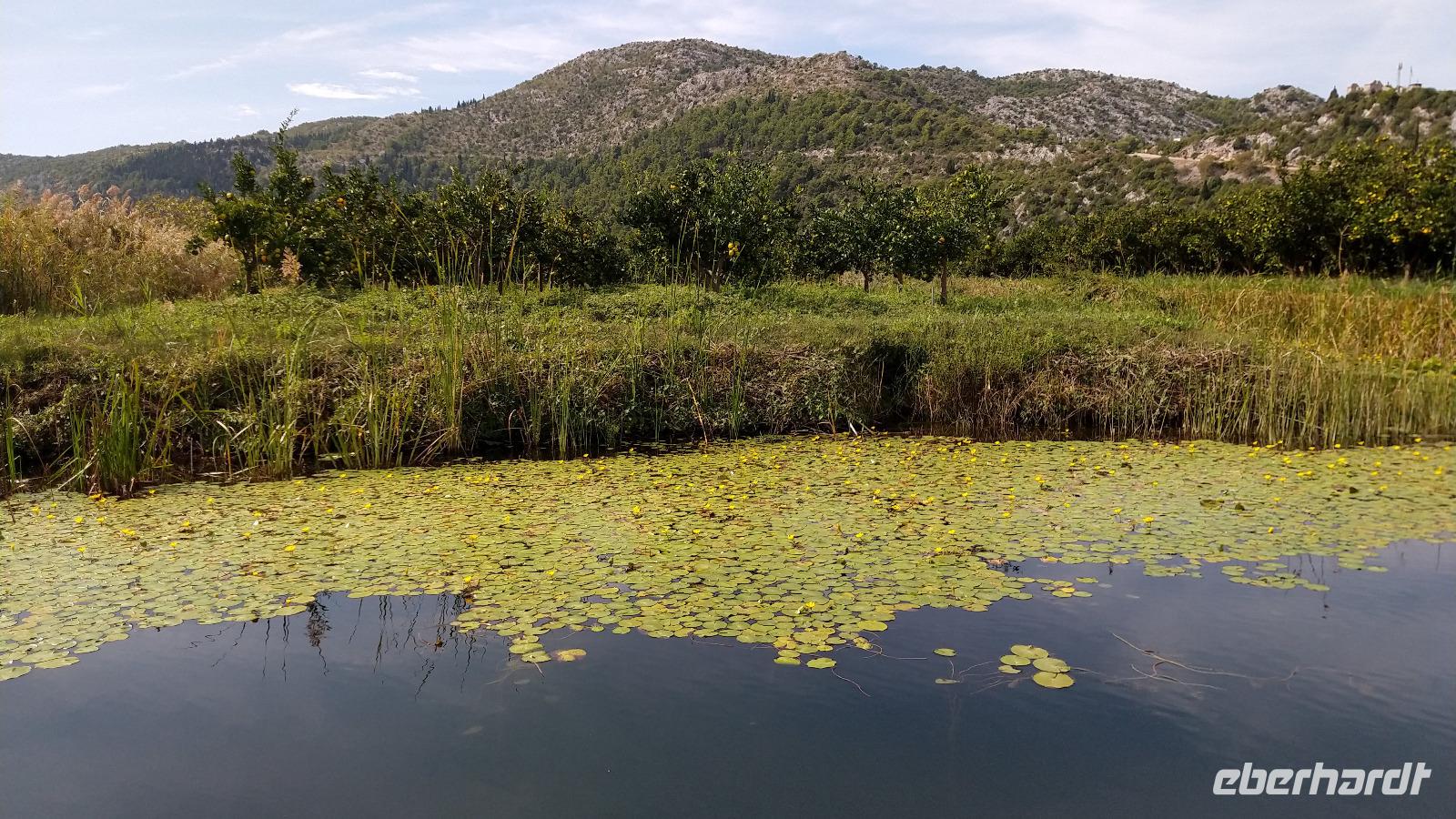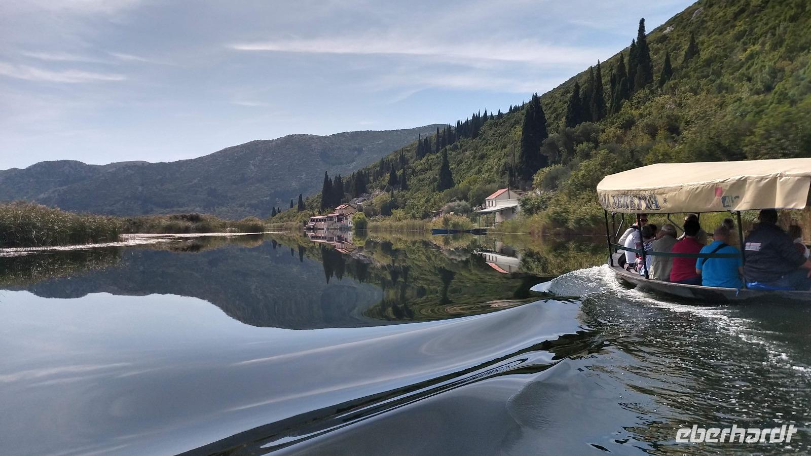 Unweit vom Hotel steigen wir dann in die flachen Boote und fahren durch die wunderschöne Kultur- und Naturlandschaft des Neretvadeltas.
