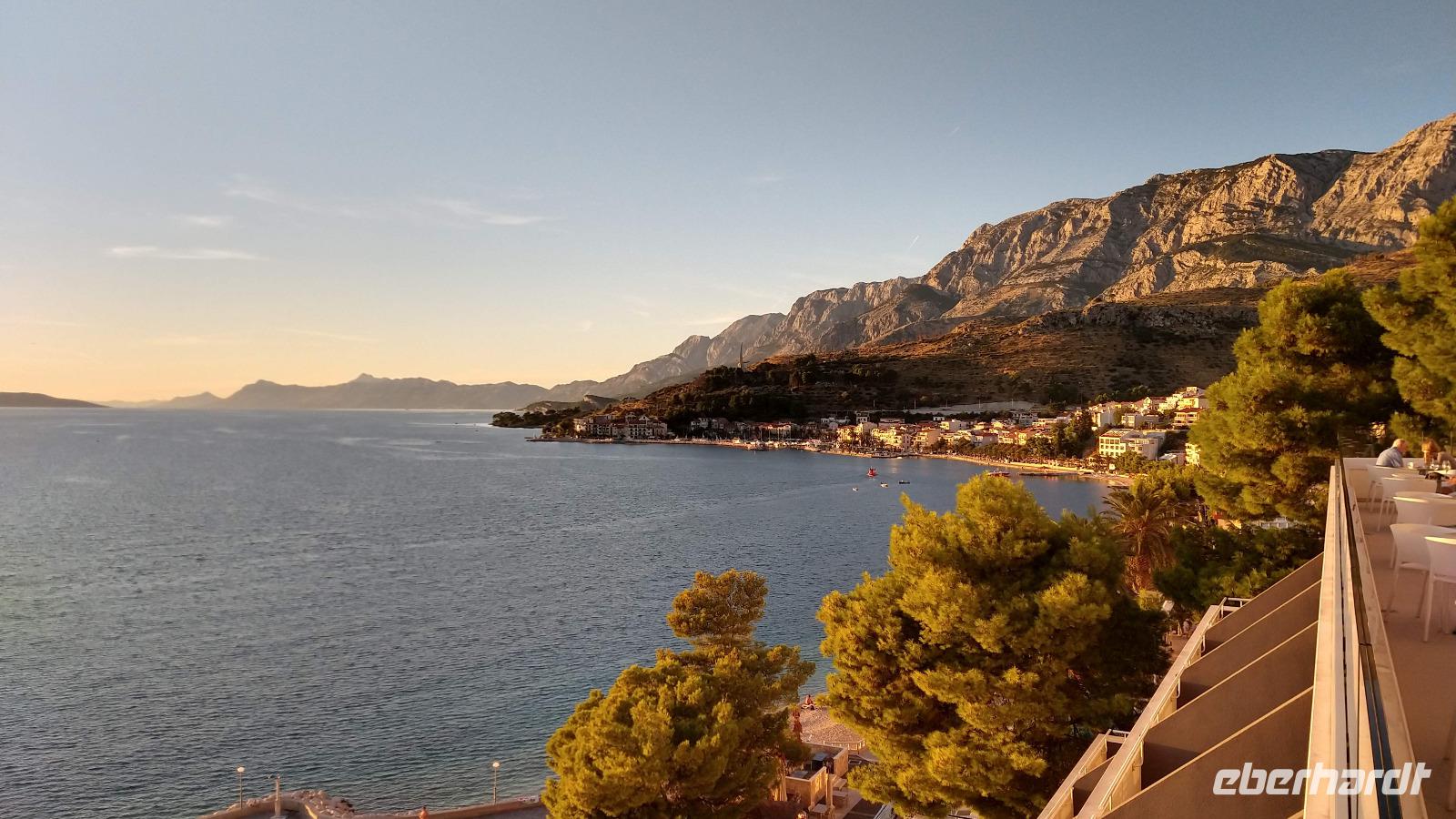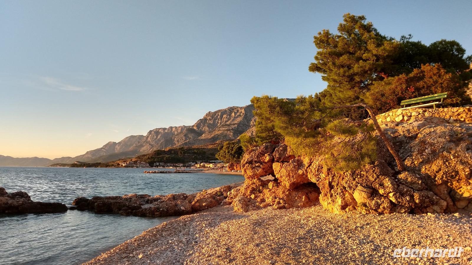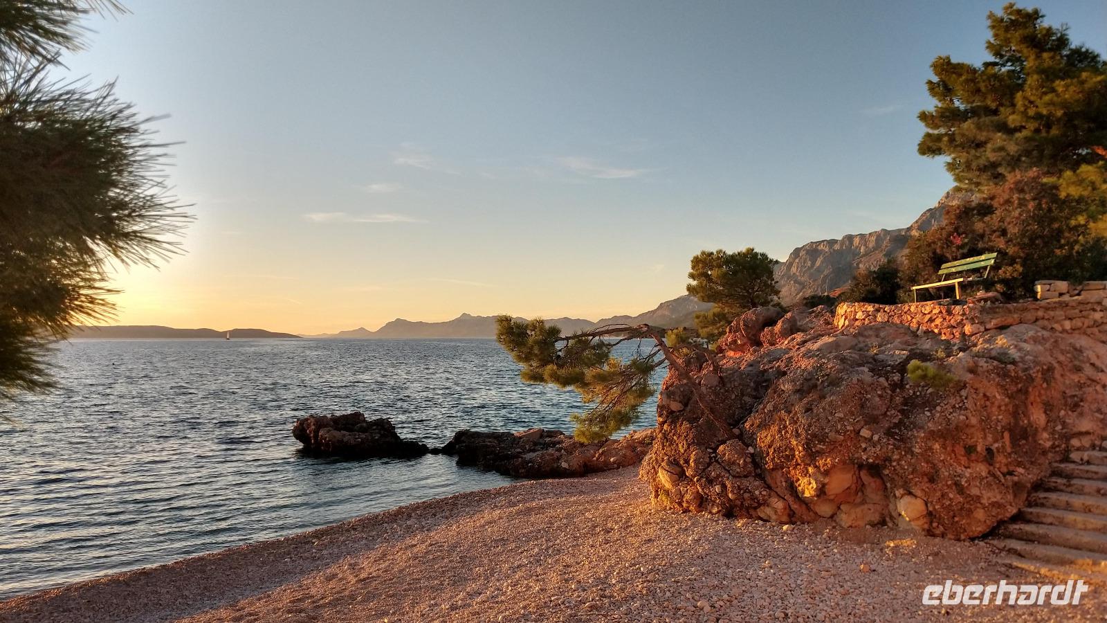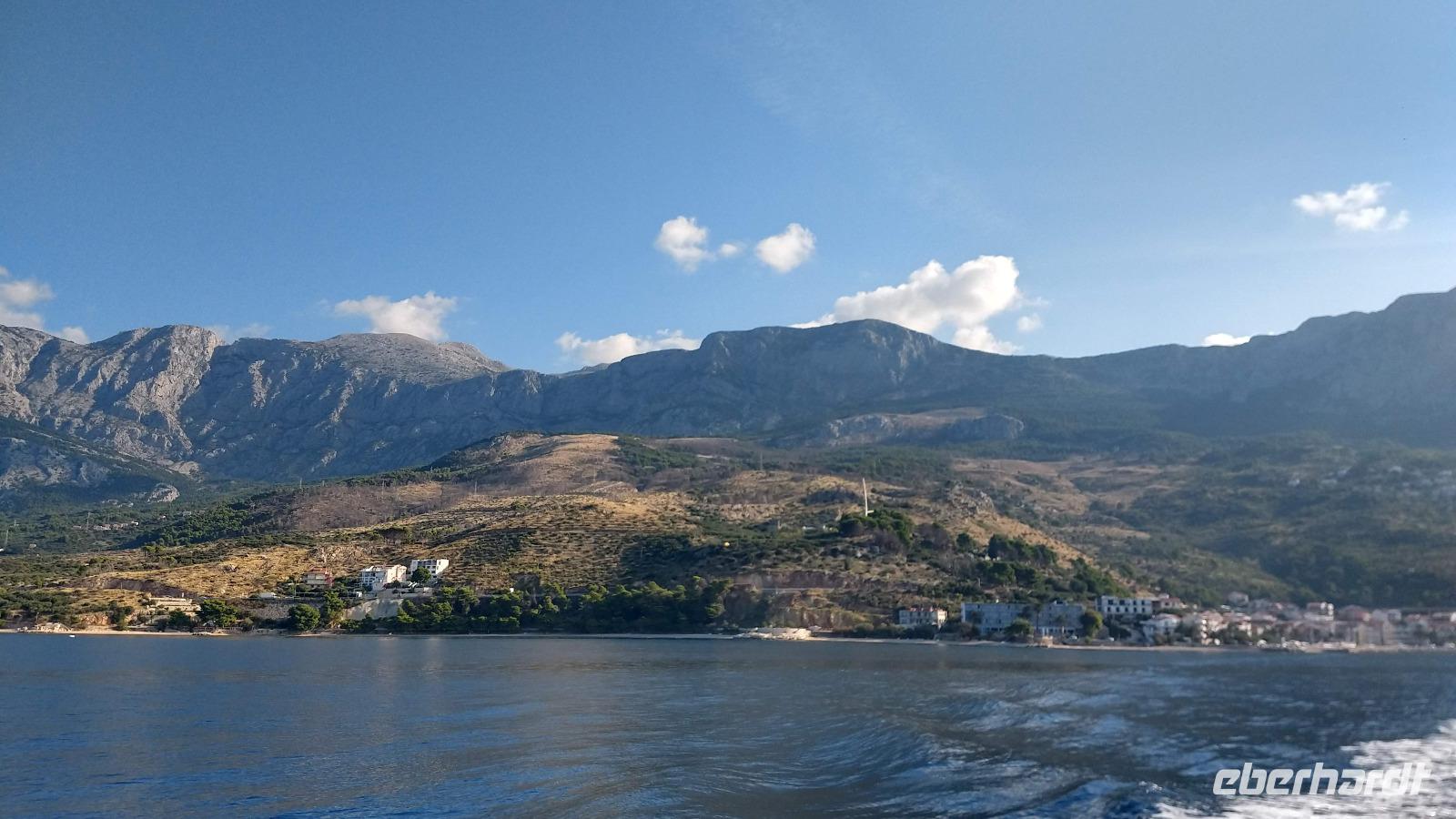 Andere Gäste wandern oder fahren mit einer Exkursion hinauf ins Biokovo-Gebirge und zum „Heiligen Georg", dem mit 1762 m höchsten Berg der Region.Alle genießen die Tage, das tolle Badewetter, die schönen Sonnenuntergänge und erholen sich prächtig.