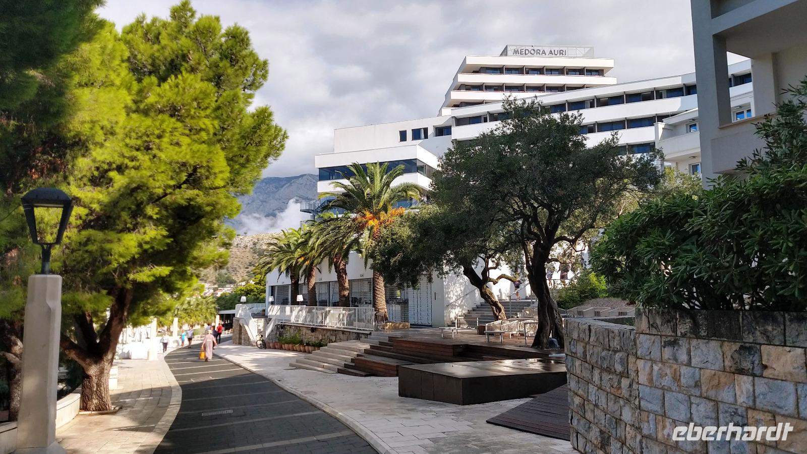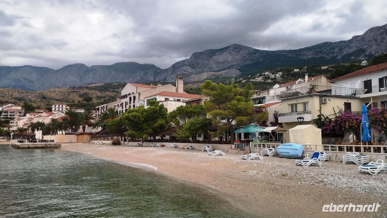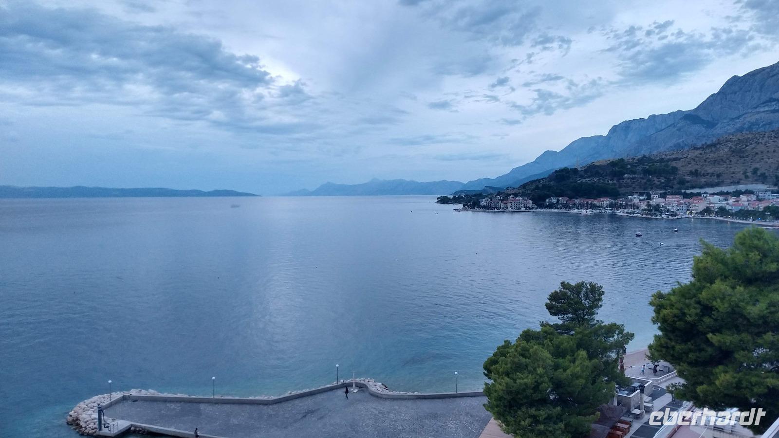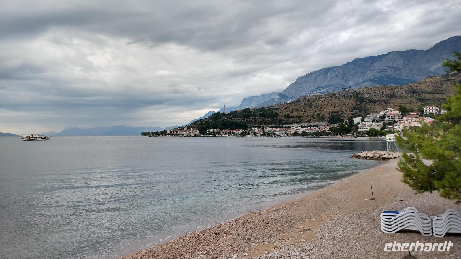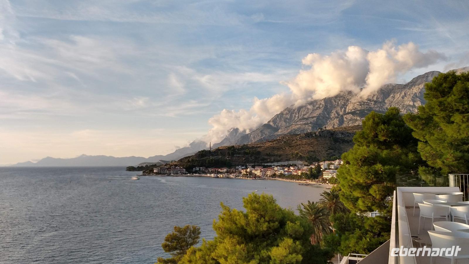 Andere Gäste wandern oder fahren mit einer Exkursion hinauf ins Biokovo-Gebirge und zum „Heiligen Georg", dem mit 1762 m höchsten Berg der Region.Alle genießen die Tage, das tolle Badewetter, die schönen Sonnenuntergänge und erholen sich prächtig.