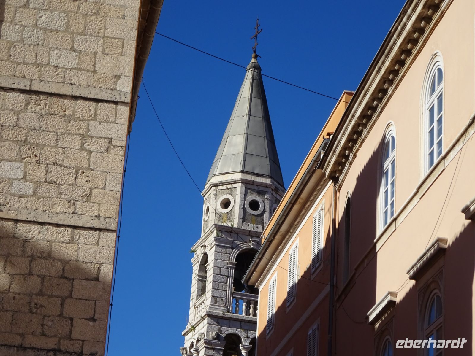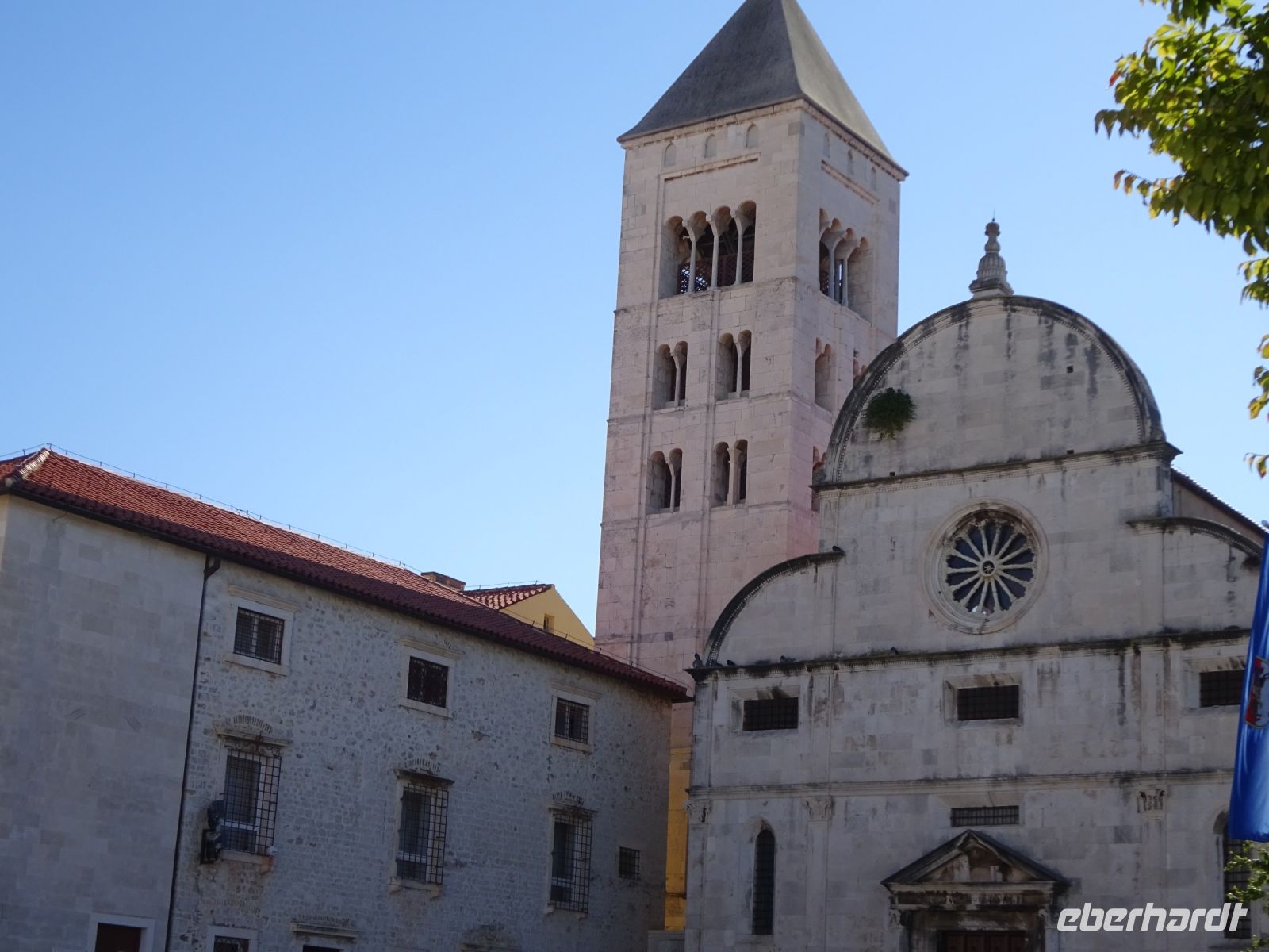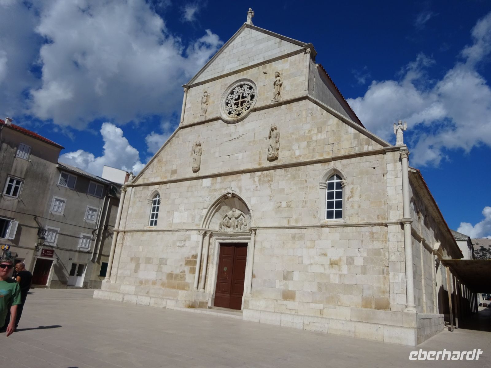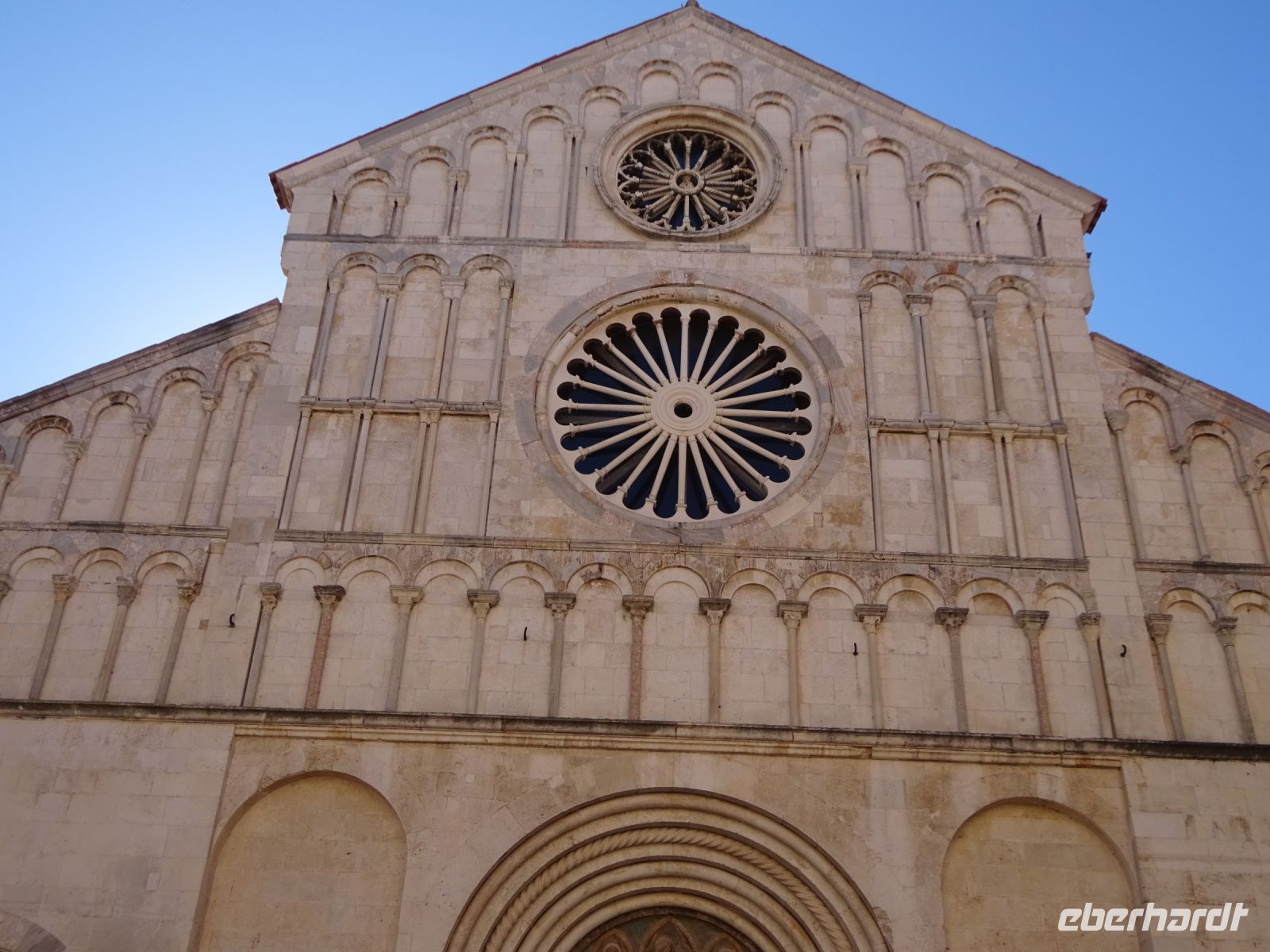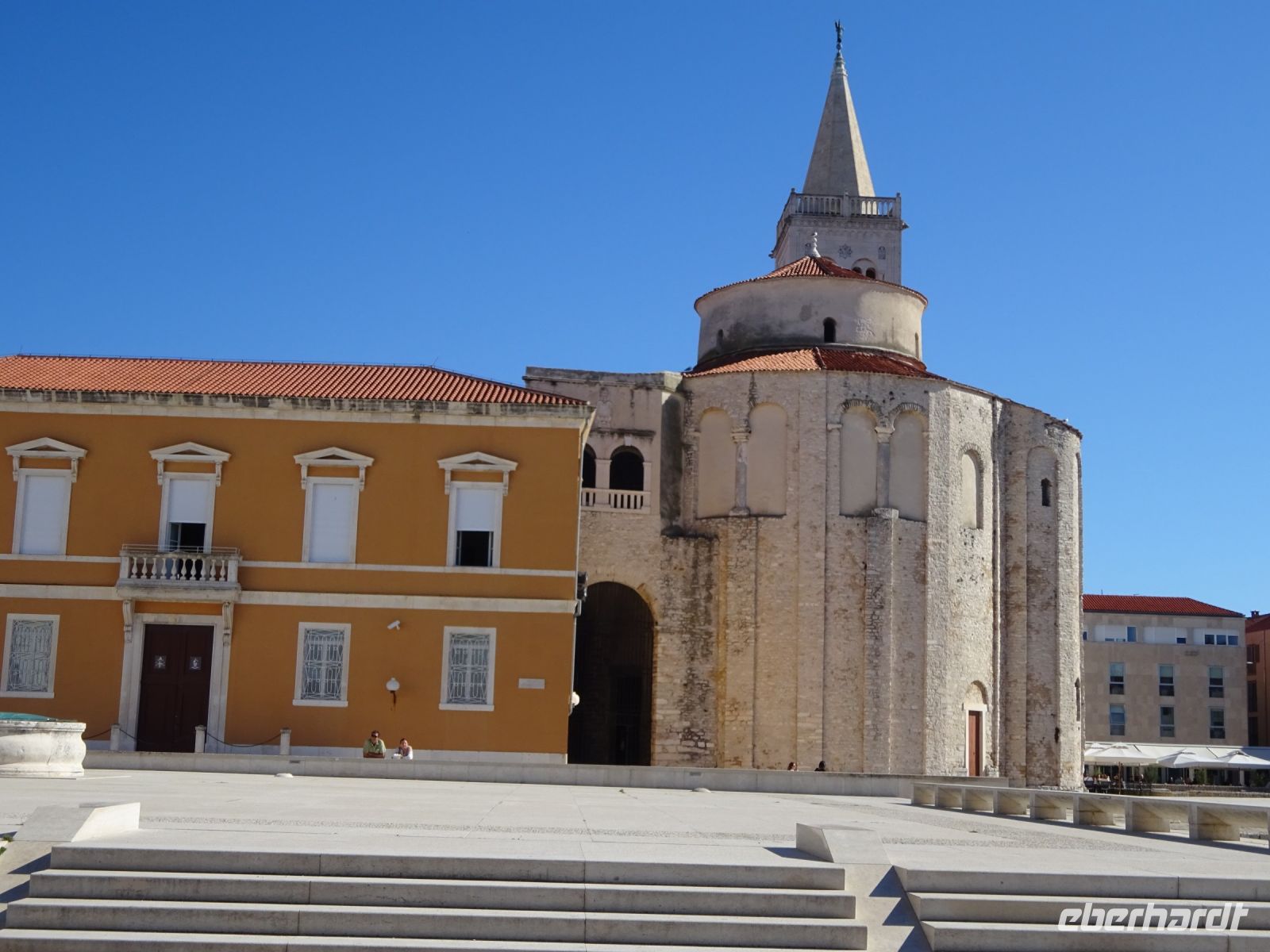 Heute stand zunächst die Besichtigung von Zadar, der ehemaligen Hauptstadt Dalmatiens, auf dem Programm. Auf der Anreise von Split zu unserem Hotel in Petrcane waren wir schon durch das Industriegebiet von Zadar gekommen, hatten auch den Hafen gesehen. Nun war die historische Altstadt an der Reihe. Sie liegt auf einer Halbinsel. Unsere Stadtführerin Meri war pünktlich zur Stelle. Heute ist Sonntag, die Glocken läuten, aus den zahlreichen Kirchen hören wir Gesang und Orgelklänge. In der anschließenden Freizeit wird Gelegenheit sein, die Kirchen auch noch von innen zu bewundern. Unsere Stimmung ist prächtig, woran nicht zuletzt das großartige Wetter eine Aktie hat. Zunächst erfuhren wir von Meri eine Menge über die Geschichte der Stadt, über die römischen Wurzeln, die starken venezianischen Einflüsse und natürlich auch über die Zeit der osmanischen Herrschaft auf dem Balkan. Wir standen auf dem römischen Forum, bewunderten die Kirche des heiligen Donatus aus dem 9. Jh., d.h. aus vorromanischer Zeit, kamen vorbei an der Kathedrale der heiligen Anastasia und bestaunten immer wieder die wehrhafte Stadtmauer. Meri hatte zu allem die konkreten historischen Daten parat. Wir wanderten durch die Gassen und Straßen, kamen zum Marktplatz mit Rathaus, Wache und Loggia, gingen am Obst- und Gemüsemarkt vorbei, der in der Saison auch sonntags geöffnet hat, wegen der Gäste, und spazierten dann noch zur schönen Promenade von Zadar, um das dort gestaltete Planetensystem und auch die Meeresorgel zu bewundern. Die Sonne strahlte und machte dem Sonntag alle Ehre. Nach dem gemeinsamen Rundgang war noch Gelegenheit für eigene Erkundungen, so z.B den für Zadar typischen Likör Maraschino zu verkosten, sich das leckere Backwerk schmecken zu lassen, einen Kaffee zu genießen oder auch ein Eis zu schlecken. Schließlich sind wir im Urlaub! Und Euro in kroatische Kuna wollten wir auch gleich noch tauschen. Ab 2023 ist das nicht mehr nötig, denn dann kann man hier mit Euro bezahlen. Für den Nachmittag hatten wir eine Fahrt auf die Insel Pag auf unserem Programm. Pag ist mit einer Länge von 63 km und einer Größe von 295 km2 die zweitgrößte Insel der Adria. Natürlich gab es unterwegs einige Fotostopps, so an der Brücke, die das Festland mit der Insel verbindet, dann noch einen an einem herrlichen Aussichtspunkt oberhalb der Inselhauptstadt Pag. Über Serpentinen ging es hinauf. Unterwegs zeigten sich schon die Salinen, in denen Salz in einem abgetrennten Meeresteil gewonnen wird. Durch Salz und den Handel damit kam die Stadt Pag übrigens in der Vergangenheit zu beachtlichem Reichtum. Bekannt ist der Ort außerdem für seinen Käse, den Pager Käse, und auch für die Pager Spitzen, die sich vor den Brüsseler Spitzen keineswegs zu verstecken brauchen. Den Pager Spitzen ist in der Inselhauptstadt sogar ein eigenes Museum gewidmet. Weitere Wirtschaftszweige sind auf Pag der Weinbau, Fischfang und natürlich auch der Tourismus. Vom Hafen aus gingen wir auf einen kleinen Stadtspaziergang. Der Weg führte uns durch schmale Gassen bis hin zum Marktplatz. Da wir die Adria vor der Tür hatten, Wetter und Temperatur entsprechend waren, nutzten wir nach der Rückkehr zum Hotel noch die Zeit für ein erfrischendes Bad im Meer. Wem das doch zu kühl war, der hatte als Alternative das großzügige Schwimmbad im Hotel.