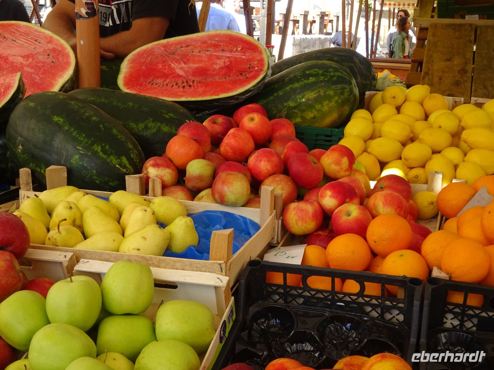 Hier sind die Möglichkeiten vielfältig. Man kann im Meer oder im Pool baden, den Ort Podgora oder auch die umliegenden Orte erkunden, oder aber an Ausflügen teilnehmen, die Hotel und Tourist-Information anbieten und organisieren. Wieder einmal haben wir die Qual der Wahl. Das Wetter müssen wir natürlich dabei auch im Blick haben. So entscheidet sich der Großteil der Gruppe für eine Bootstour zu den Inseln Brac und Hvar mit Picknick und Getränken auf dem Schiff. Andere nutzen die Tage zum Erholen am Meer, spazieren unter Palmen entlang der Promenade. Es gibt auch geführte Wanderungen zu den Bergdörfern, Fahrten ins nahe Biokovo-Gebirge und zum „Heiligen Georg“, dem mit 1762 m höchsten Berg der Region. Für jeden Geschmack ist etwas dabei. Auch das nahe Makarska nehmen wir uns für einen Tag zur Besichtigung vor. Wir treffen uns gewöhnlich zu den Mahlzeiten und tauschen uns über das Erlebte aus. Alle genießen diesen schönen Aufenthalt bei herrlichem Wetter.