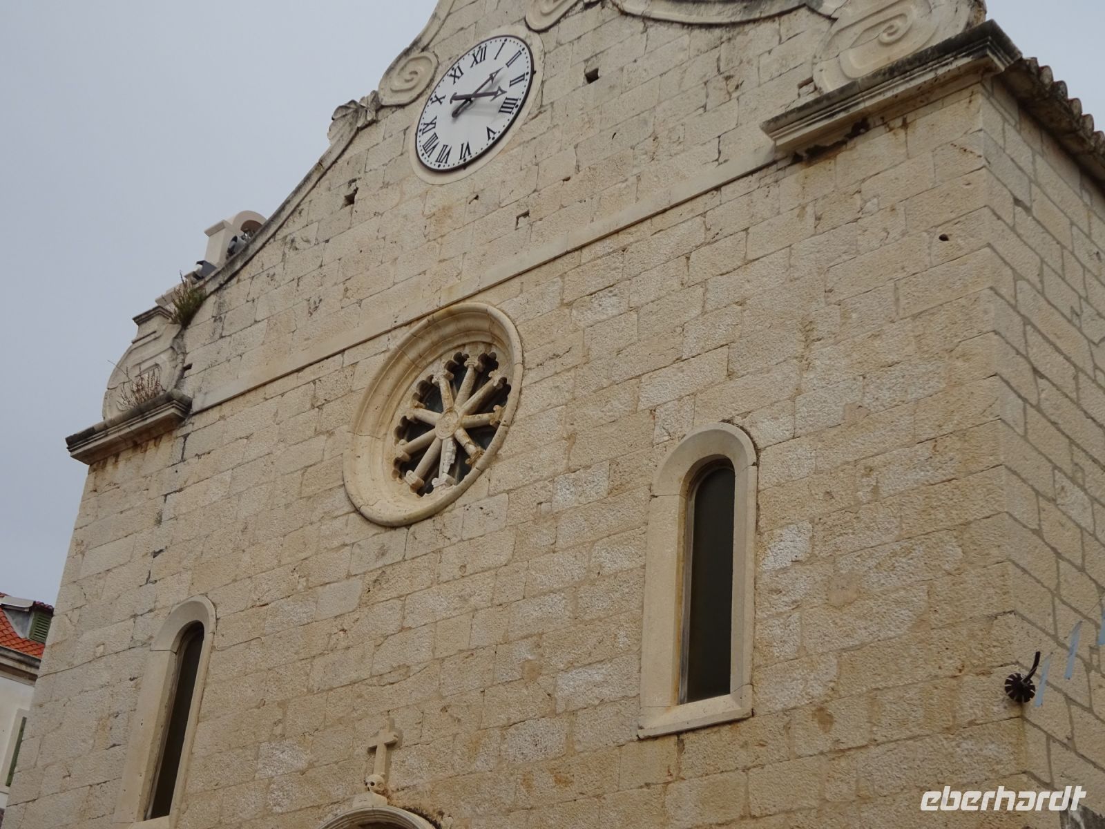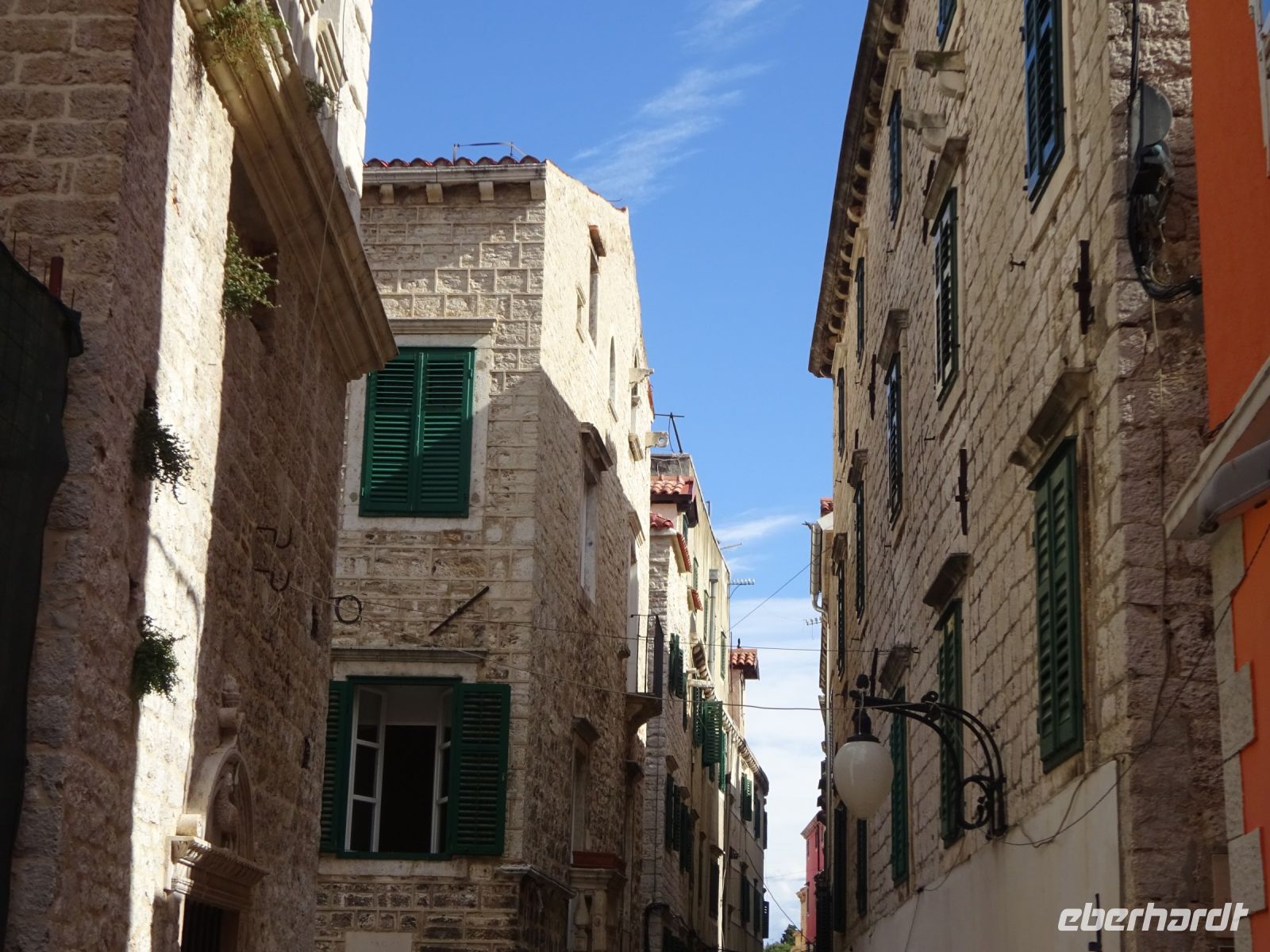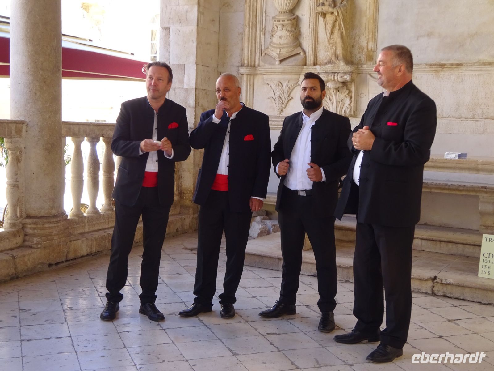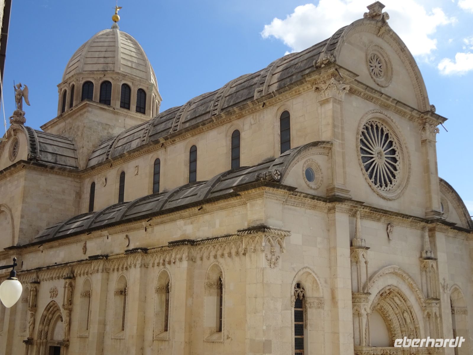 Heute stand am Vormittag der Besuch im Krka-Nationalpark auf dem Programm, ein ganz besonderes Erlebnis. Schon die Fahrt dorthin ist beeindruckend. Bereits von der Autobahnbrücke über die Krka gewinnen wir einen ersten Eindruck. Der Fluss hat sich hier durch eine tiefe Schlucht den Weg gebahnt. Die Eintrittskarten sind am Eingang schnell geholt, Boris fährt uns noch ein Stück, dann beginnen wir unseren Rundgang. Wir gehen über markierte Wege, bleiben immer wieder stehen, um alles möglichst im Foto festhalten zu können. Die Krka fließt hier kilometerweit durch eine Schlucht und bildet auf dem Weg zum Meer sowie beim Durchbruch durch das Gestein zahlreiche Seen und Wasserfälle. Natürlich hatte es uns der große Wasserfall angetan. Aber auch die Mühlen und die sogen. „Wäscherei“ waren sehenswert. Es ist ein großartiges Erlebnis, zu dem heute als Zugabe auch ein ordentlicher Regenguss gehört. Einige hatten Glück und fanden rechtzeitig Unterschlupf, andere waren wirklich pitschnass geworden. Aber das konnte unsere Stimmung nicht trüben. Hier scheint auch schnell die Sonne wieder, wie wir lernen konnten. Es gab sogar einen Regenbogen. Boris holte uns mit dem Bus am Treffpunkt ab, und weiter ging es zum Nachmittagsprogramm nach Šibenik, wo uns unsere Stadtführerin Marina schon erwartete. Auch diese Stadt, gelegen an der verbreiterten Mündung des Krka-Flusses, hat allerhand zu bieten. Das wurde uns schnell klar. Marina nahm uns mit auf einen interessanten Rundgang in diese wirklich sehenswerte Altstadt mit ihren verwinkelten Gassen und der Festung St. Anna. Den größten Eindruck machte auf uns aber die Kathedrale St. Jacob, ein einzigartiges Bauwerk, was ganz ohne Mörtel gebaut ist und nur durch den direkten Verbund der Steine hält und, wie könnte es anders sein, zum UNESCO-Weltkulturerbe gehört. Der geniale Baumeister dieses Kunstwerkes ist Juraj Dalmatinac. Einige von uns sahen sich die Kathedrale auch noch innen an, besonders die einzigartige Taufkapelle. Noch etwas individuelle Freizeit in dieser schönen Stadt, ein Spaziergang durch den Park und dann vorbei an der Hafenpromenade, und wir trafen uns alle im Bus, um zurück in unser Hotel zu fahren.