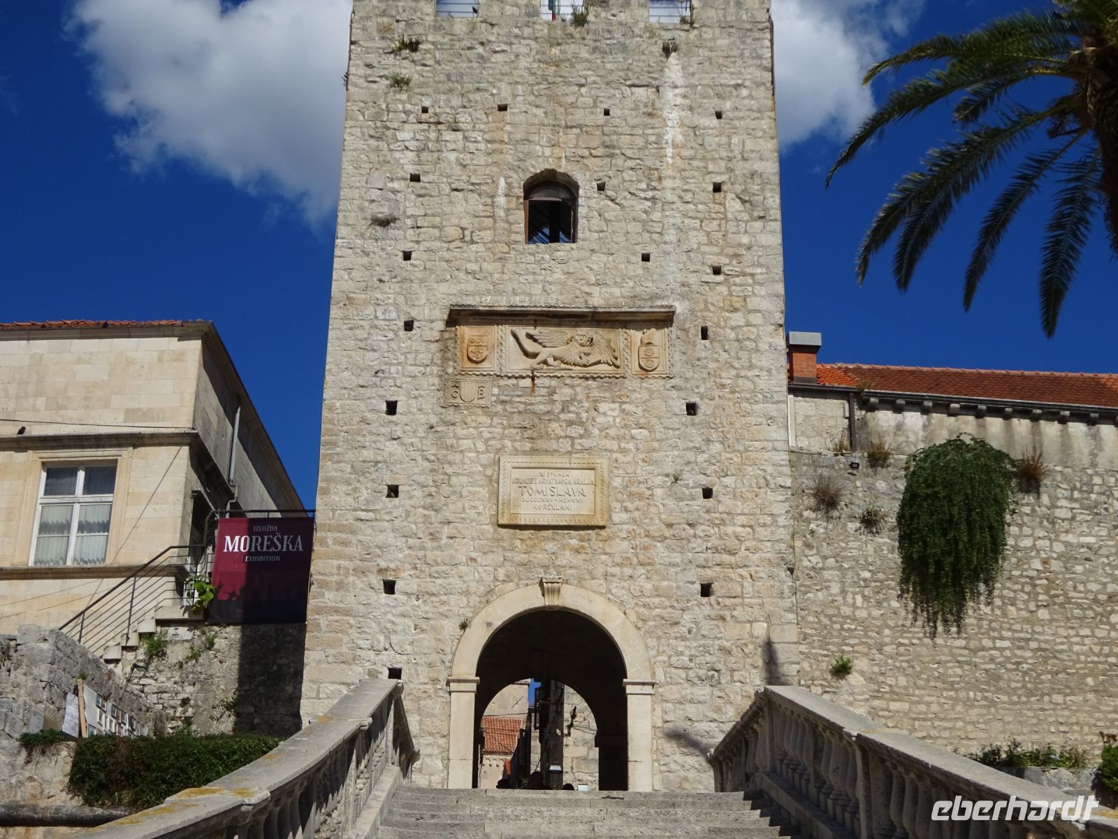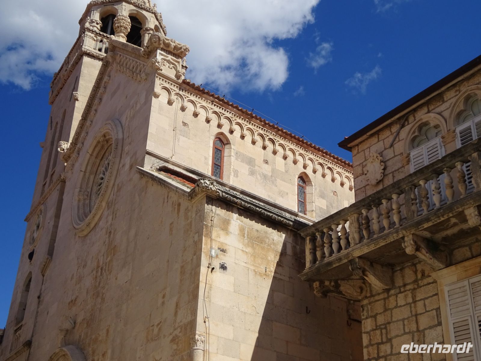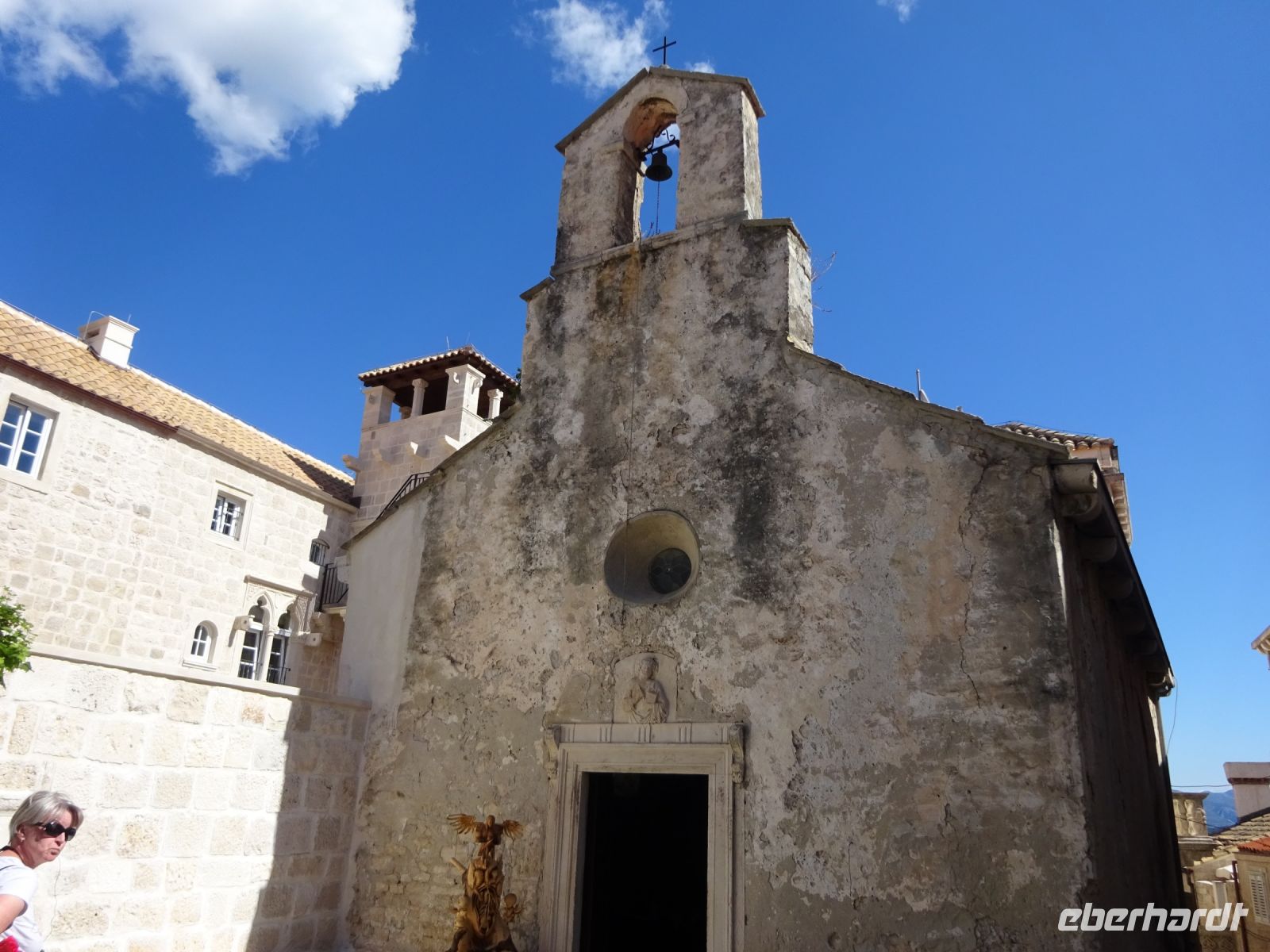 Der heutige Tag steht ganz im Zeichen von Insel und Inselhauptstadt Korcula. Zunächst fahren wir mit dem Bus auf die zweitgrößte Halbinsel Kroatiens nach Pelješac. Mit der Fähre geht es dort vom Ort Ostrebic hinüber zur Inselhauptstadt von Korcula, nach Korcula-Stadt. Schon von der Fähre aus haben wir einen wunderbaren Blick auf diese majestätische Stadt, bekannt geworden u.a. auch durch Marco Polo. Am Fähranleger wartet unsere örtliche Stadtführerin Stanka schon. Es geht auch gleich los mit der Geschichte und den wichtigsten Sehenswürdigkeiten dieser wehrhaften Stadt mit einem geschlossenen mittelalterlichen Stadtbild. Dazu haben wir mal wieder Sonne satt. Man spürt, dass Stanka von ihrer Heimatstadt begeistert ist. Natürlich ist Korcula die schönste Insel Kroatiens. Das hat uns Stanka gleich beigebracht. Und wir müssen ihr zustimmen. Die Stadt wurde im 13. Jh. im Fischgrätengrundriss angelegt, um Platz zu sparen. Über eine schöne Treppe gehen wir in die Stadt hinein. Enge Gassen, schöne Plätze prägen Korcula-Stadt. Ein herausragendes Kulturdenkmal ist die Kirche St. Markus. Zahlreiche Türme der Stadtbefestigung sind noch heute erhalten. In der anschließenden Freizeit durchstreifen wir die Gassen, umrunden die Stadt sogar entlang der Mauer, haben genügend Zeit, die Mittagspause zu genießen, bevor wir uns dann alle am Fähranleger treffen und die Rückfahrt antreten, zunächst mit der Fähre bis Orebic, dann weiter mit dem Bus. Im Hotel in Neum wartet wieder ein schmackhaftes Abendessen auf uns. Auch eine Runde im Pool oder im Meer sind noch möglich. Es ist einfach toll!