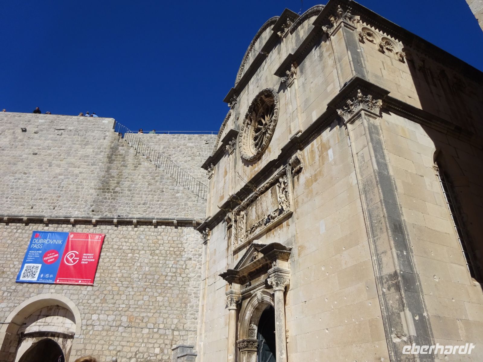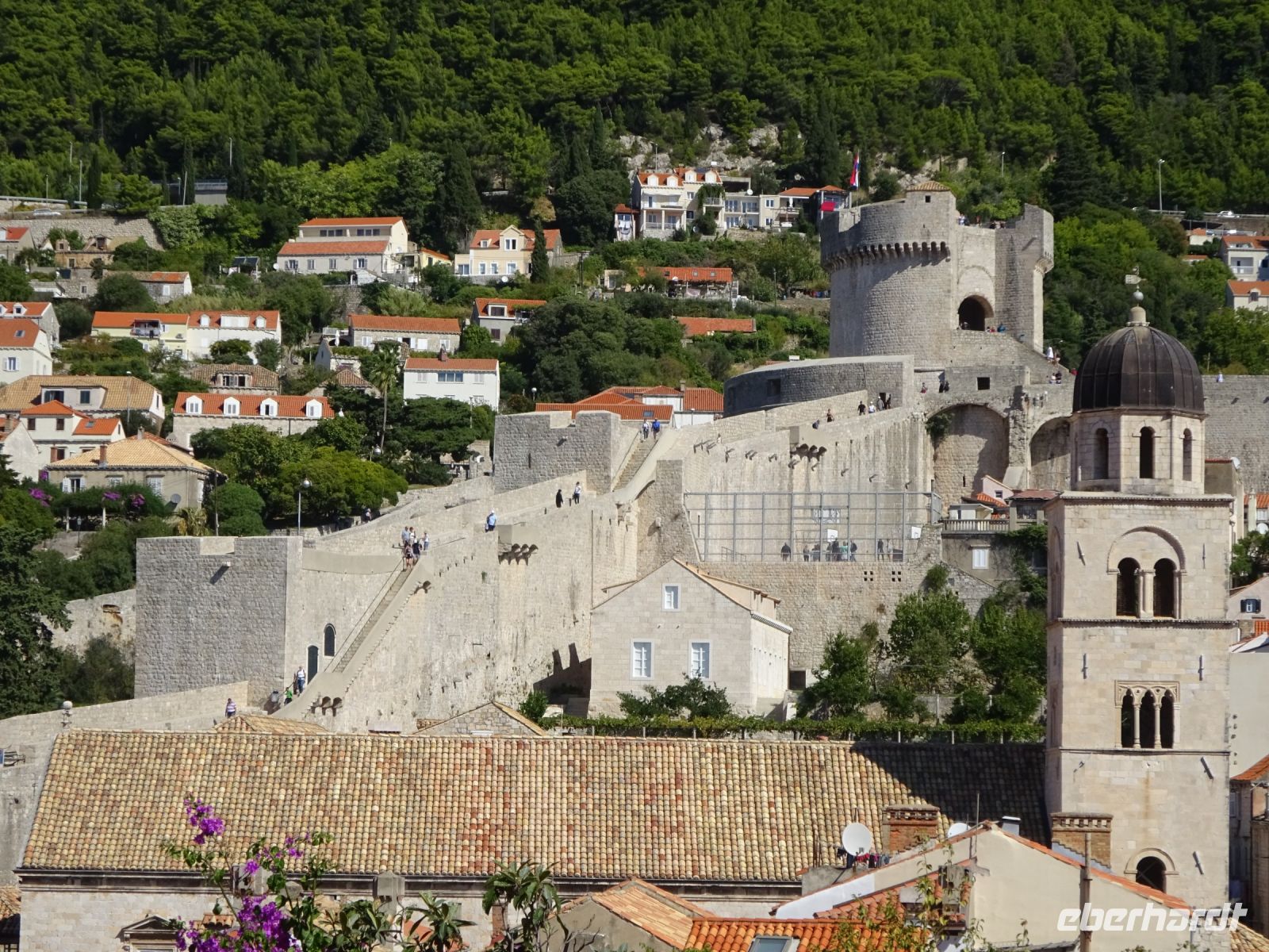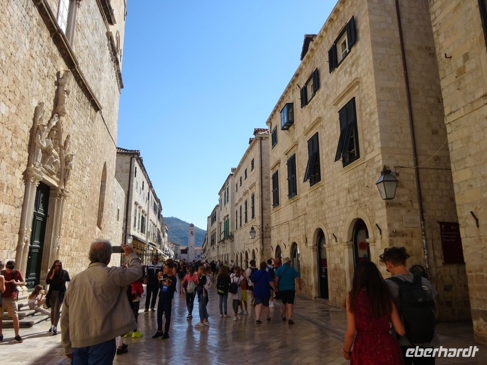 Heute besuchen wir Dubrovnik, auch „Perle der Adria“ genannt. Und auch Dubrovnik steht unter dem Schutz der UNESCO. Die Stadt ist ein großartiges Ensemble aus erhaltener Stadtmauer mit zahlreichen Türmen, aus Kirchen, Klöstern und weltlichen Palästen. Alles zusammen ein einzigartiges Kulturdenkmal. Am Pile-Tor, dem Beginn unseres Stadtrundgangs, treffen wir Indira, unsere örtliche Stadtführerin. Nach kurzer Einführung geht es los in die schöne Altstadt, wo wir natürlich nicht allein sind, denn auch andere Gäste wollen diesen wunderbaren Ort erkunden. Aber Indira führt uns durch einen Mix aus Haupt- und Nebenstraßen, über Plätze und Treppen, erklärt und macht aufmerksam. So lernen wir ganz unterschiedliche Perspektiven kennen und erfahren von Indira auch eine Menge über den Alltag der Menschen hier. Nach diesem Rundgang können wir nun Dubrovnik auf eigene Faust entdecken. Darauf freuen wir uns schon. Wir haben richtig viel Zeit eingeplant. Von Indira gab es genügend Anregungen. Auch hat die Stadt Dubrovnik ein neues Kombi-Ticket für Stadtmauer und eine ganze Reihe Museen eingeführt. Das probieren wir gleich mal aus und sind zufrieden damit. Ganz gleich, ob nun wunderschöne Blicke auf Stadt, Hafen und Meer von der wehrhaften Stadtmauer aus oder aber Besichtigungen in Kirchen und Museen oder einfach eine Kaffee-, Eis- oder Snack-Pause in einem der zahlreichen Cafés,. alle kommen auf ihre Kosten und sind voller Eindrücke pünktlich am Treffpunkt für die Rückfahrt. Und wir haben ja heute noch einen weiteren Programmpunkt auf dem Plan, nämlich das historische Ston, eines der schönsten Beispiele einer befestigten Stadt. Hier sehen wir die längste Verteidigungsmauer Europas. Zahlreiche Türme, ein Kastell und zwei Bastionen sicherten früher die fünf Kilometer lange Mauer, die angelegt wurde, um die Salinen von Ston vor Überfällen zu schützen. Diese Salinen gibt es heute noch. Nach einem kleinen Spaziergang durch die Ortsmitte verlassen wir den Ort. Nun warten Hotel und Abendessen in Neum.