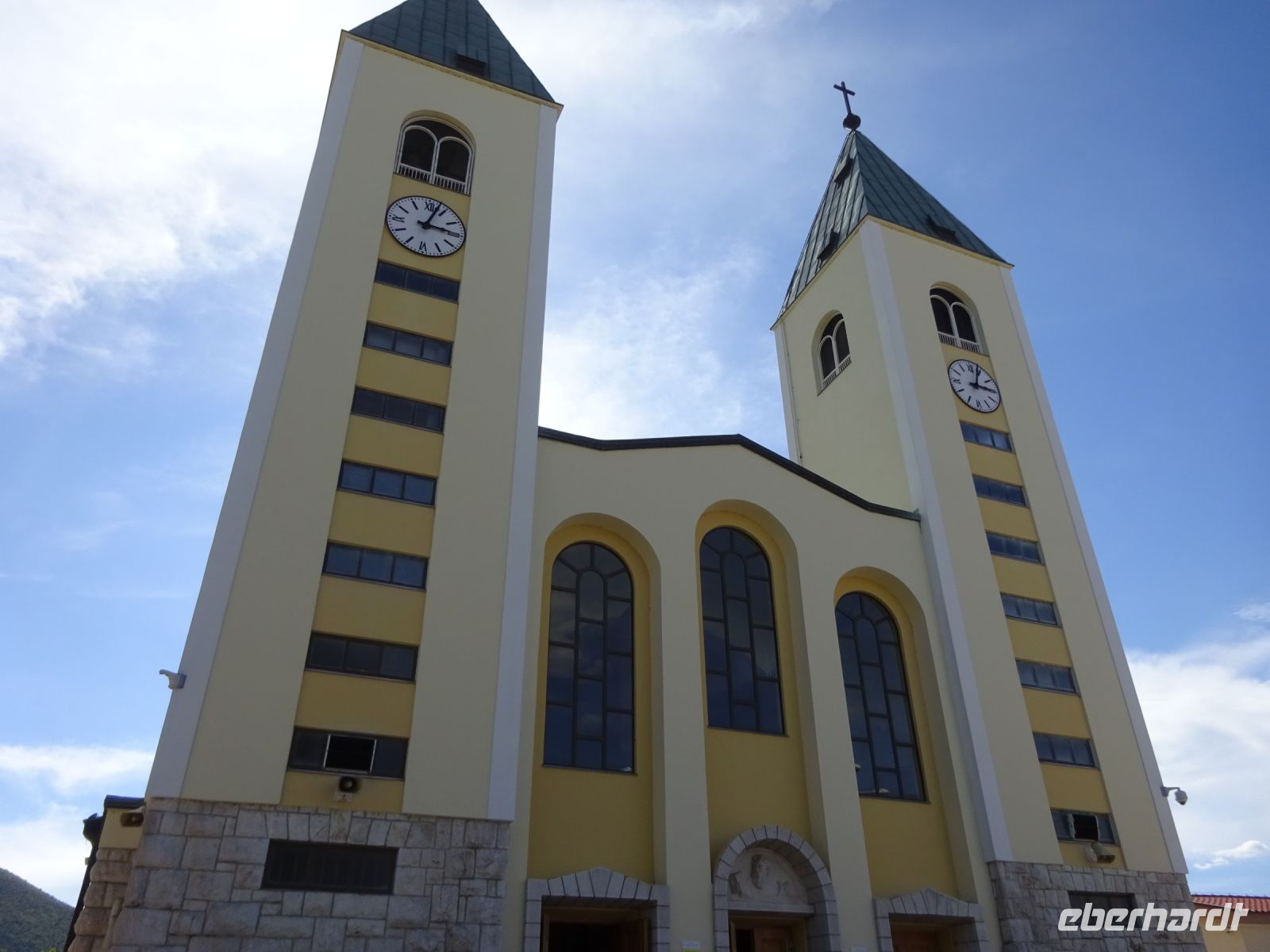 Heute steht die Stadt Mostar, die wohl bekannteste Stadt Bosnien-Herzegowinas auf unserem Programm. Schon die Fahrt dorthin ist spannend, denn wir nehmen eine Route, die etwas abseits der Hauptstraßen ist, durch besonders schöne Landschaft führt, kürzer ist und uns außerdem zwei Grenzübergänge erspart. So gewinnen wir mehr Zeit, die wir in Mostar gut nutzen werden. Unsere örtliche Stadtführerin Almira treffen wir am Parkplatz beim Franziskanerkloster. Der Kirchturm dort wird uns auch den Rückweg zum Bus weisen, denn es ist der höchste Turm der Stadt. Der Name Mostar heißt übrigens Brückenwächter. Das Wahrzeichen Mostars ist die osmanische Brücke „Stari Most“, übersetzt „Alte Brücke“. Diese Brücke überspannt die Neretva. Im Krieg zerstört, wurde sie wieder aufgebaut. Unser Busfahrer Zoran zeigte uns unterwegs den Steinbruch, aus dem die Steine stammen, auch diejenigen für den Wiederaufbau der Brücke, denn das Ziel war, alles wieder nach dem ursprünglichen Vorbild zu errichten, was auch gelungen ist. Die Brücke und die Altstadt von Mostar gehören zum UNESCO-Weltkulturerbe. Almira gibt uns beim Rundgang einen guten Einblick in Geschichte und Gegenwart der Stadt. Wir fragen auch immer wieder, auch zu aktuellen Themen. An vielen Sehenswürdigkeiten kommen wir vorbei, so an der Gerbermoschee und am Hamam, dem türkischen Bad, an der Machmed Pascha Moschee, am Türkischen Haus mit dem Museum. Für die anschließende Freizeit haben wir schon viele Anregungen bekommen, die wir gern aufgreifen. Auch die Geschäfte mit bunten und teils exotischen Souvenirs ziehen uns magisch an, ebenso die Cafés und Bistros. Nach ausreichend Gelegenheit, alles im Foto festhalten zu können, treffen wir uns wieder am Parkplatz beim Franziskanerkloster. Unser Programm sieht für den heutigen Tag noch einen kurzen Aufenthalt in Medjugorje vor. Das heißt übersetzt „Ort zwischen den Gebirgen“, was auch der Realität entspricht. Medjugorje ist einer der bekanntesten und meistbesuchten Wallfahrtsorte der Region.