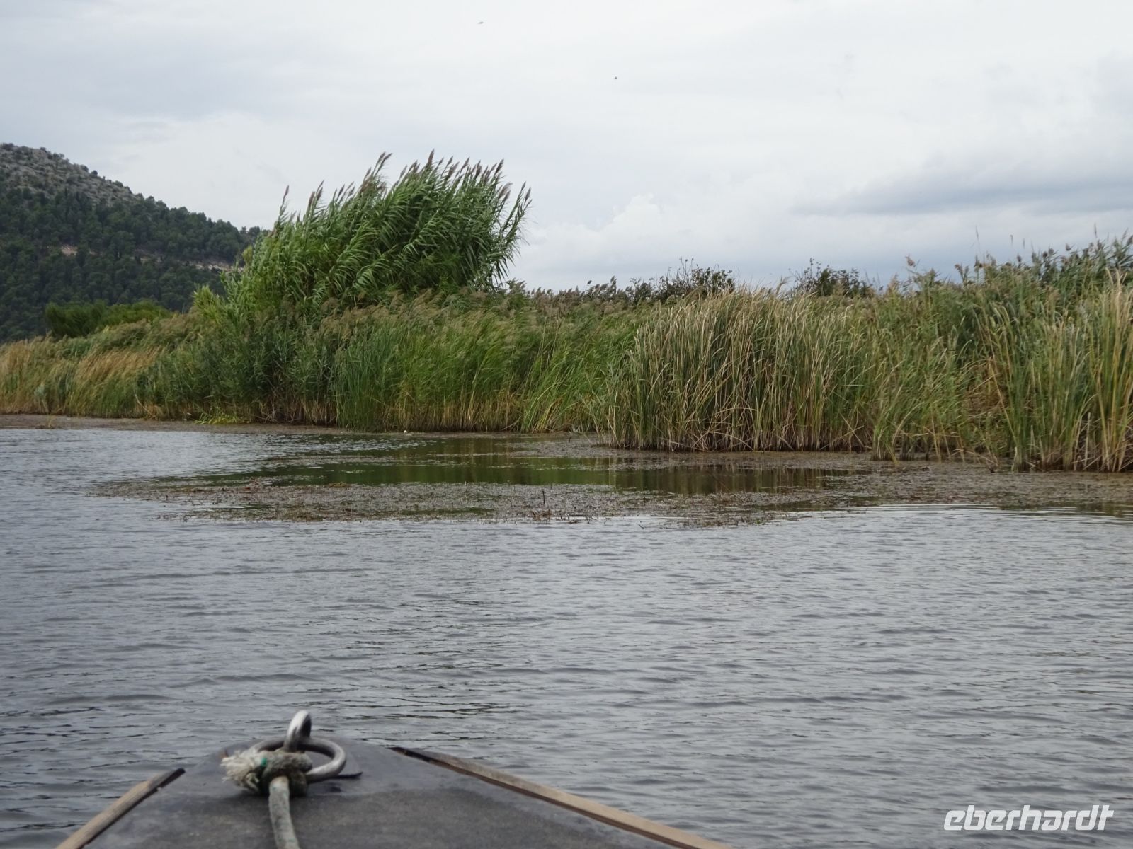 Heute nehmen wir Abschied vom schönen und lieb gewonnenen Grand Hotel Neum. Wir brechen auf in Richtung Makarska Riviera. Aber zunächst wartet unterwegs noch eine Fahrt mit einem traditionellen Wasserboot durch einen Seitenarm und durch Kanäle der Neretva auf uns. Mit dem Wetter haben wir mal wieder Glück. Etwas Regen, den die Natur hier auch braucht, soll erst am Nachmittag kommen. Da sitzen wir sowieso im Bus. Da hier gerade Mandarinenernte ist, werden wir vor der Bootspartie noch zum Mandarinenpflücken zu einer großen Plantage gebracht. Na, da lassen wir uns nicht lange bitten. Mit gut gefüllten Tüten zurück von der Plantage, bestiegen wir ein Boot, fuhren durch die Arme des Neretva-Deltas, wo uns große mit Mandarinen beladene Boote begegneten. Manche Plantagen erreicht man eben vom Wasser aus bequemer. Nach etwa einstündiger Bootsfahrt ging es dann zum Mittagessen. In der Villa Neretva war schon alles vorbereitet. Wir ließen uns regionales Essen und lokalen Wein schmecken, kauften Feigen und Marmelade, auch Granatäpfel. Mandarinen hatten wir ja schon selber ausreichend gepflückt. Satt und zufrieden stiegen wir in unseren Bus, machten unterwegs noch einen Fotostopp an den Bacinsker Seen. Weiter ging es entlang der herrlichen Makarska Riviera zum Ferienort Podgora, wo wir im Hotel Medora Auri unseren Urlaub fortsetzen konnten. Hier sind wir in einem schönen Badeort, direkt an der Adria. Ein beheizter Außenpool wartet schon.