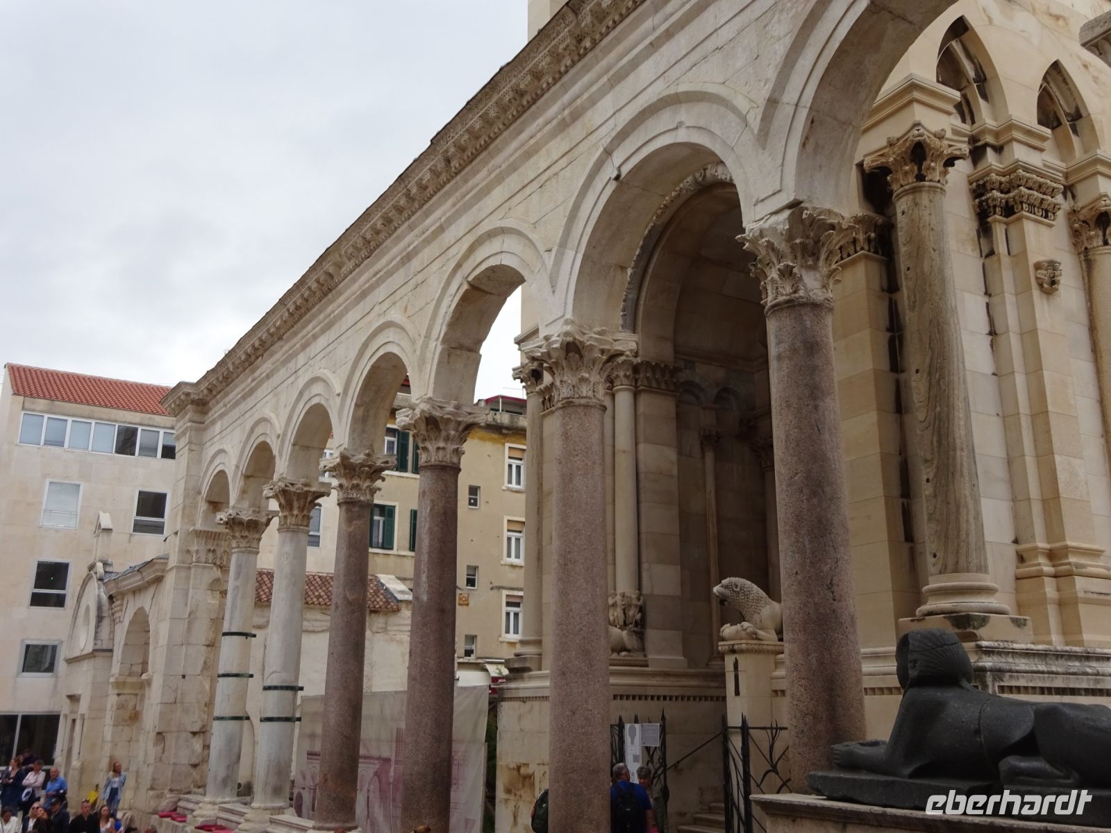 Aber auch für uns bleibt die Zeit leider nicht stehen. Der Tag der Abreise ist da. Nach dem Frühstück holt uns unser Bus ab, bringt uns über die Küstenstraße nach Split, wo ein Stadtrundgang auf uns wartet. Unsere örtliche Stadtführerin Maria ist schon zur Stelle. Wir besichtigen den zum UNESCO-Weltkulturerbe gehörenden Diokletianpalast, eine wirkliche Berühmtheit, denn dies ist das wertvollste bis heute erhaltene Bauwerk des 3./4. Jh. Hier zeigen sich die griechischen Einflüsse auf die Baukunst in römischer Zeit. Maria macht uns auf zahlreiche Details aufmerksam, verknüpft immer wieder Architektur und Geschichte. Wir sind einfach nur begeistert von dieser Altstadt und der riesigen Palastanlage. Natürlich sehen wir auch die Domnius-Kathedrale, das ehemalige Mausoleum von Kaiser Diokletian, den Jupiter-Tempel und das Goldene Tor. Wir lernen den Nationalplatz und den Platz der Republik kennen. Nach dem Stadtrundgang bringt uns der Bus zum Flughafen, wo wir uns von unserem netten Busfahrer verabschieden. Nun kommen die üblichen Flug-Reise-Formalitäten, die wir gemeinsam erledigen. Wir verabschieden uns von unseren 3 Gästen, die einen Flug nach Stuttgart haben. Wir anderen fliegen wieder über Wien nach Berlin, sehen uns also noch ein Weilchen und kommen dann in Berlin an, wo wir uns verabschieden.