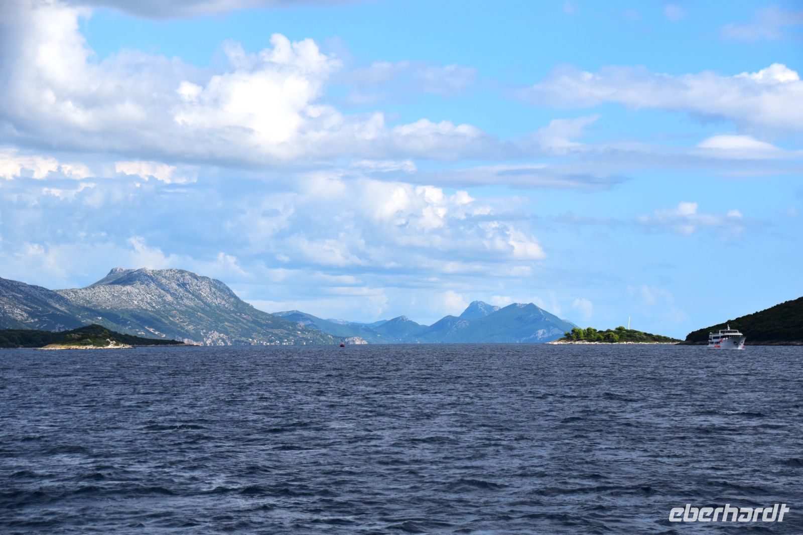 Als wir Orebic erreichen, öffnet sich der Blick auf die Küstenlandschaft und die Inseln Korcula und Lastowo. Das für den Mittag angesagte schöne Wetter ist auch da und so setzen wir gut gelaunt mit der neuen Personenfähre über.