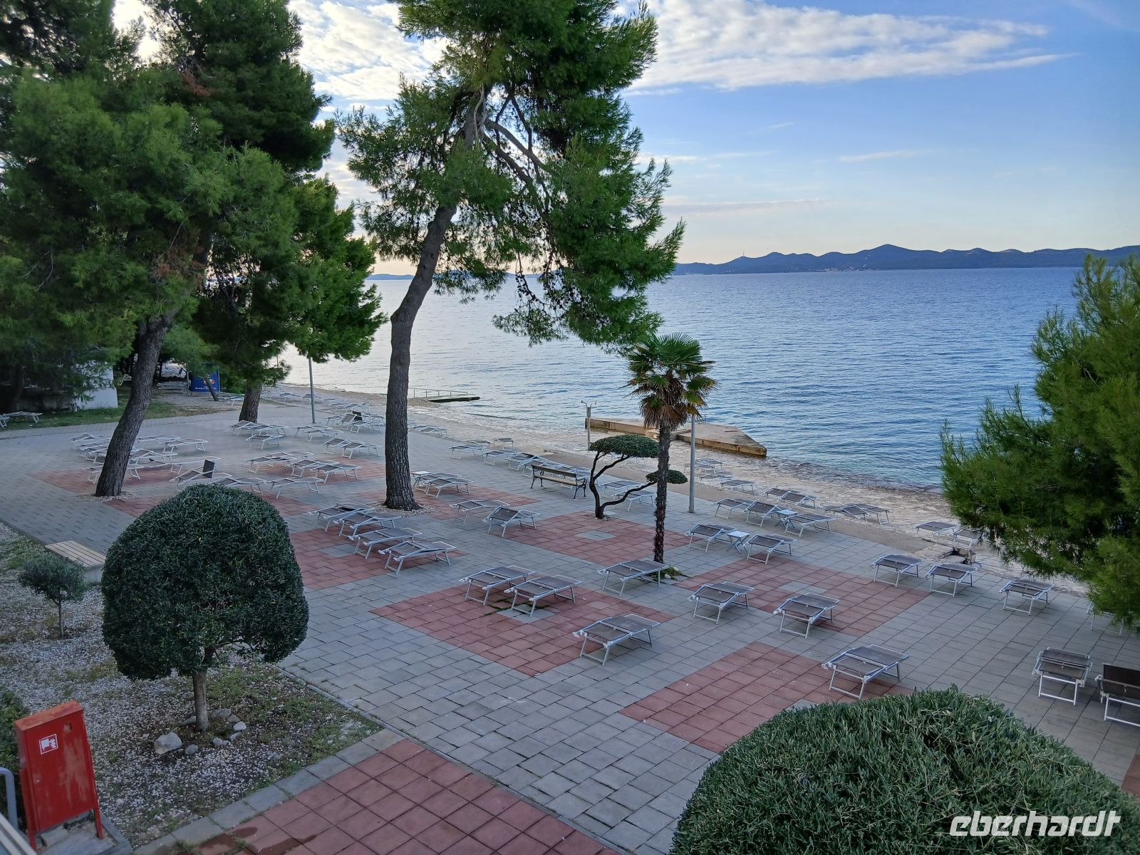 Nach einem angenehmen Flug nach Zadar erwartete uns am Flughafen bereits unser freundlicher Chauffeur, der uns sicher nach Petrčane brachte. Während wir die kurze Fahrt entlang der dalmatinischen Küste genossen, öffnete sich der Blick immer wieder auf das glitzernde Blau der Adria. Angekommen im Hotel Pinija fühlten wir uns sofort willkommen. Die Anlage liegt eingebettet in ein schattiges Pinienwäldchen, direkt am Meer – der Duft der Bäume mischte sich mit der salzigen Brise des Meeres. Nachdem wir unsere Zimmer bezogen hatten, blieb Zeit für einen kleinen Spaziergang zum hoteleigenen Strand. Dort glitzerte das Wasser golden im Licht der untergehenden Sonne und manche von uns setzten sich einfach auf die Steine und lauschten dem sanften Rauschen der Wellen. Beim gemeinsamen Abendessen im Hotel genossen wir die erste Kostprobe der kroatischen Küche – frisch gegrillter Fisch, Olivenöl und ein Glas regionalen Weins stimmten uns auf die kommenden Tage ein.