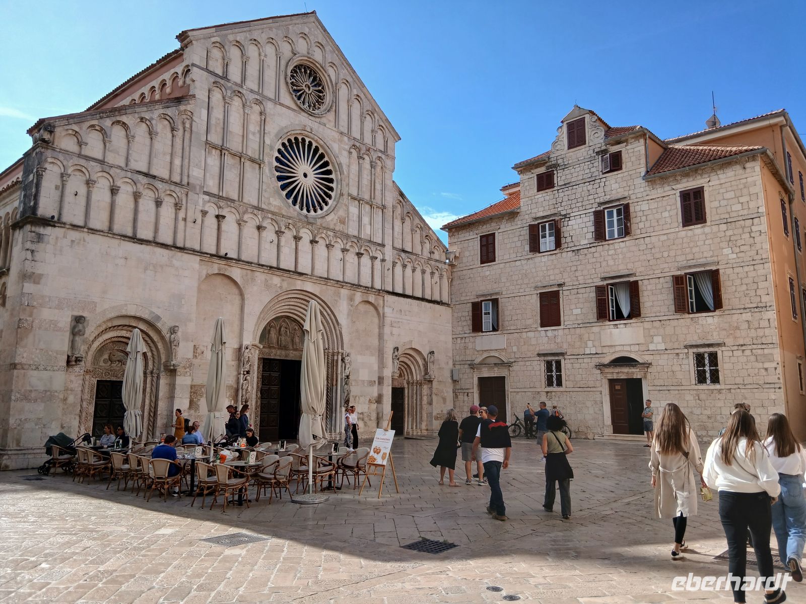 Nach dem Frühstück machten wir uns auf den Weg in die Altstadt von Zadar. Die Geschichte war bei unserem Rundgang förmlich spürbar: römische Mauern, das alte Forum, die wuchtige Donatuskirche und die stolze Kathedrale der Heiligen Anastasia. Besonders beeindruckte uns die Mischung aus Historie und Moderne. Direkt am Meer ließen wir uns von der berühmten Meeresorgel verzaubern – die Klänge, die die Wellen hervorbrachten, wirkten wie eine mystische Melodie, unvorhersehbar und doch harmonisch. Manche von uns schlossen einfach die Augen, um dieses Erlebnis in sich aufzunehmen.