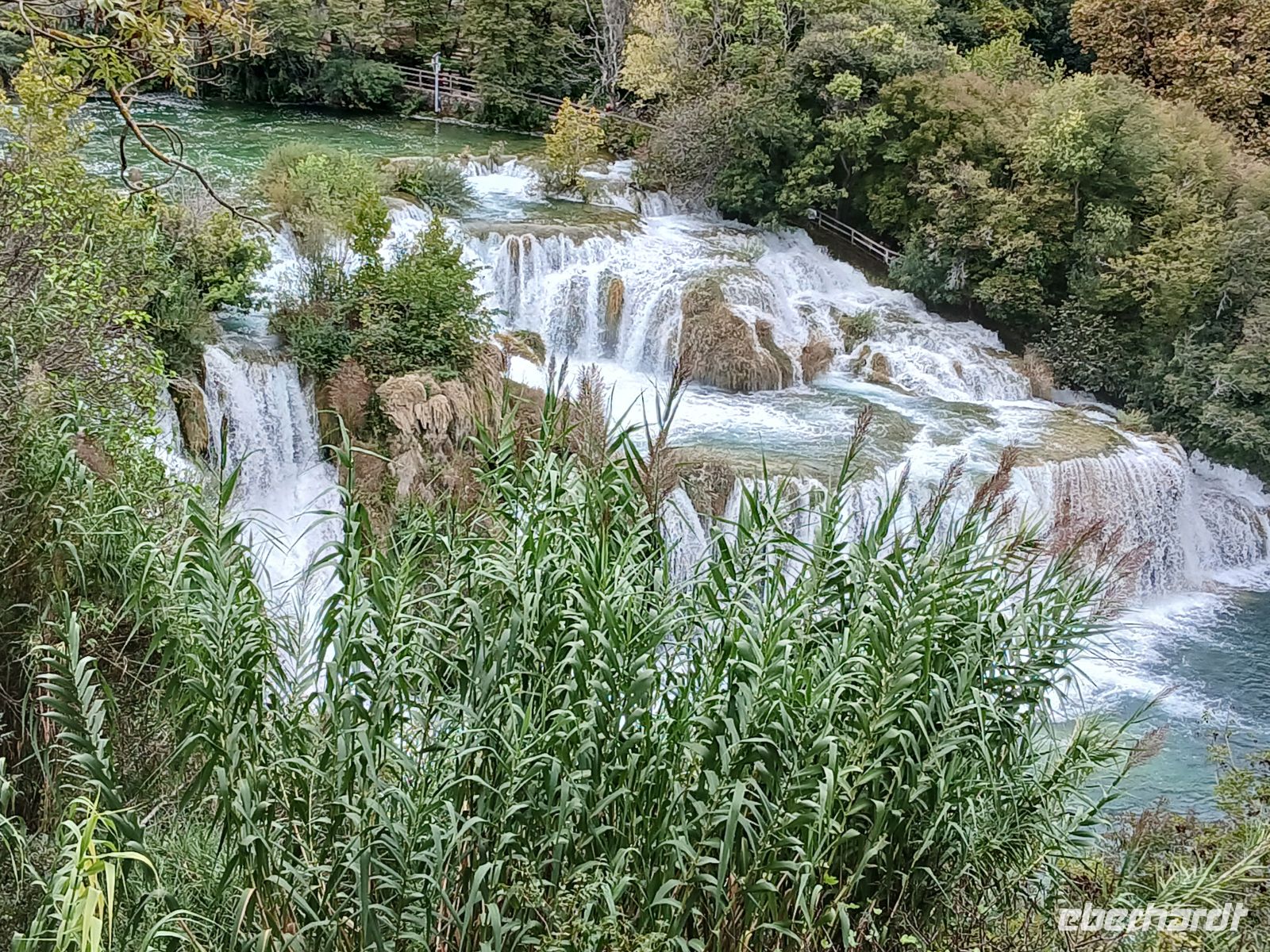Heute wartete ein Naturwunder auf uns: der Krka-Nationalpark. Schon auf dem Weg hörten wir das ferne Rauschen, das uns bald in voller Wucht umfing. Die Kaskaden des Skradinski Buk stürzten über viele Stufen in die Tiefe, und wir wanderten auf Holzstegen ganz nah am Wasser entlang. Immer wieder öffneten sich neue Perspektiven: grüne Moose, die im Wasser glänzten, kleine Inselchen, auf denen Vögel rasteten, und das ständige Donnern des Wassers, das uns begleitete. Es war, als ob wir mitten in ein Gemälde der Natur eingetreten wären.