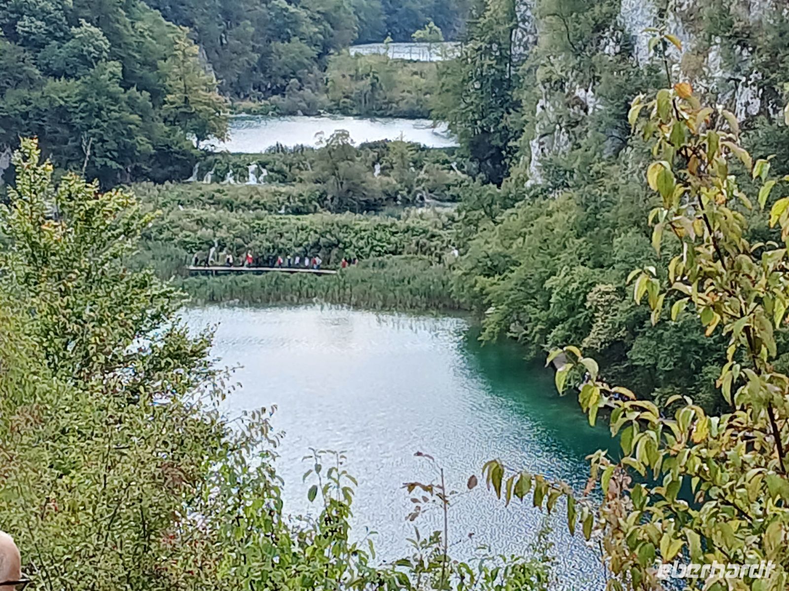 Am Morgen verließen wir die Küste und fuhren hinein ins wilde Hinterland, die Lika. Schon die Fahrt war ein Erlebnis: einsame Ebenen, weite Wälder, und hier und da ein Schäfer mit seiner Herde, als sei die Zeit stehen geblieben. Dann erreichten wir den Nationalpark Plitwitzer Seen – und sofort waren wir verzaubert. Türkisblaue Seen, die durch unzählige Wasserfälle verbunden waren, schimmerten uns entgegen. Auf Stegen spazierten wir direkt über das glasklare Wasser, sahen versunkene Baumstämme, die wie Skulpturen wirkten, und hörten das beständige Plätschern und Tosen.