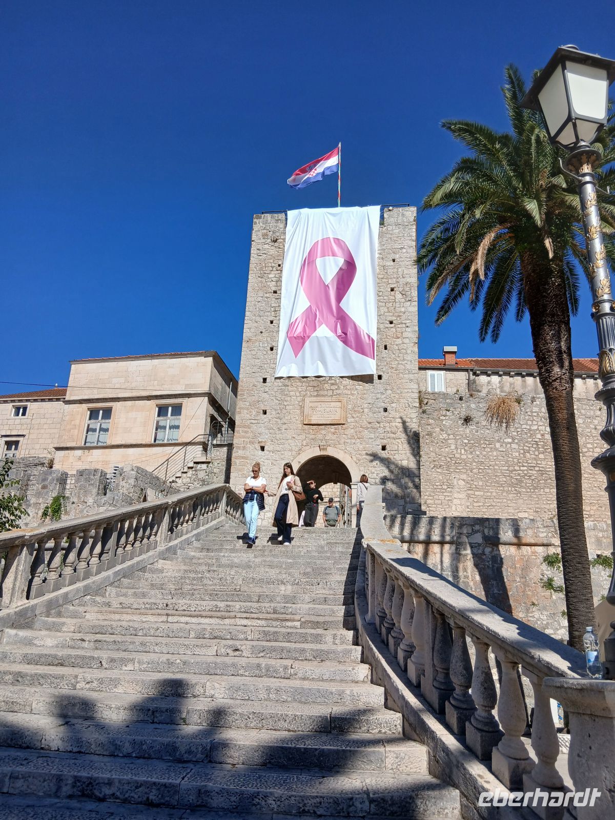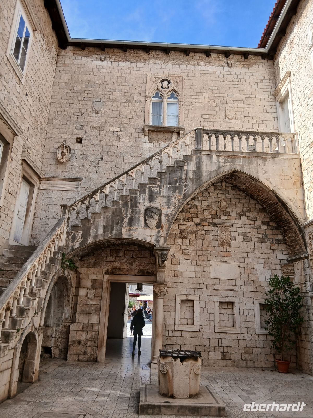 Nach dem Frühstück überquerten wir die moderne Pelješac-Brücke, ein stolzes Bauwerk, das die Halbinsel Pelješac mit dem Festland verbindet. Die Fahrt durch Weinberge und Olivenhaine brachte uns nach Kućište , von wo aus wir die Fähre nach Korčula bestiegen. Schon von Weitem grüßten uns die wehrhaften Mauern und Türme der Altstadt. Innerhalb der Mauern erwartete uns ein Labyrinth aus schmalen Gassen, die immer wieder kleine Plätze freigaben. Bei der Führung lauschten wir Geschichten über Marco Polo, der hier geboren sein soll – und es fühlte sich tatsächlich so an, als atme die Stadt den Geist großer Entdecker.