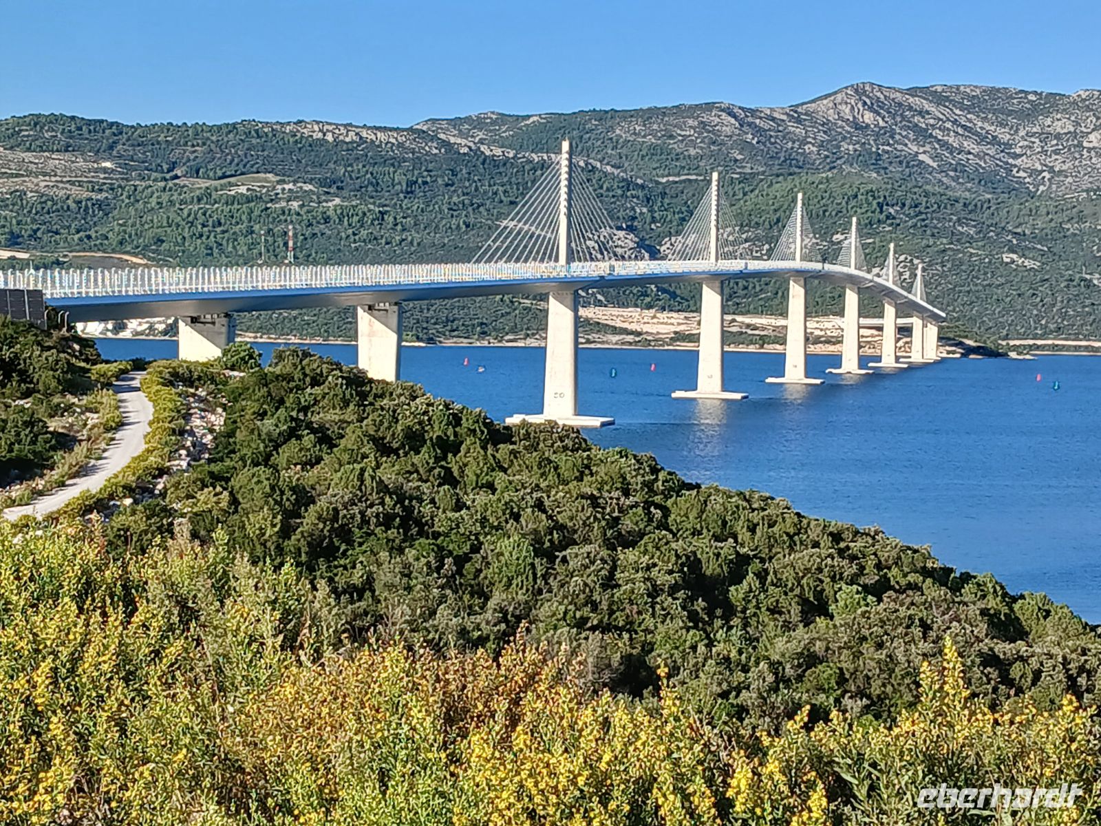 Am Nachmittag brachte uns die Fähre zurück nach Pelješac. Unser Weg führte uns dann nach einem Fotostopp mit Blick auf Korcula und einem weiteren Halt an der imposanten Pelješac-Brücke zurück zu unserem Hotel in Neum, ein sonniger Tag ging zu Ende.
