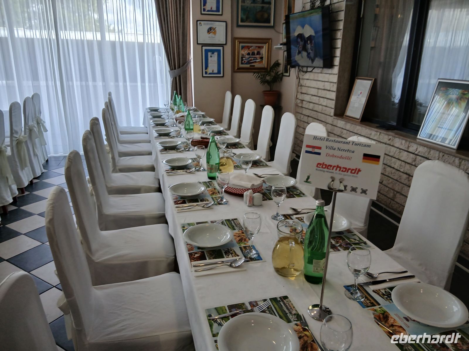 Die Weiterfahrt auf der berühmten Küstenstraße, der „Jadranska Magistrala“, bot spektakuläre Ausblicke: die Makarska Riviera mit ihren Stränden, das mächtige Biokovo-Gebirge im Hintergrund und die vorgelagerten Inseln Brac und Hvar. Am Nachmittag erreichten wir schließlich Neum in Bosnien-Herzegowina. Das Grand Hotel empfing uns mit weitem Blick über die Bucht. Beim Abendessen spürten wir die Vorfreude auf die kommenden Tage – mit Dubrovnik, Korčula und Mostar warteten wahre Höhepunkte auf uns.