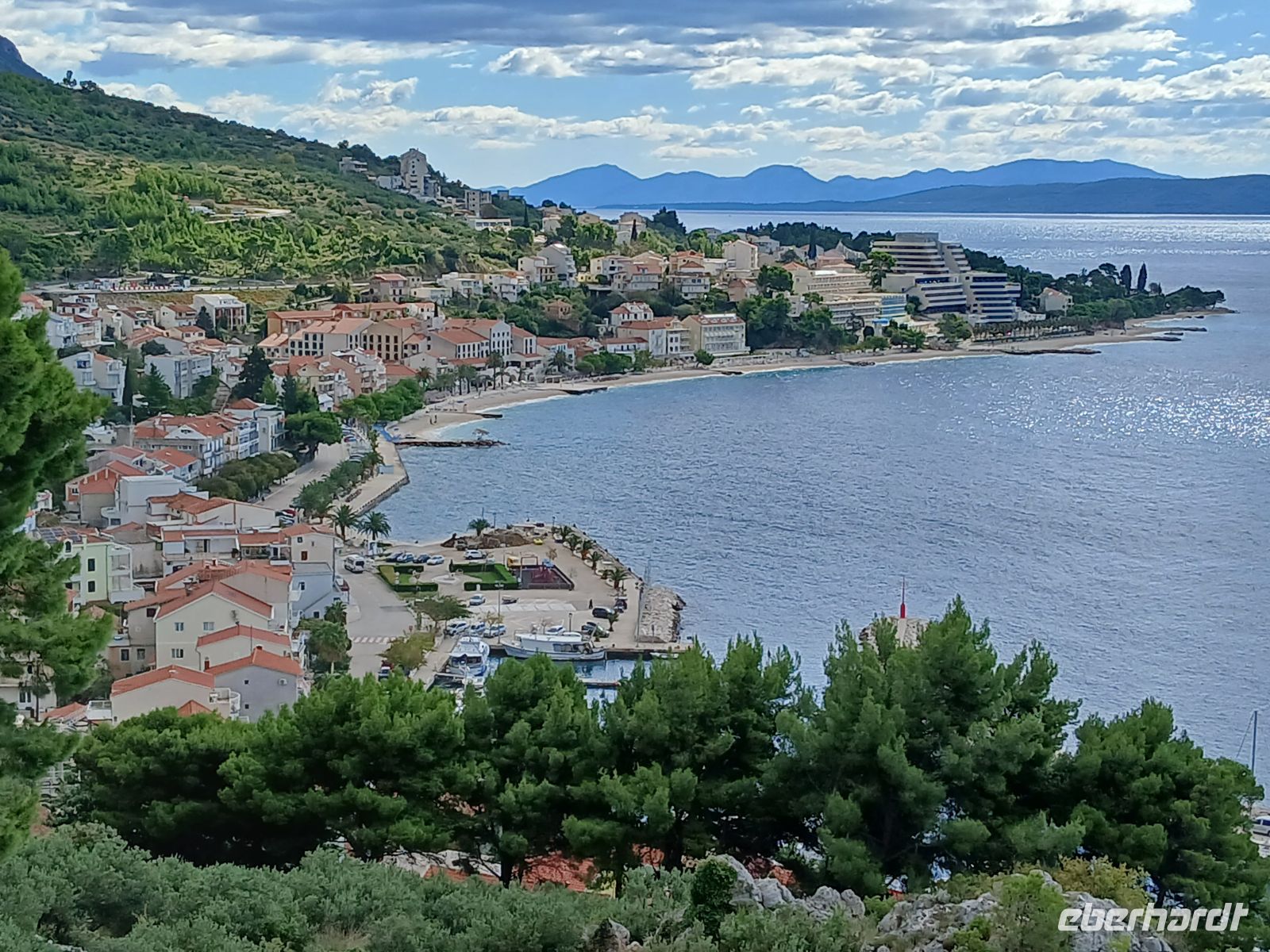 Am frühen Nachmittag führte uns die Küstenstraße weiter zur Makarska Riviera. Unser Ziel war Podgora, wo das Meer zu unseren Füßen glitzerte und hinter dem Ort das Biokovo-Gebirge steil emporragte – eine dramatische, wunderschöne Kulisse für unseren bevorstehenden Badeaufenthalt.