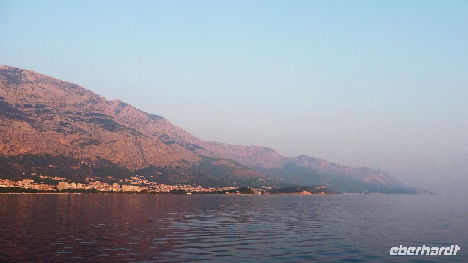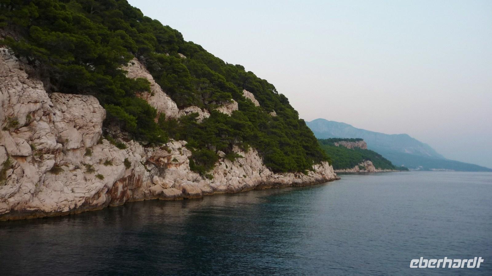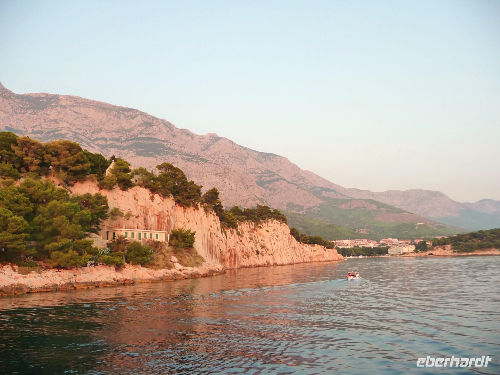 16:15 Uhr Abfahrt, Panoramafahrt entlang Küste von Bra nach Sumartin, von hier hinüber nach Makarska und zurück nach Tuepi;