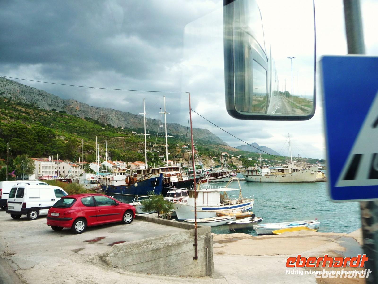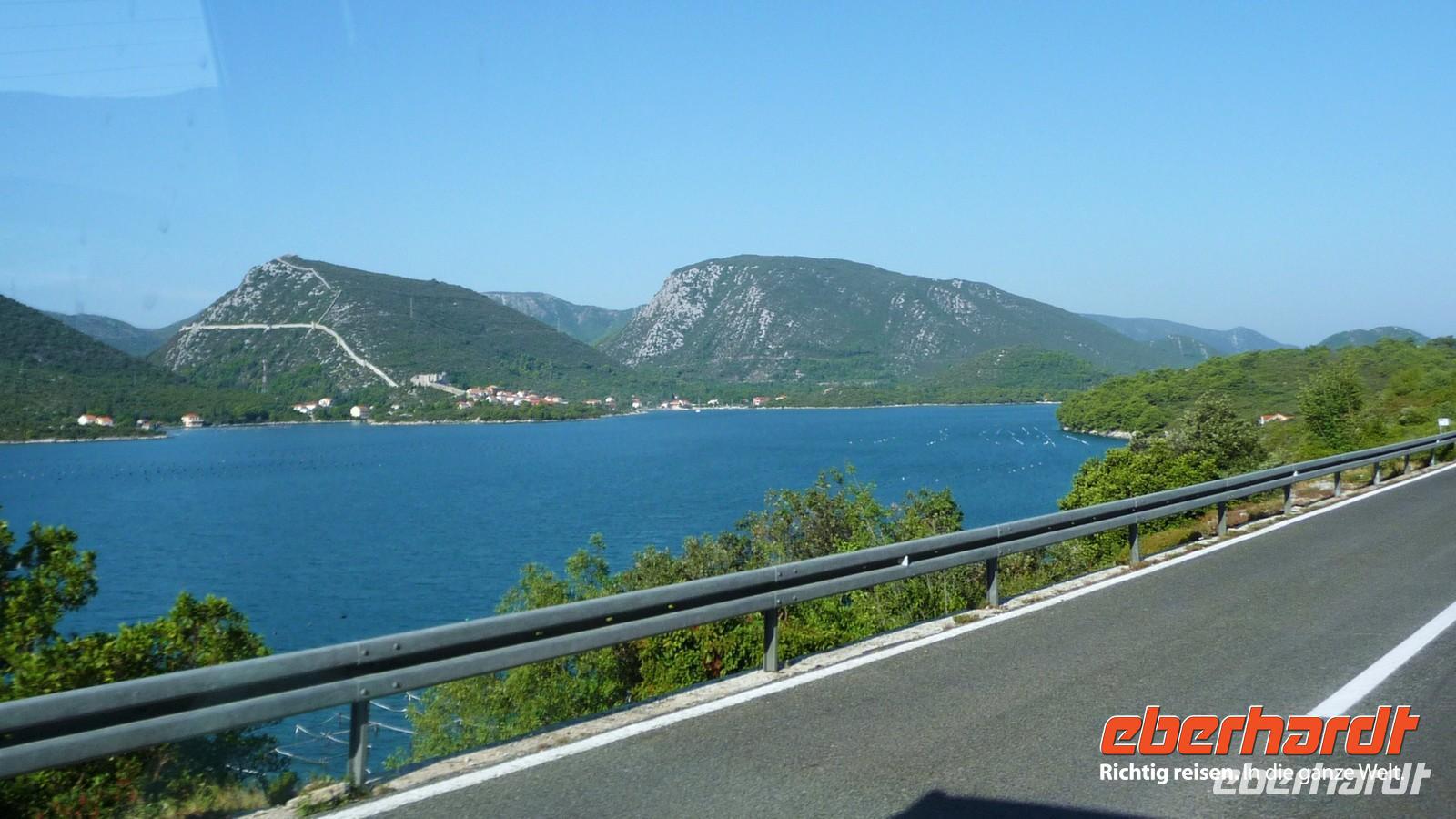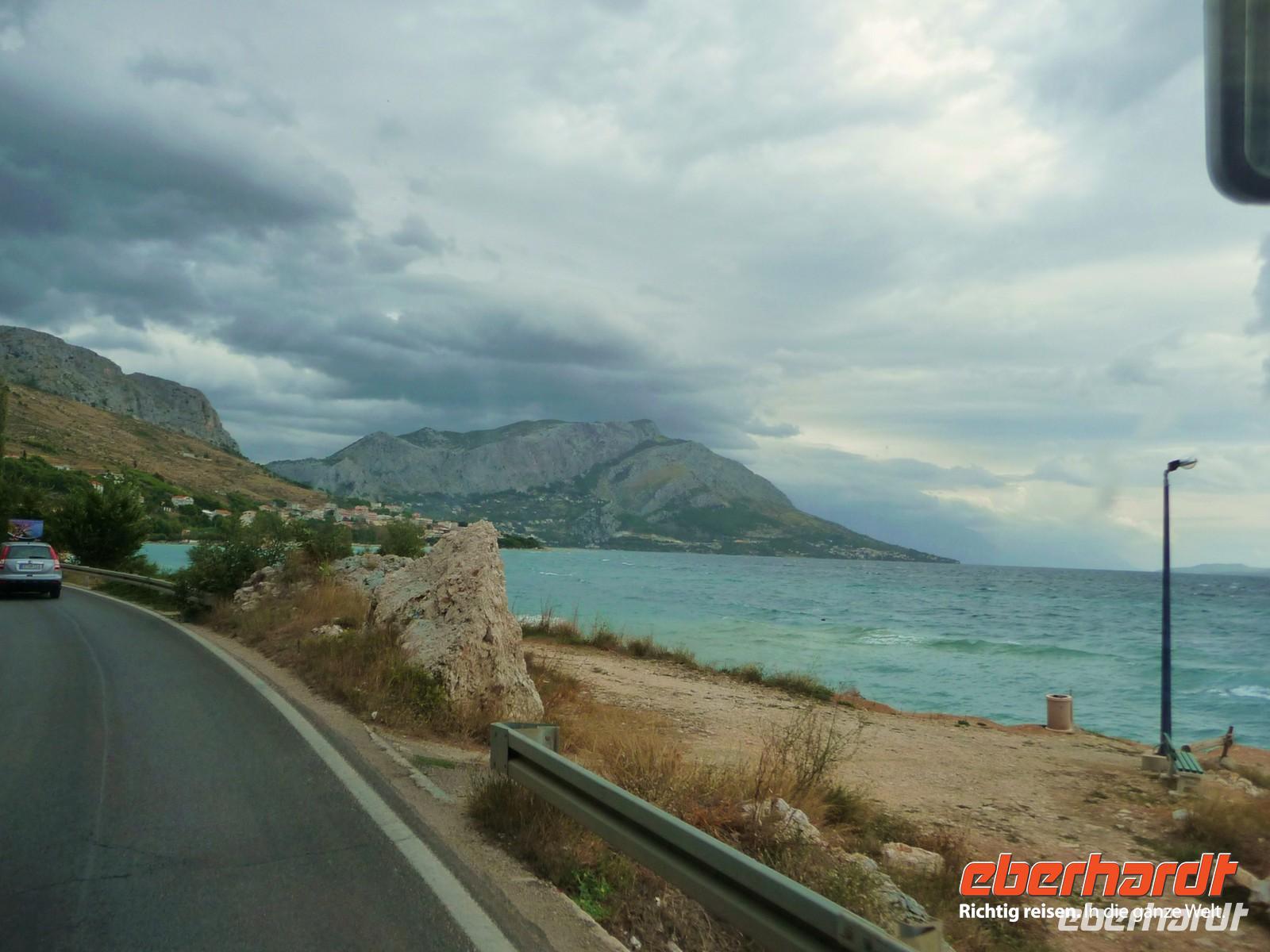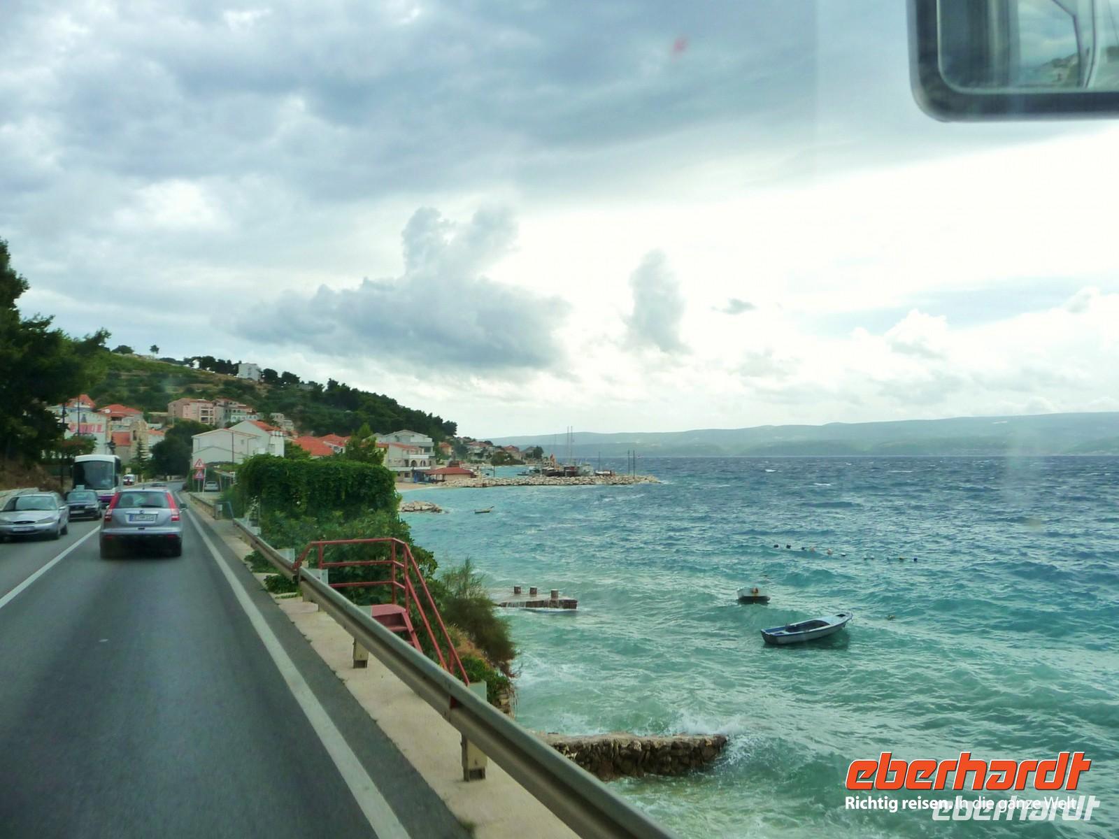 Weiterfahrt entlang der Küstenstraße nach Mlini, über Split nach Babic, hier Fotostopp an Küste und dann Rast an Gaststätte bei auf der rechten Seite;