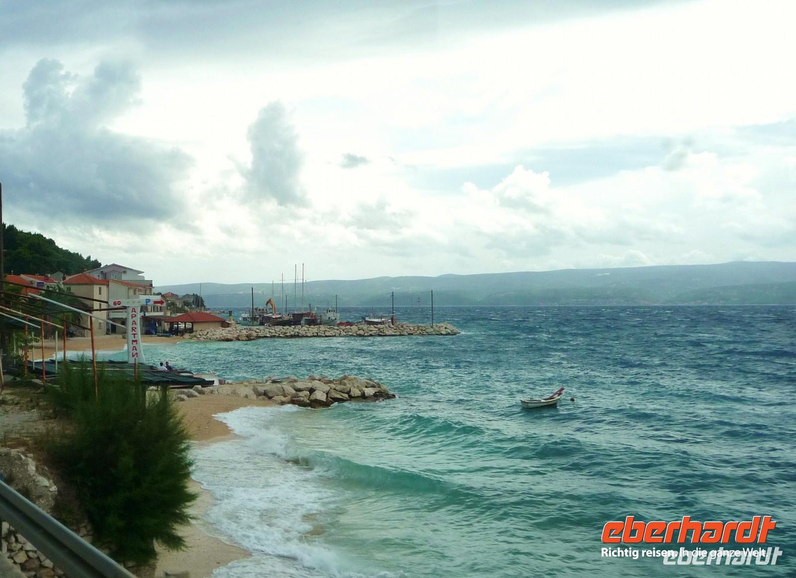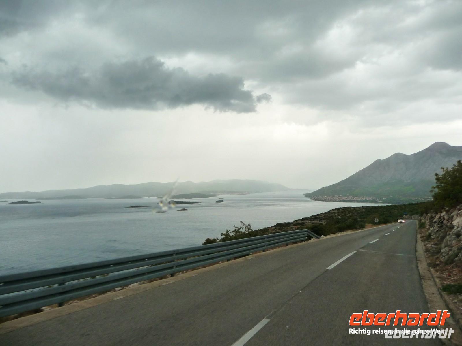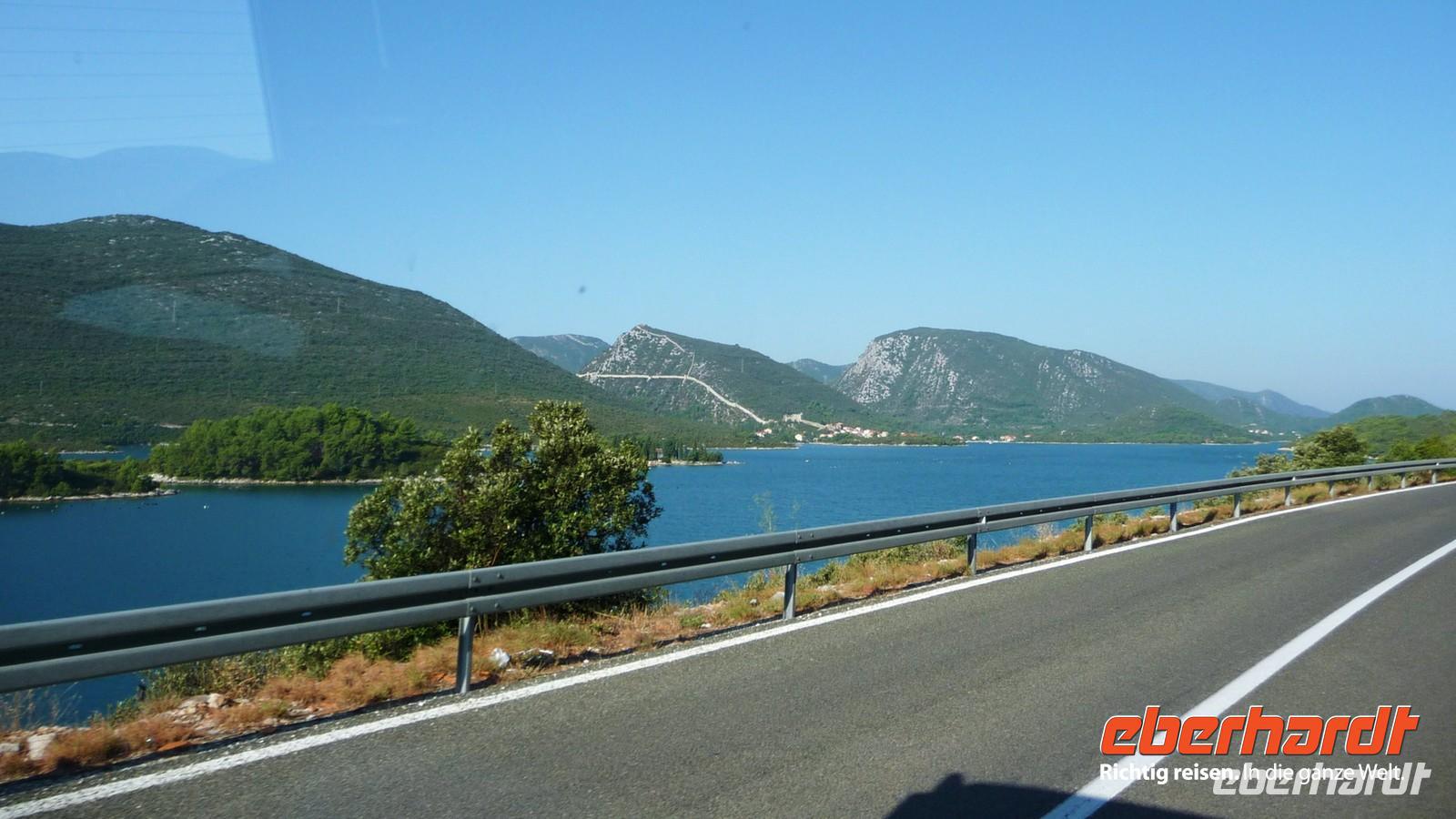Weiterfahrt entlang der Küstenstraße nach Mlini, über Split nach Babic, hier Fotostopp an Küste und dann Rast an Gaststätte bei auf der rechten Seite;