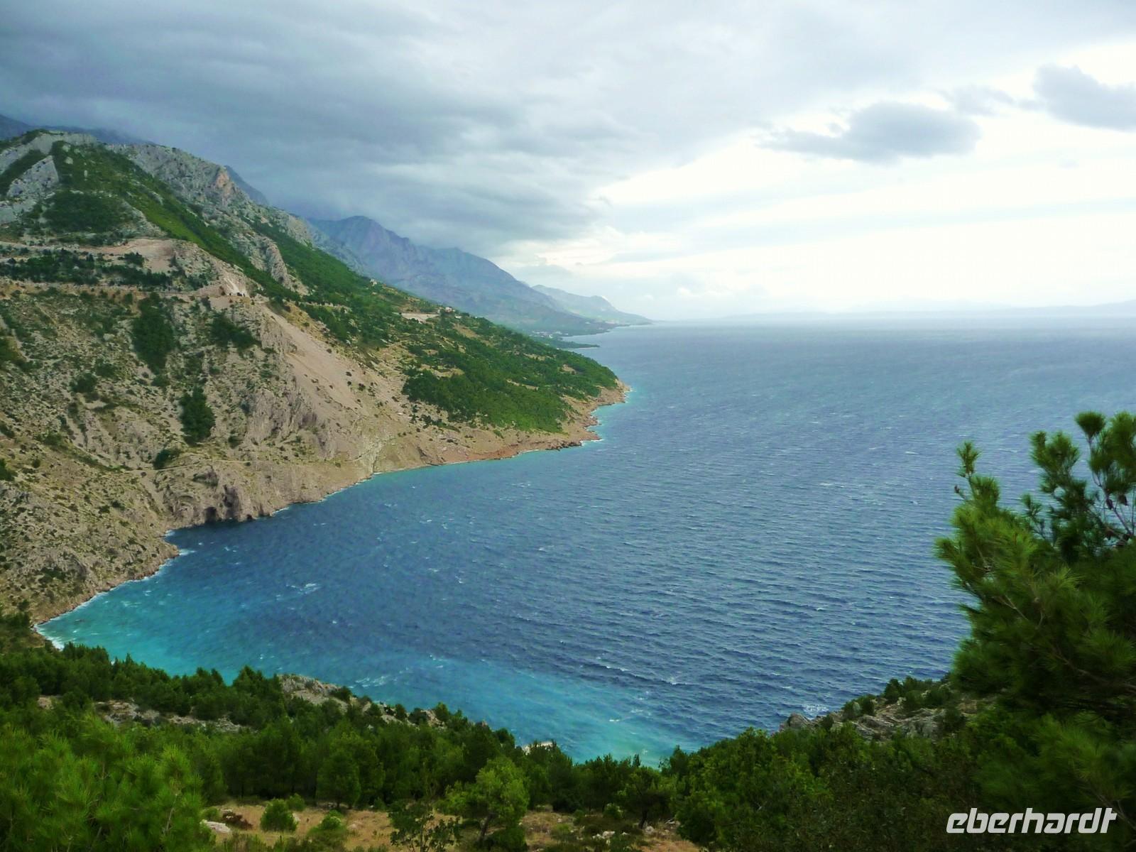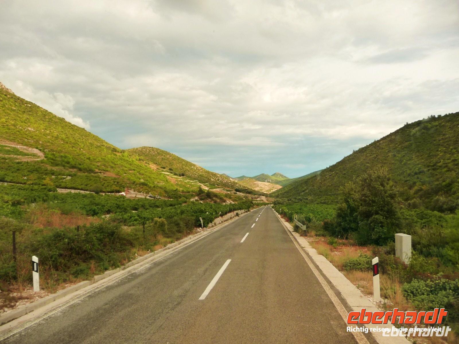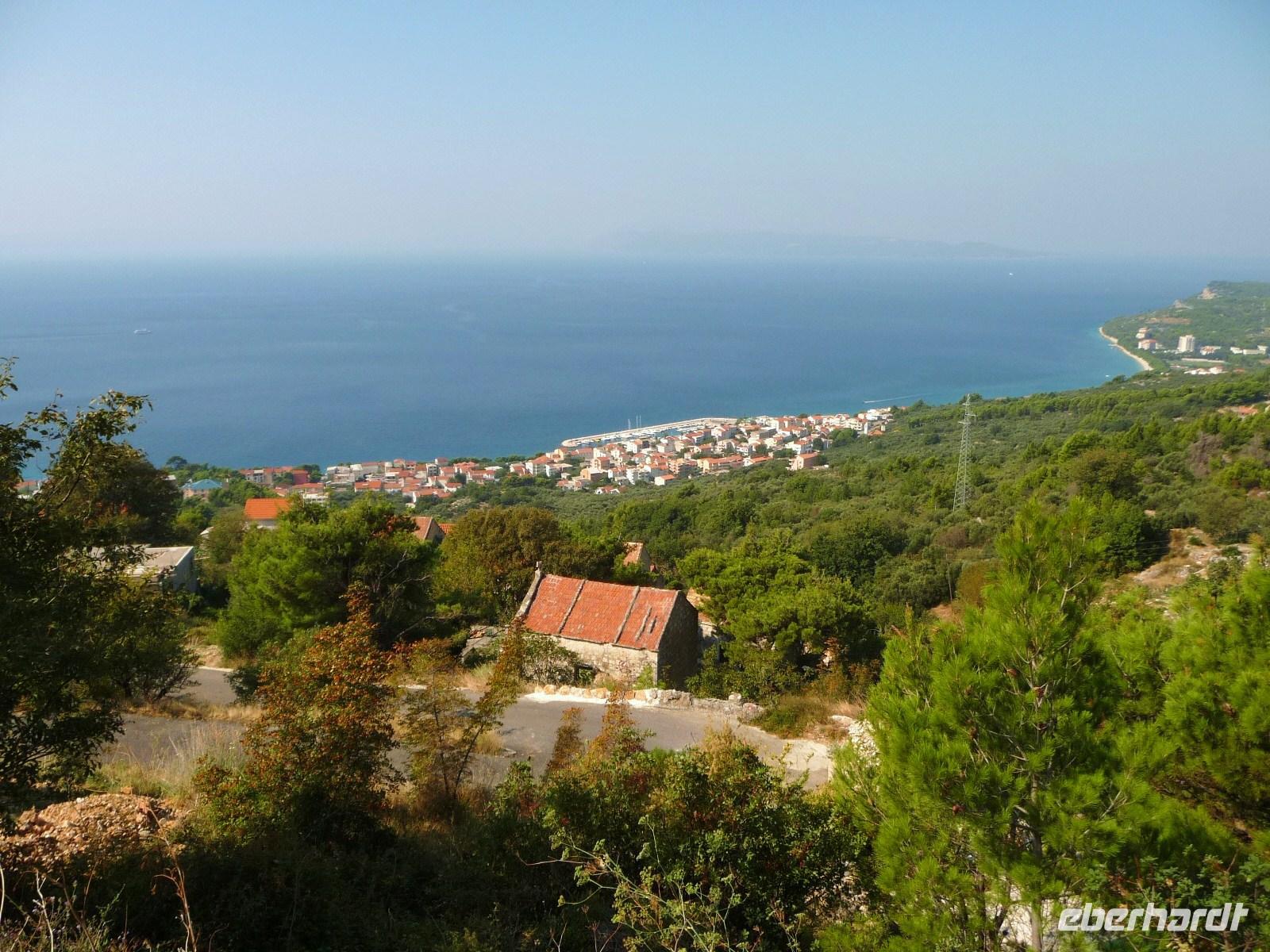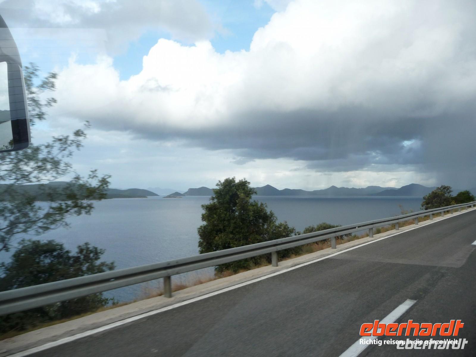 Weiterfahrt entlang der Küstenstraße nach Mlini, über Split nach Babic, hier Fotostopp an Küste und dann Rast an Gaststätte bei auf der rechten Seite;