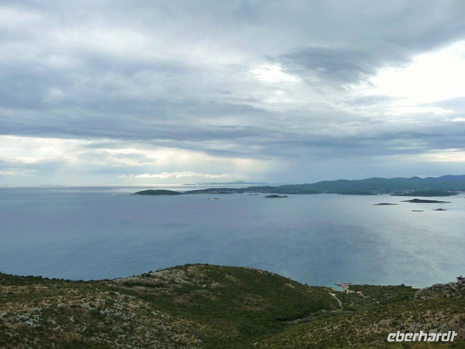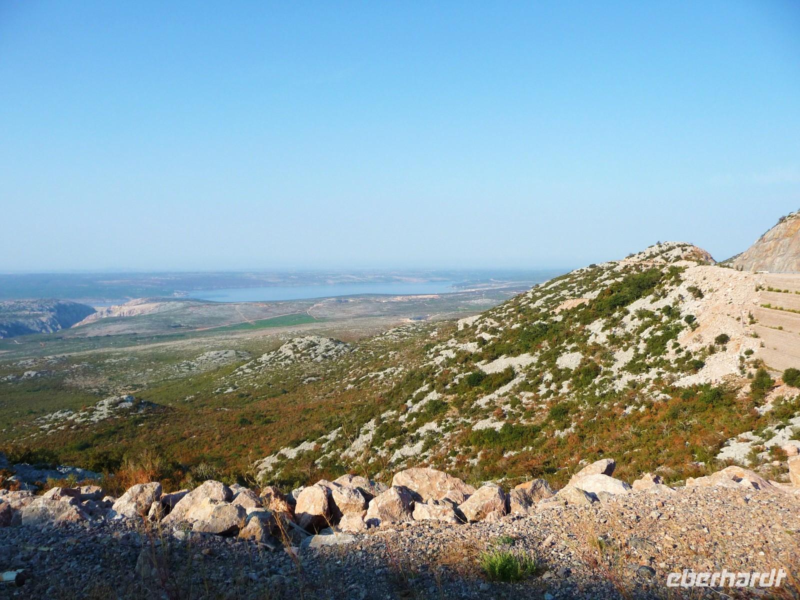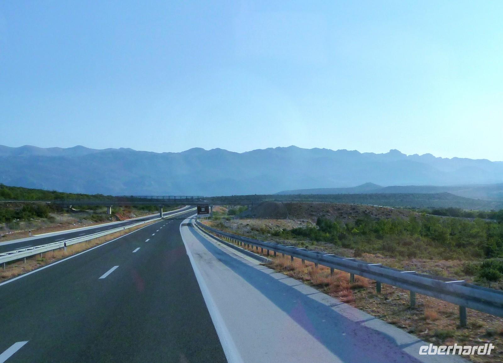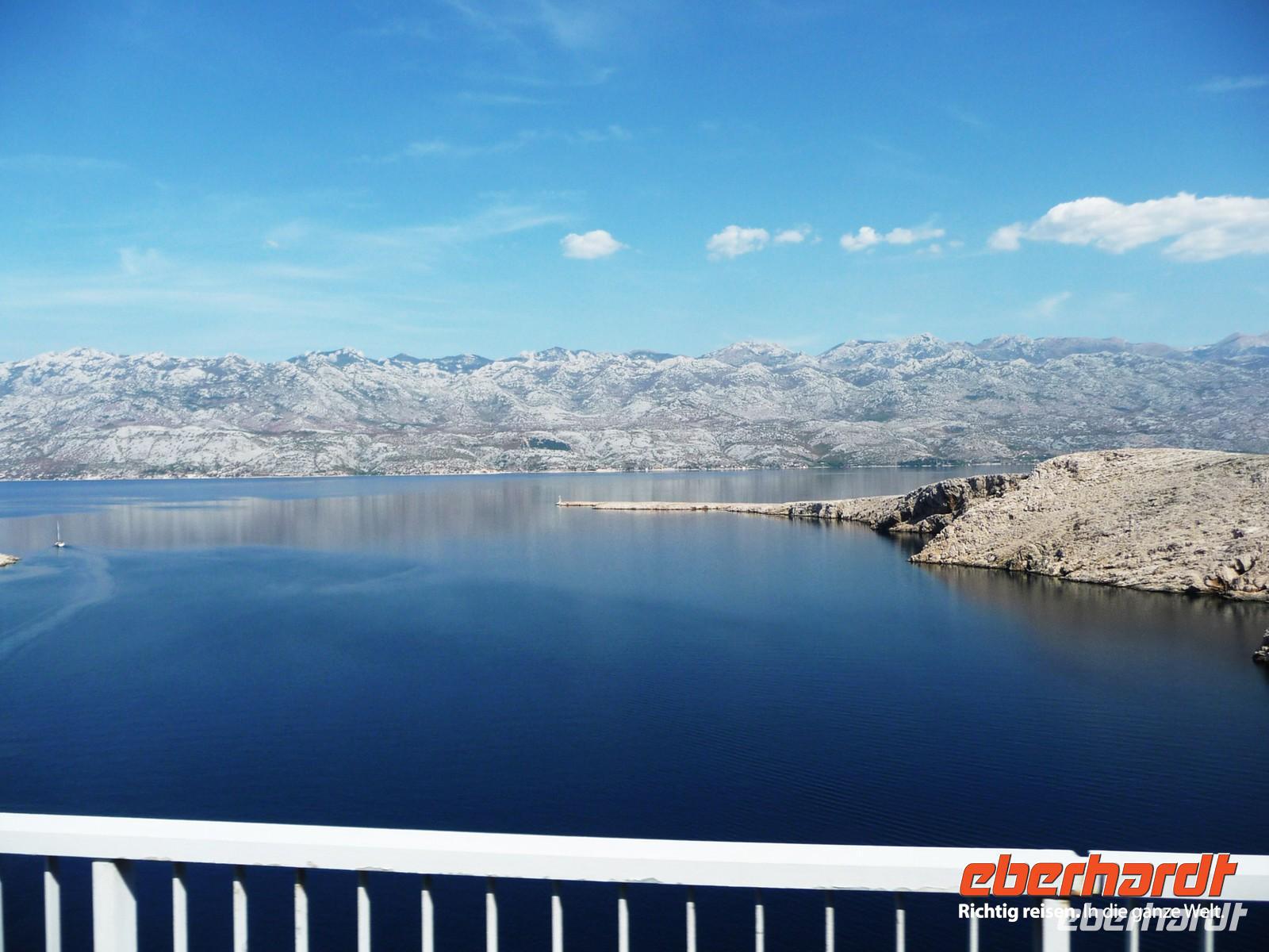 12:30 Uhr Fahrt zur Insel Pag, sehr schöne Fahrt bei guter Sicht zum Velebit-Gebirge;
