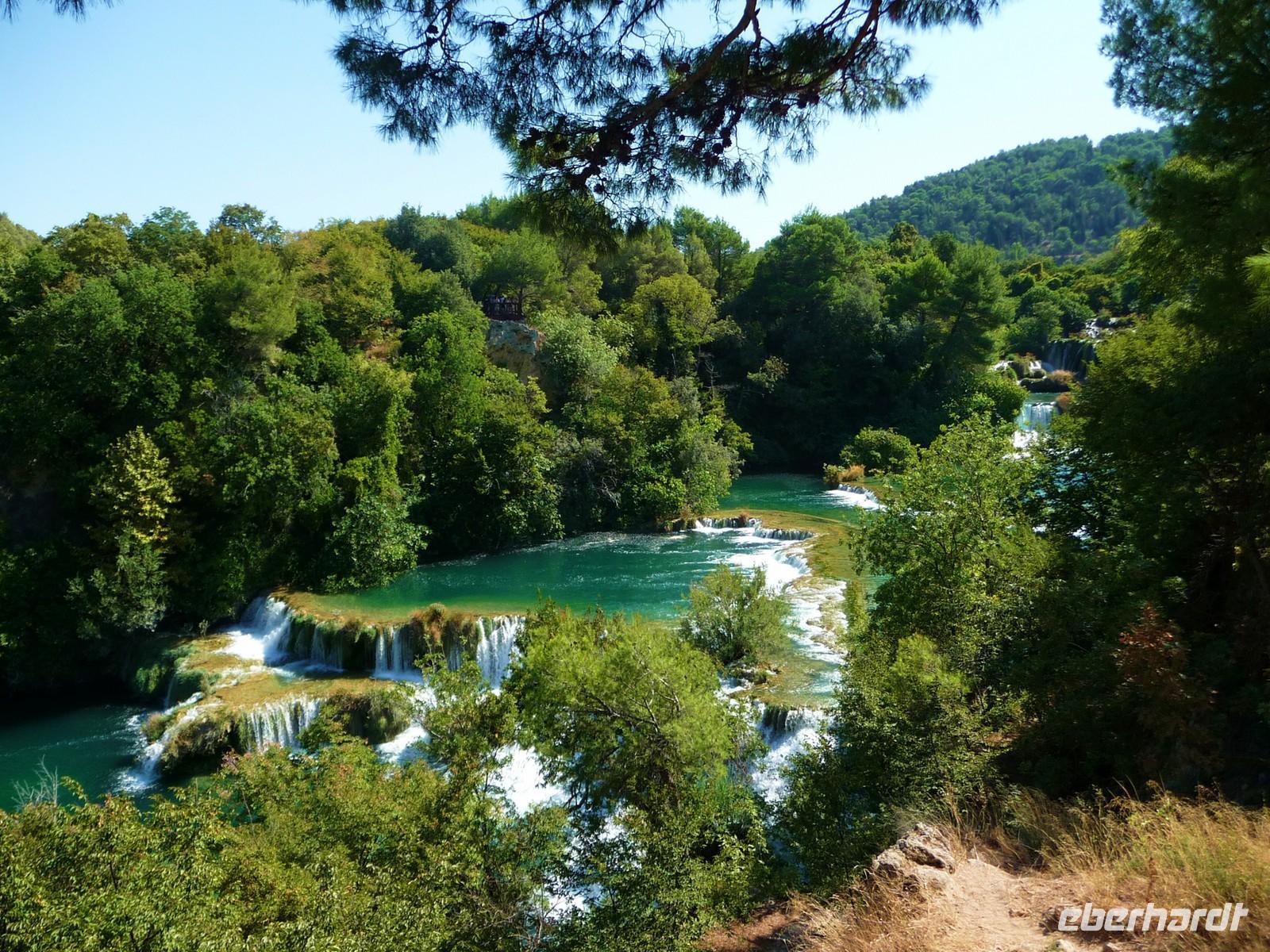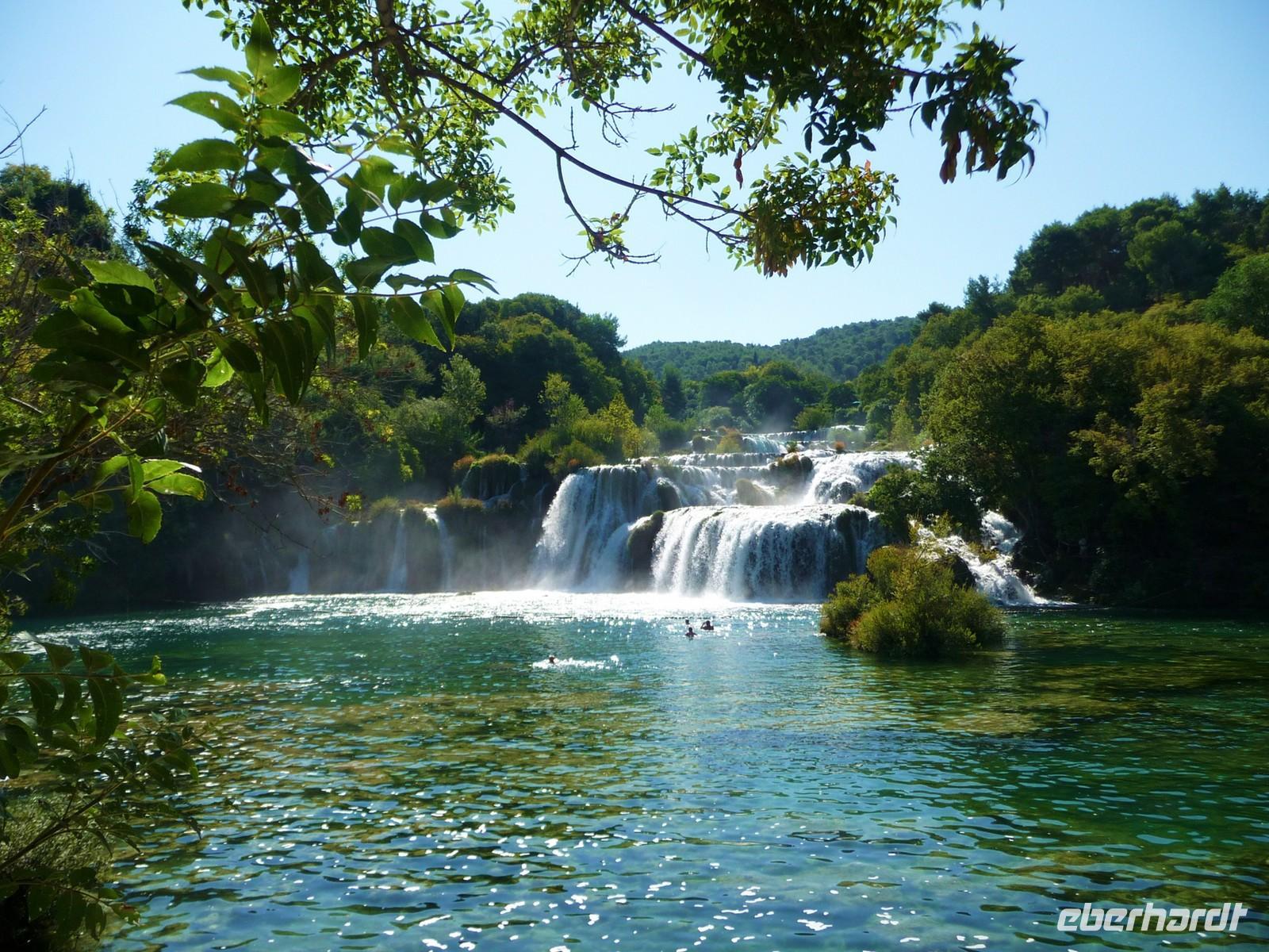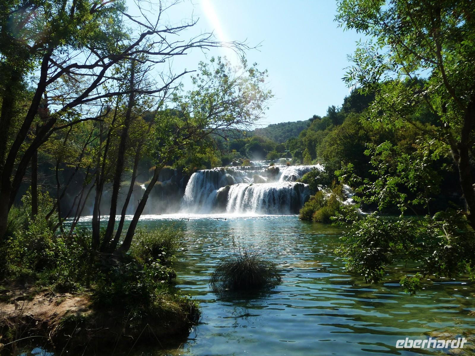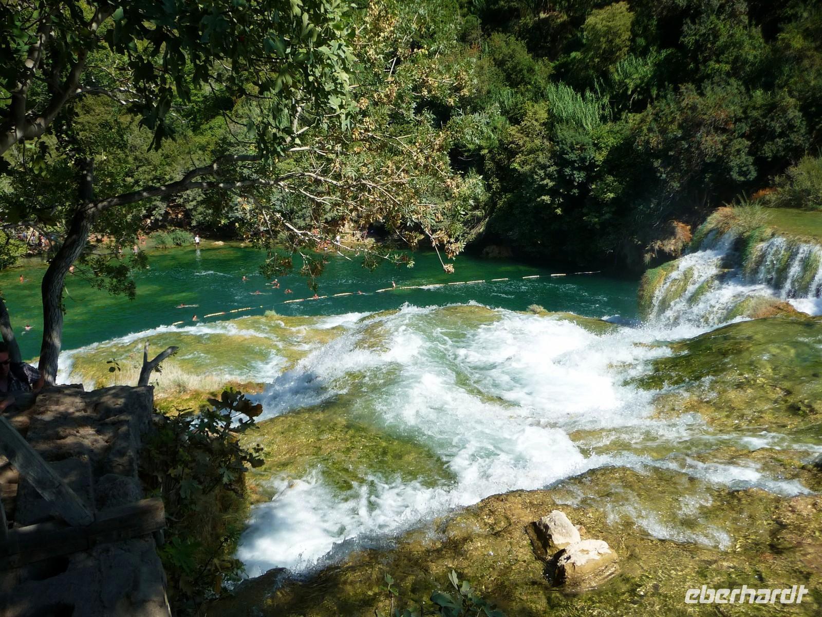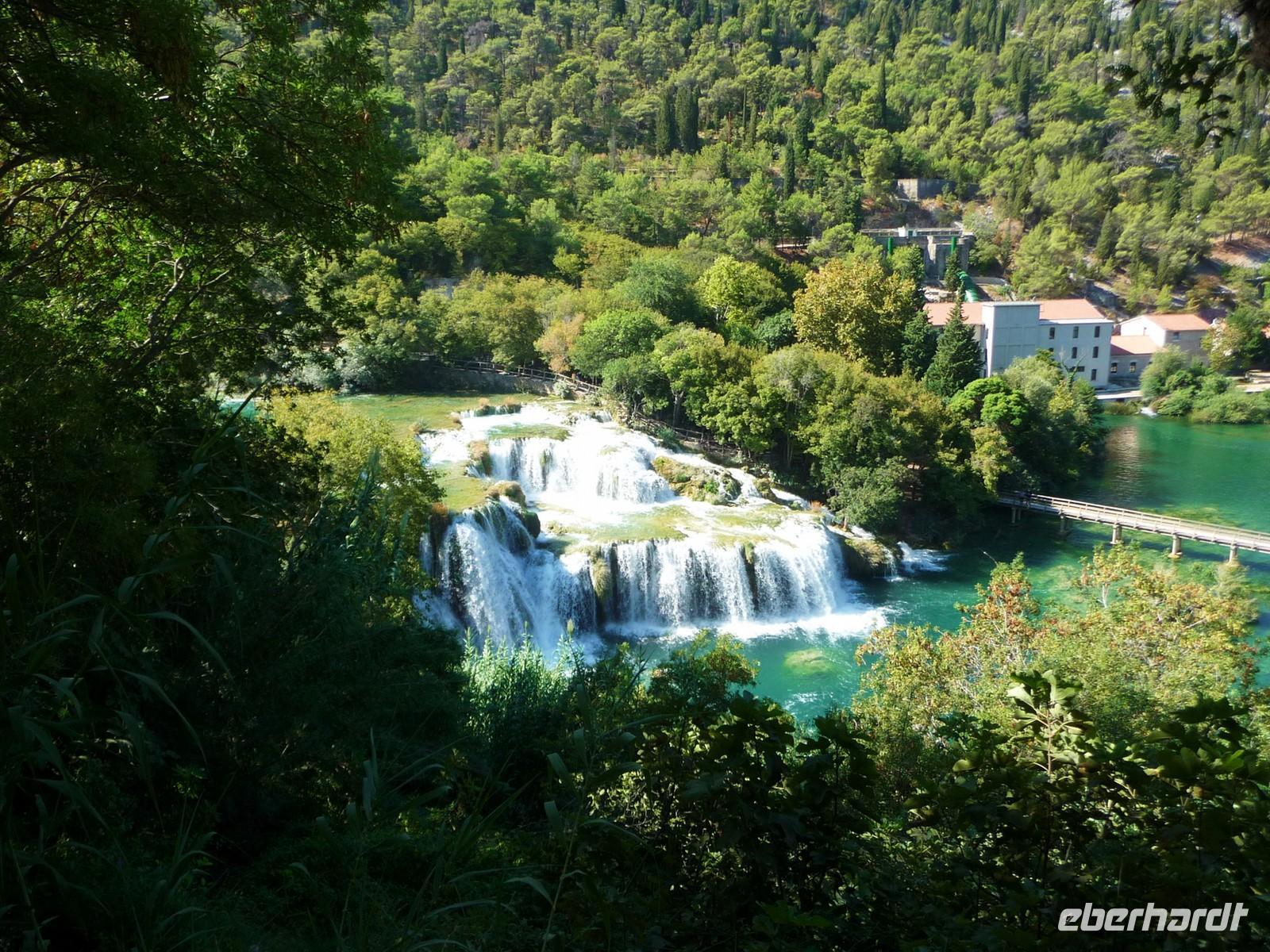 10 Uhr Ablegen und Fahrt die Krka hinauf bis zum Schiffsanleger, dahinter Kassenhäuschen - Eintrittskarten und Prospekte für alle Gäste;