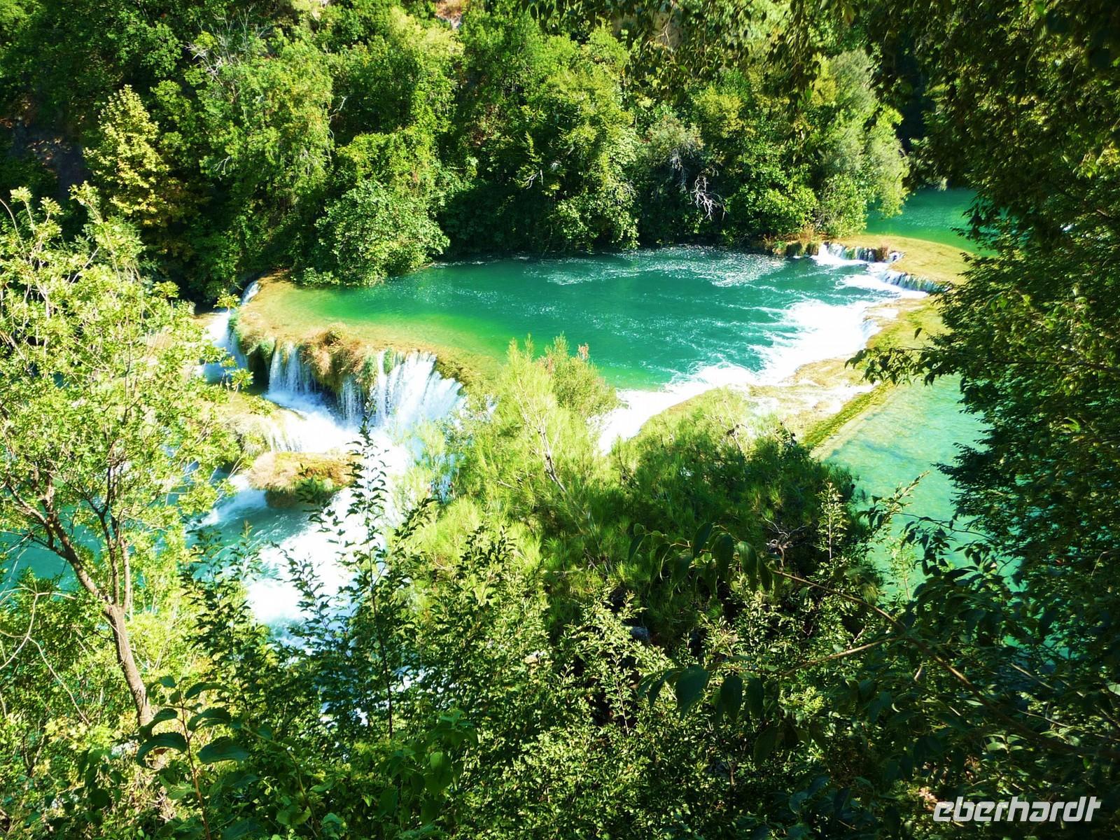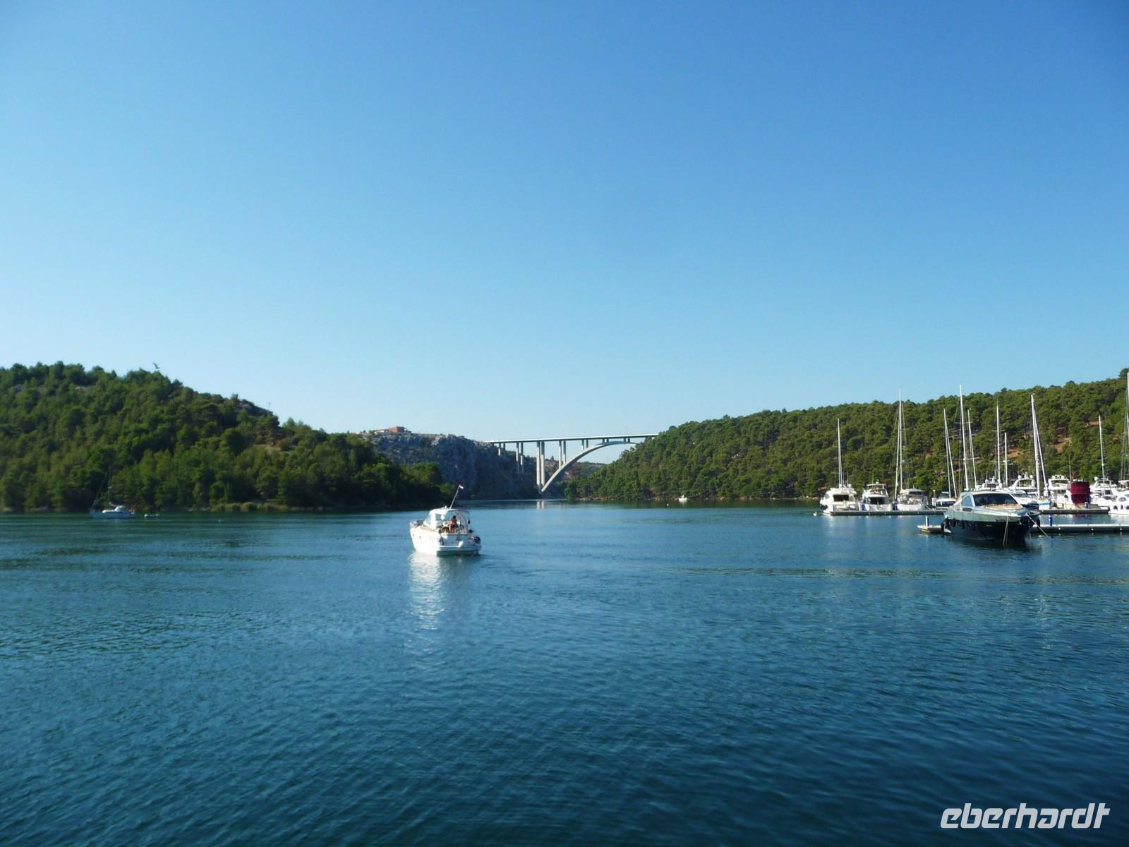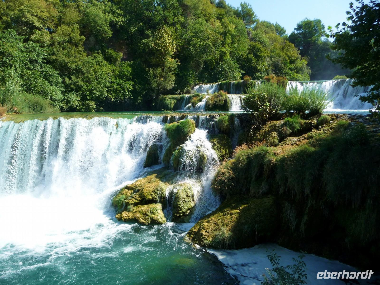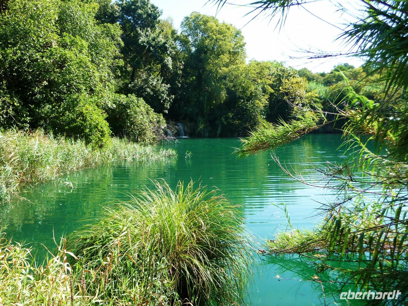 10 Uhr Ablegen und Fahrt die Krka hinauf bis zum Schiffsanleger, dahinter Kassenhäuschen - Eintrittskarten und Prospekte für alle Gäste;