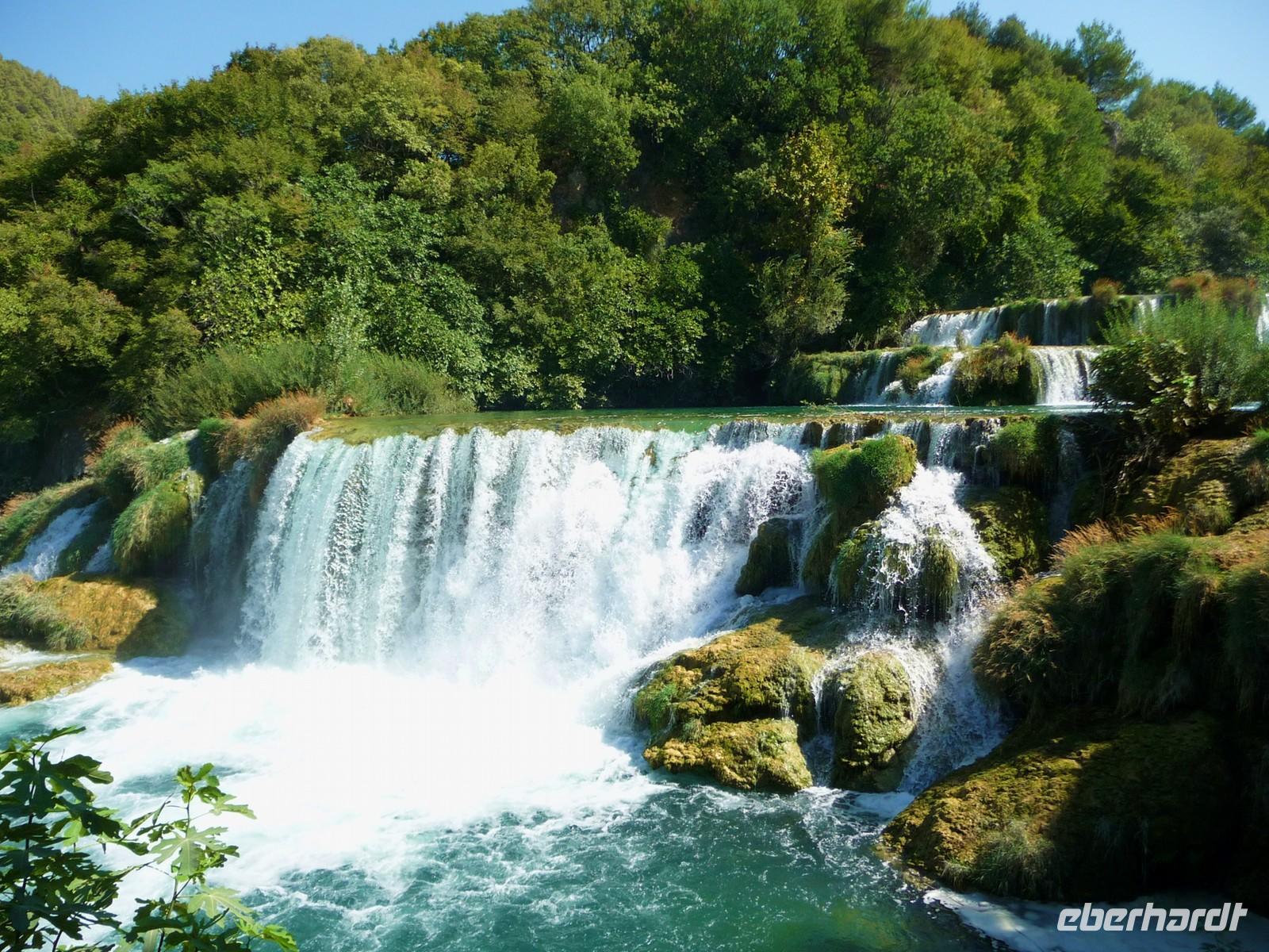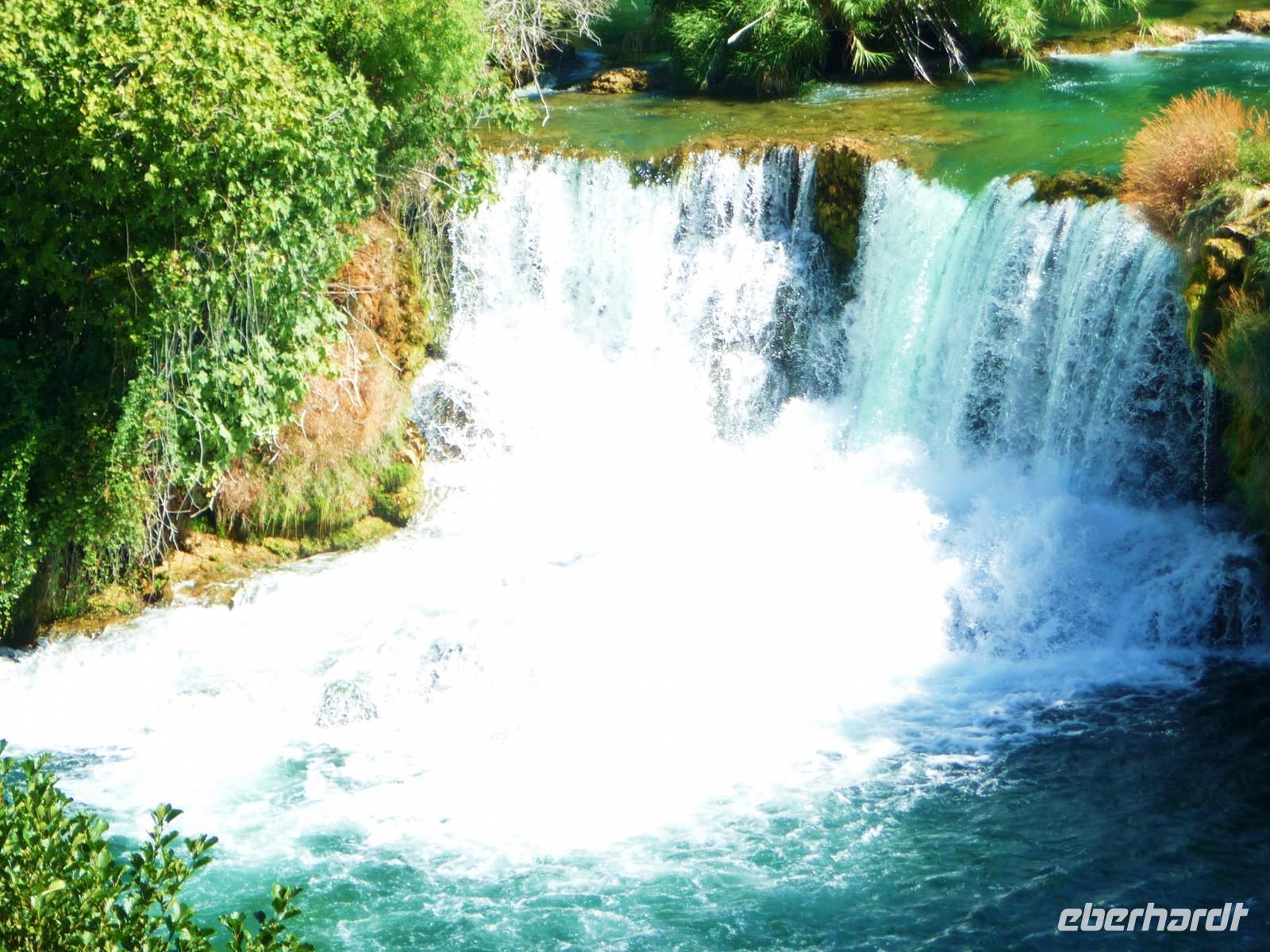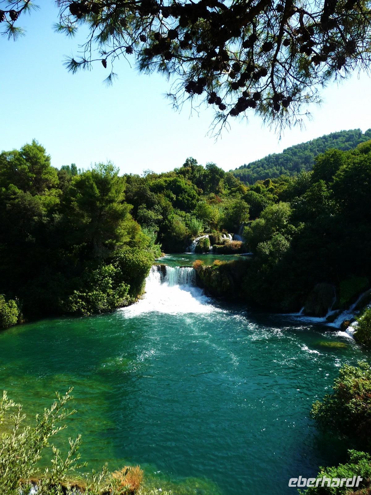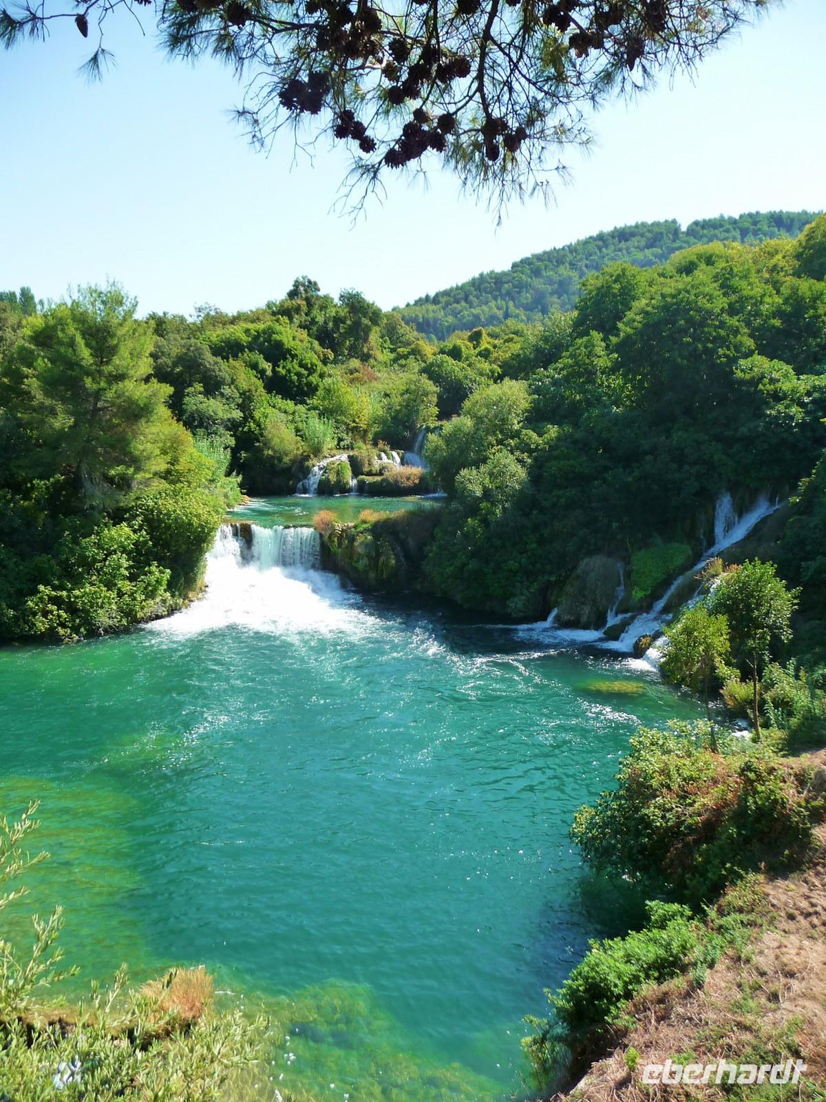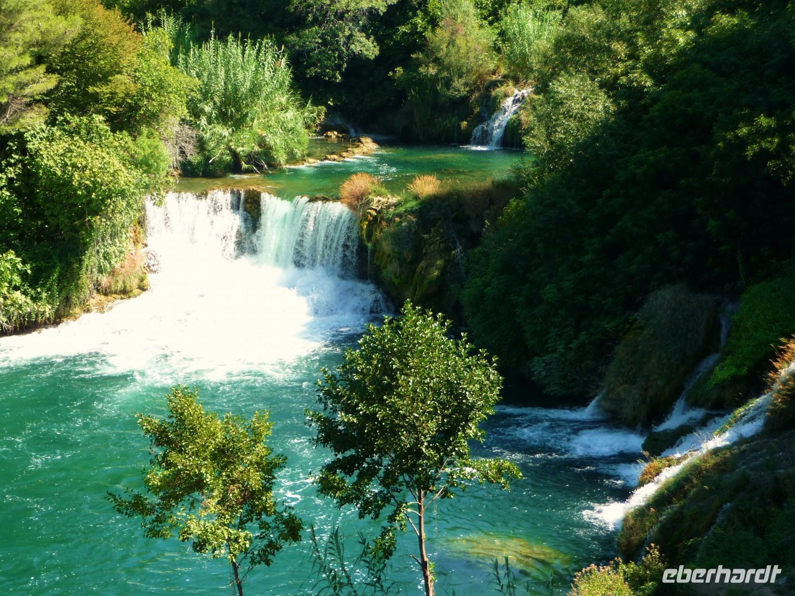 10 Uhr Ablegen und Fahrt die Krka hinauf bis zum Schiffsanleger, dahinter Kassenhäuschen - Eintrittskarten und Prospekte für alle Gäste;