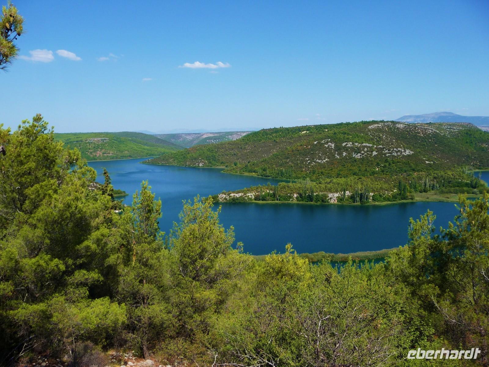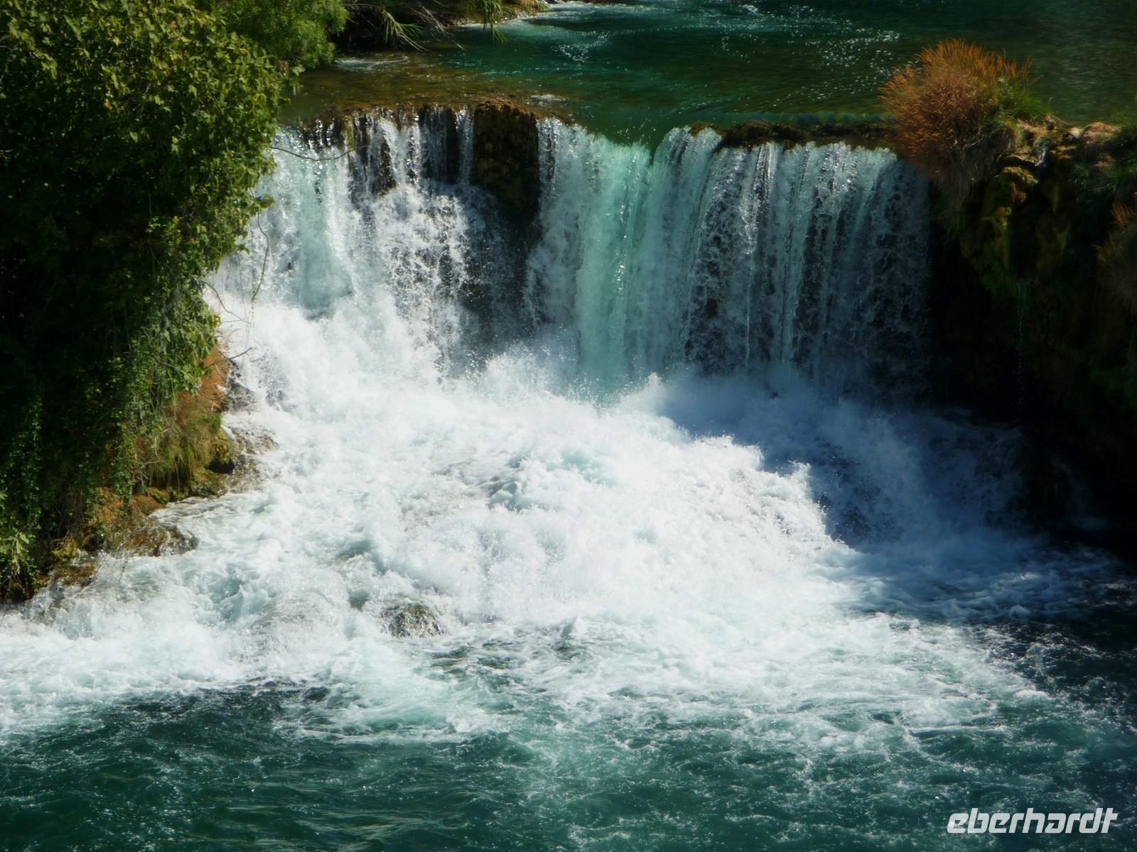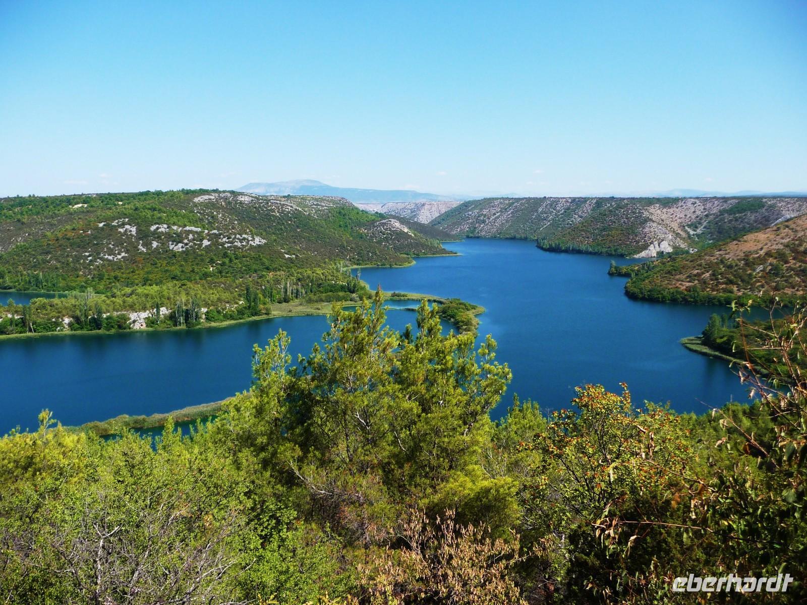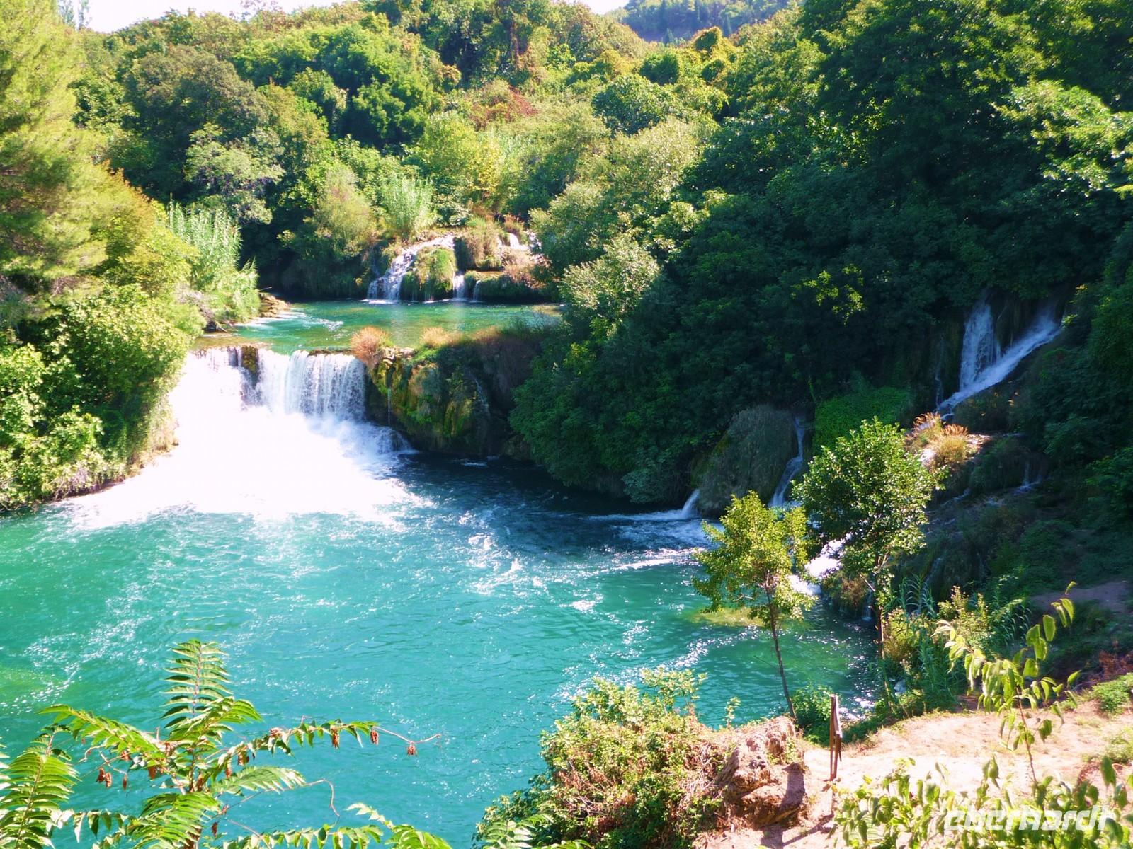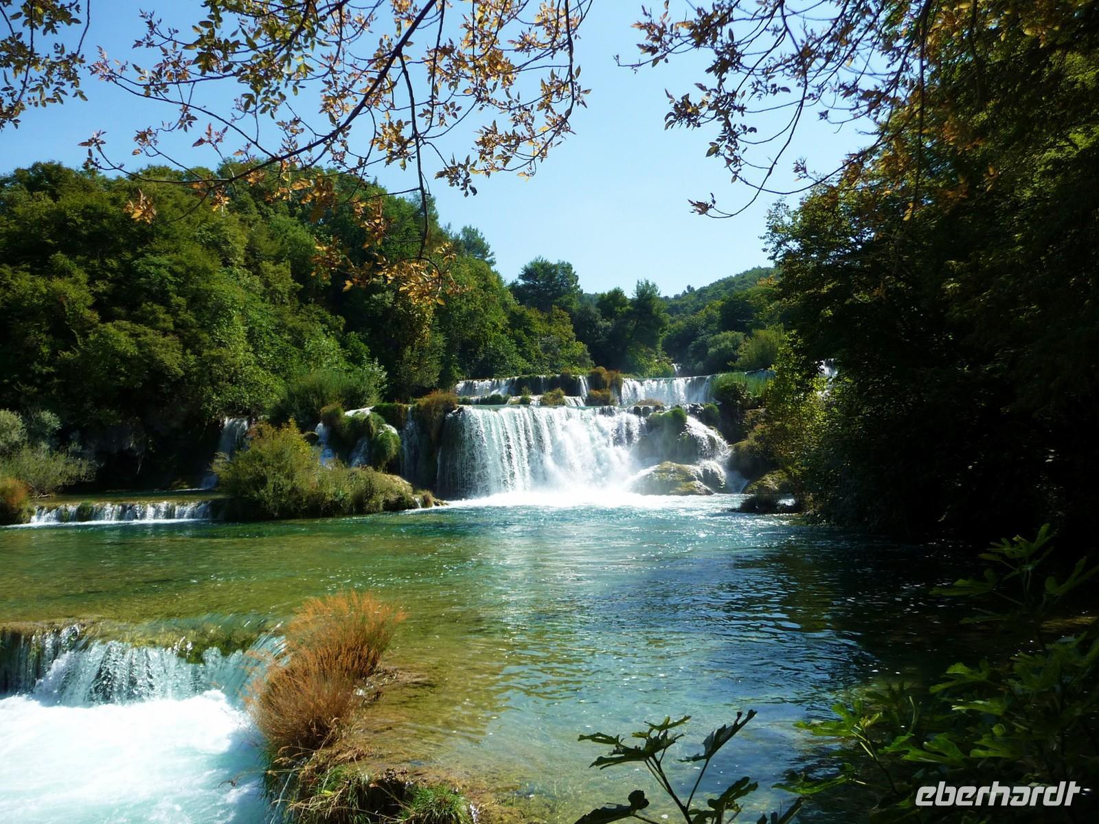 10 Uhr Ablegen und Fahrt die Krka hinauf bis zum Schiffsanleger, dahinter Kassenhäuschen - Eintrittskarten und Prospekte für alle Gäste;